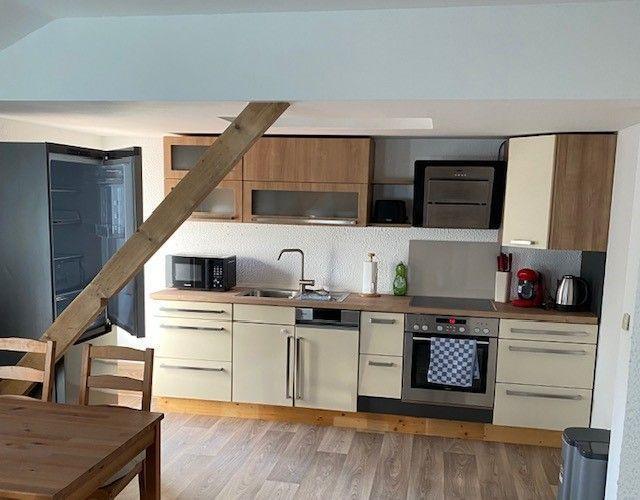 It has a modern kitchen with all modern conveniences such as a coffee machine, dishwasher, cooker with ceramic hob and microwave.