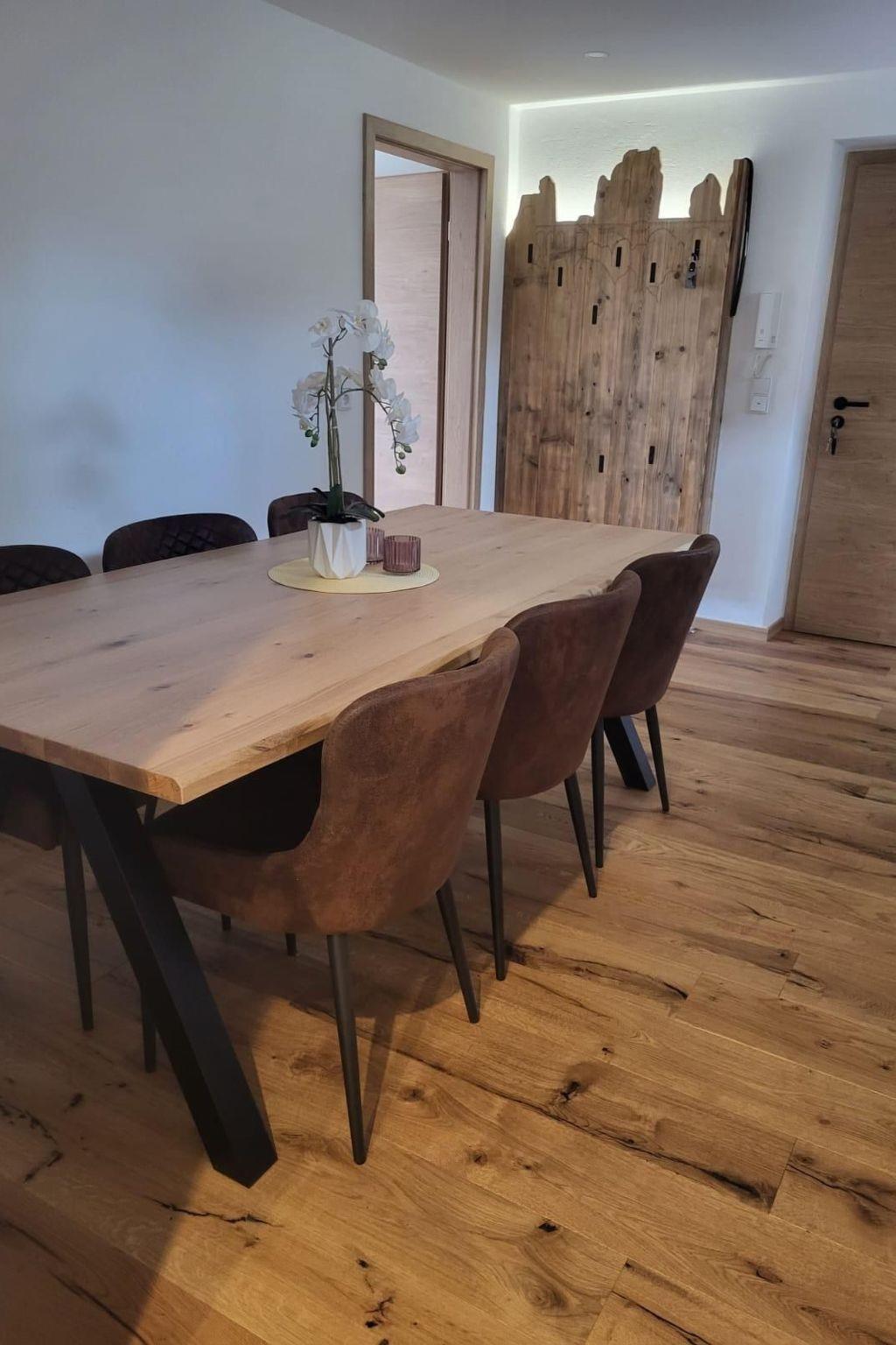 On 80 m² of living space, you will find everything you need to recover from excursions, hiking or cycling tours in a modern holiday flat, including a large shower and a comfortable sofa, TV, DVD player and hi-fi system, as well as a fridge, coffee machine, kettle, toaster, egg cooker, blender, induction hob and oven. The holiday flat on the ground floor offers space for 2 to 4 people and consists of a living room, dining room, bedroom, children's/bedroom, kitchen and bathroom with shower, WC and a guest WC. The flat was completed in September 2022.