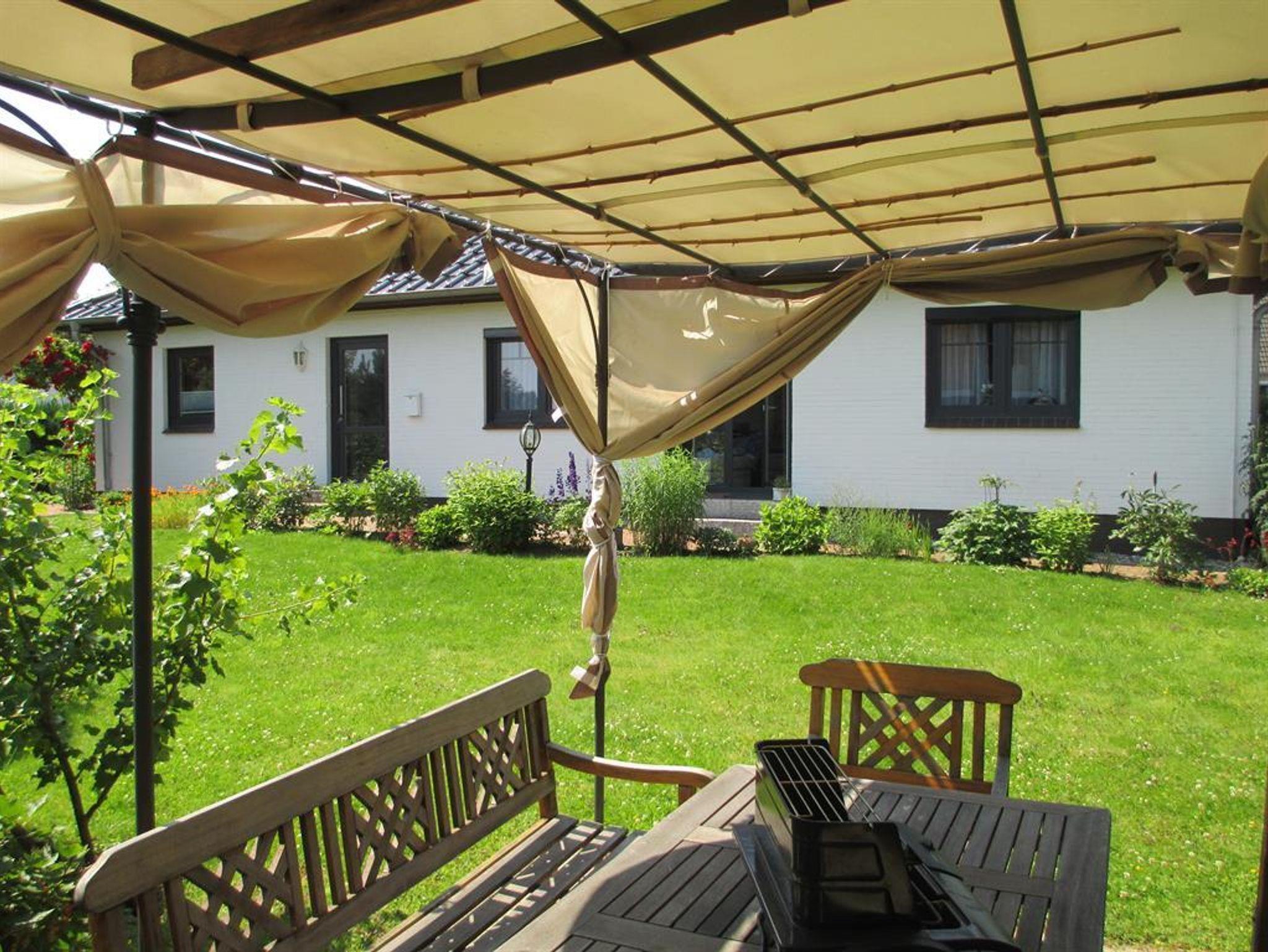 Ein abschließbarer Fahrradschuppen, ein Fahrzeugabstellplatz am Haus, Grill, Gartenmöbel, Liegestühle und Strandkorb sind vorhanden.