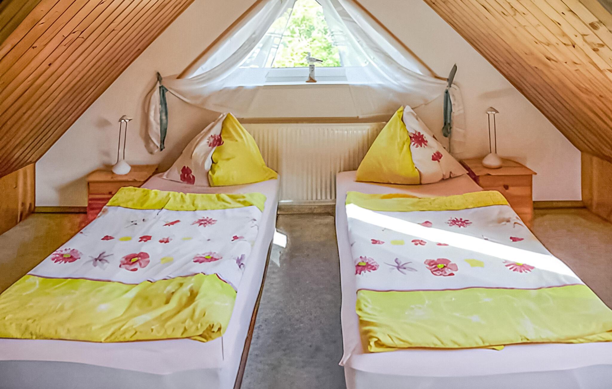 Den hyggelige ferielejlighed (to etager) er beliggende på øverste etage i en beboelsesejendom, adgang via en separat udvendig trappe. Udstyret med kombineret stue/soveplads (polstret opholdsområde, dobbeltseng, tv, radio), soveværelse via trappe på øverste etage (2 polstrede liggestole, ingen dør), tekøkken med 2-plade komfur og mikroovn, brus/toilet, Centralvarme. Der er sidde- og grillplads i haven, cykelkælder, TT-plade og parkeringsplads. Den samlede pris inkluderer: slutrengøring, sengetøj, vand og energiforbrug. Medbring venligst dine egne håndklæder. Husdyr: En lille hund op til en højde på 40 cm er tilladt i denne ejendom. Altenkirchen ligger på halvøen Wittow i den nordlige del af øen Rügen. Østersøferiestedet Breege/Juliusruh med dets mangfoldige fritidsaktiviteter og smukke strand ligger omkring 2 km væk, og den velkendte Kap Arkona er omkring 8 km væk. Der er restauranter, butikker og cykeludlejning i byen.