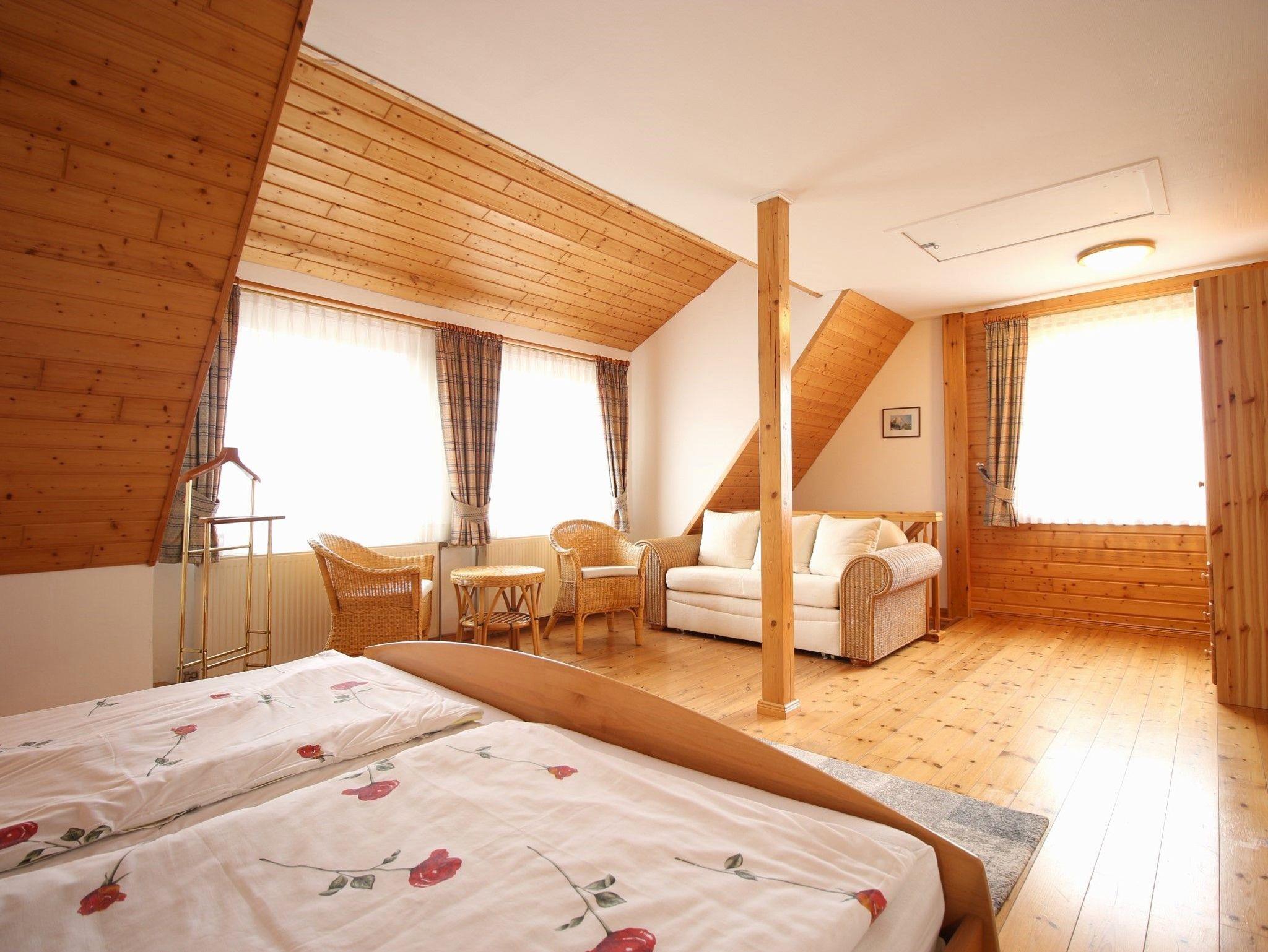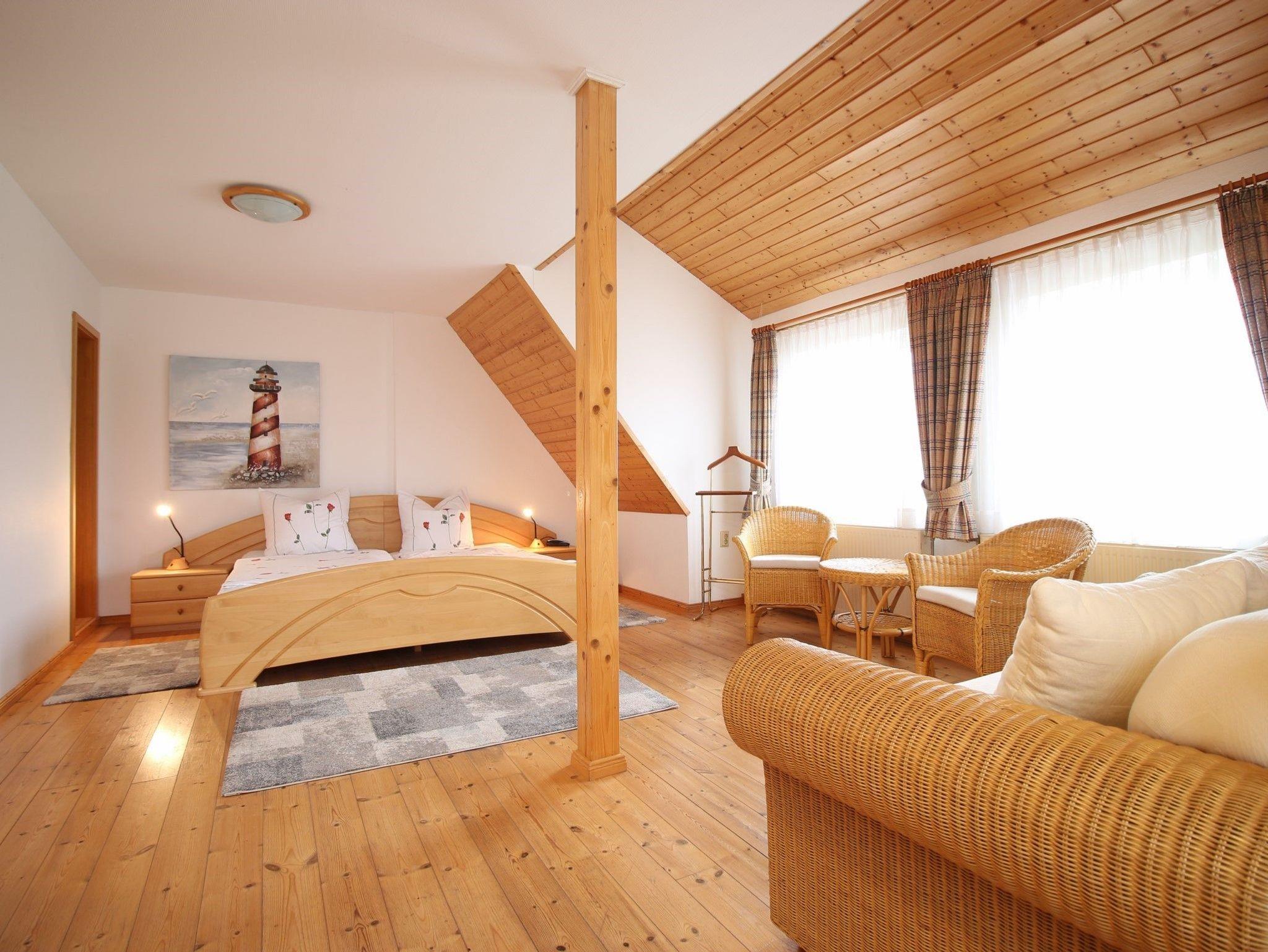 • großer Schlafraum mit Doppelbett (1,80x2,00 m) und Schlafcouch (für max. 2 Kinder bis 12 Jahre)