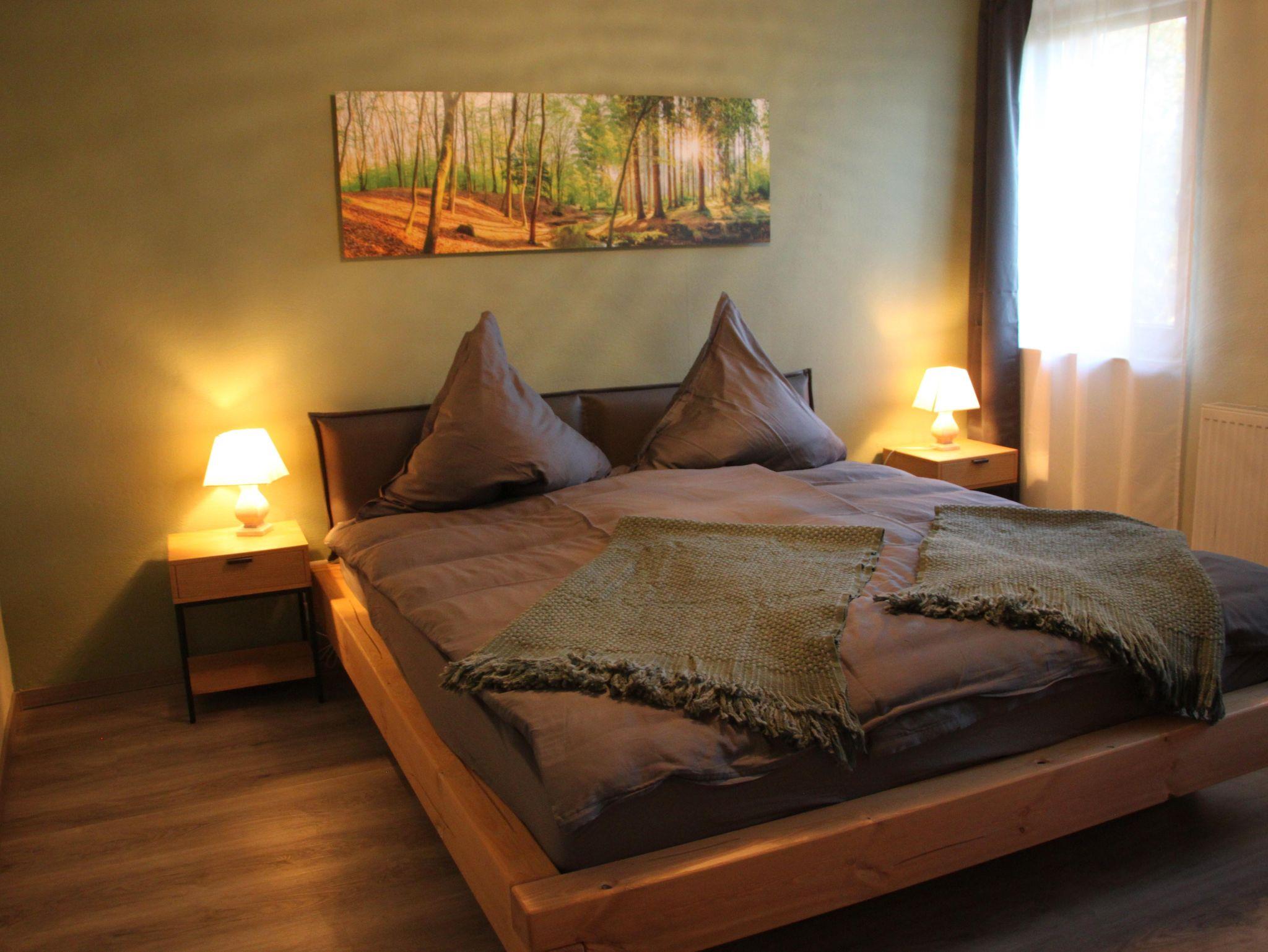 Unsere Ferienwohnung „Milchküche“ verfügt über 84 qm stufenlose Wohnfläche, ist im Erdgeschoss gelegen und über eine eigene Haustüre von der Hofseite aus erreichbar. Die 84 qm Wohnfläche verteilen sich auf Küche, Wohnzimmer, zwei Schlafzimmer mit jeweils einem Doppelbett, einem Bad sowie Flur und Abstellraum. Von der Küche aus gelangt man auf einen Balkon, von dem aus Sie über eine Treppe mit wenigen Stufen in den Gartenbereich des Lindenhofes gelangen.