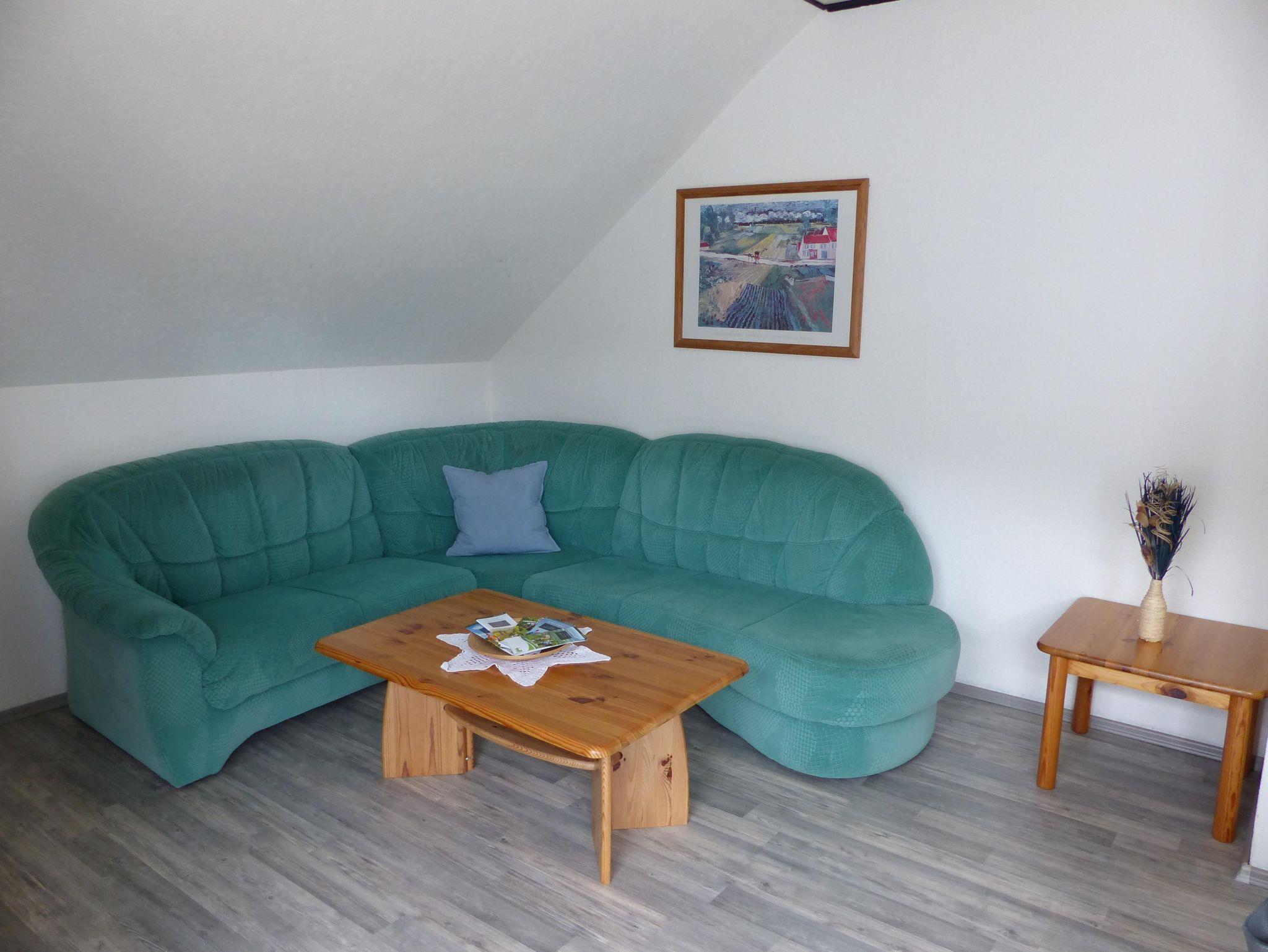 Die komfortable FeWo bietet auf 65 qm Platz für 2-4 Personen, gr. Wohnzimmer mit Essplatz und Kochküche, 2 Schlafzimmer, Diele, Du/Wc, Balkon und Kabel TV. Große Liegewiese mit Bachlauf.