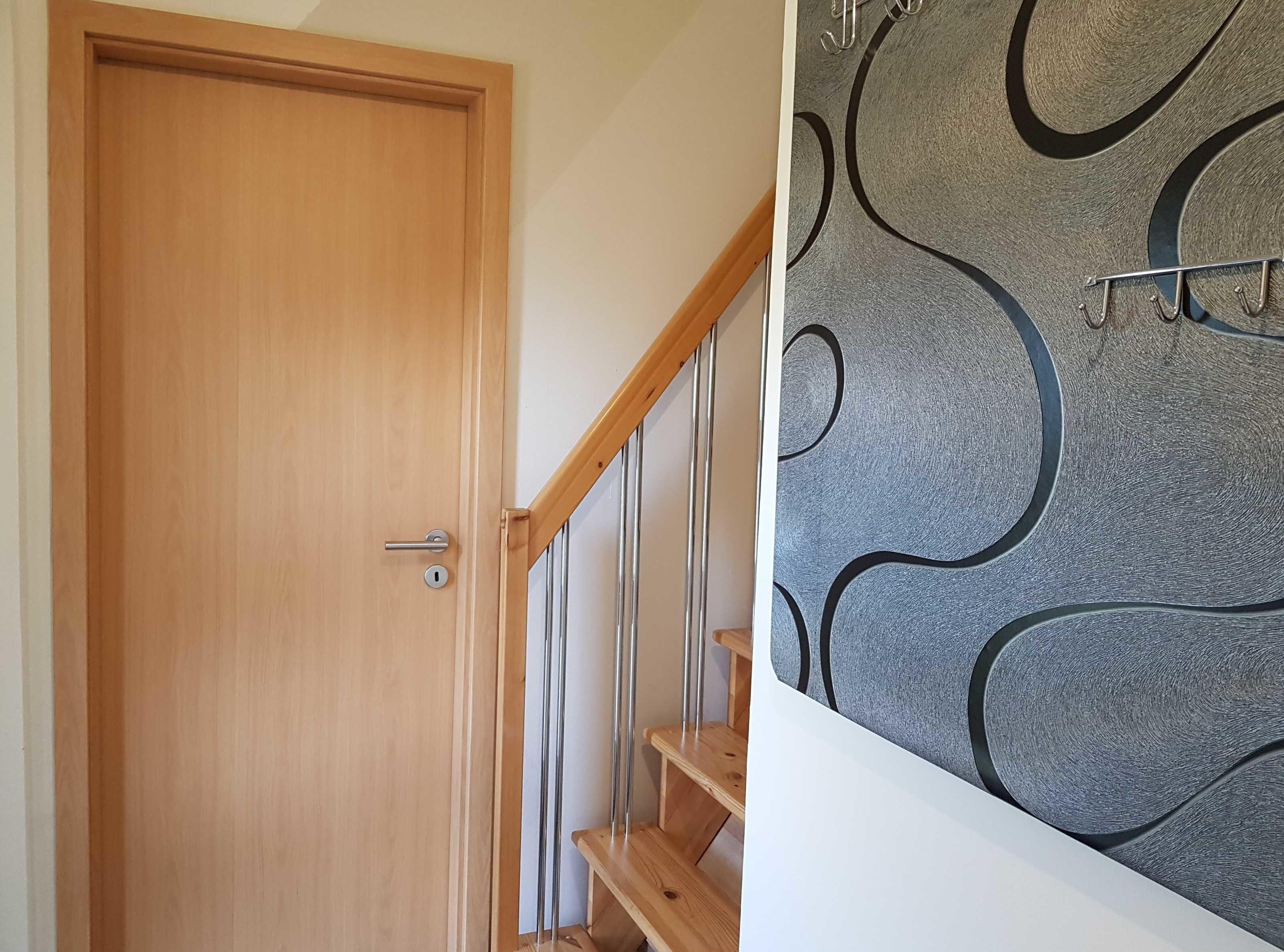 Direkt neben einem ostseetypischen, reetgedeckten Haus befindet sich Ihre Unterkunft. Über einen separaten Eingang gelangen Sie in den Vorflur mit Garderobe und Treppe ins DG.