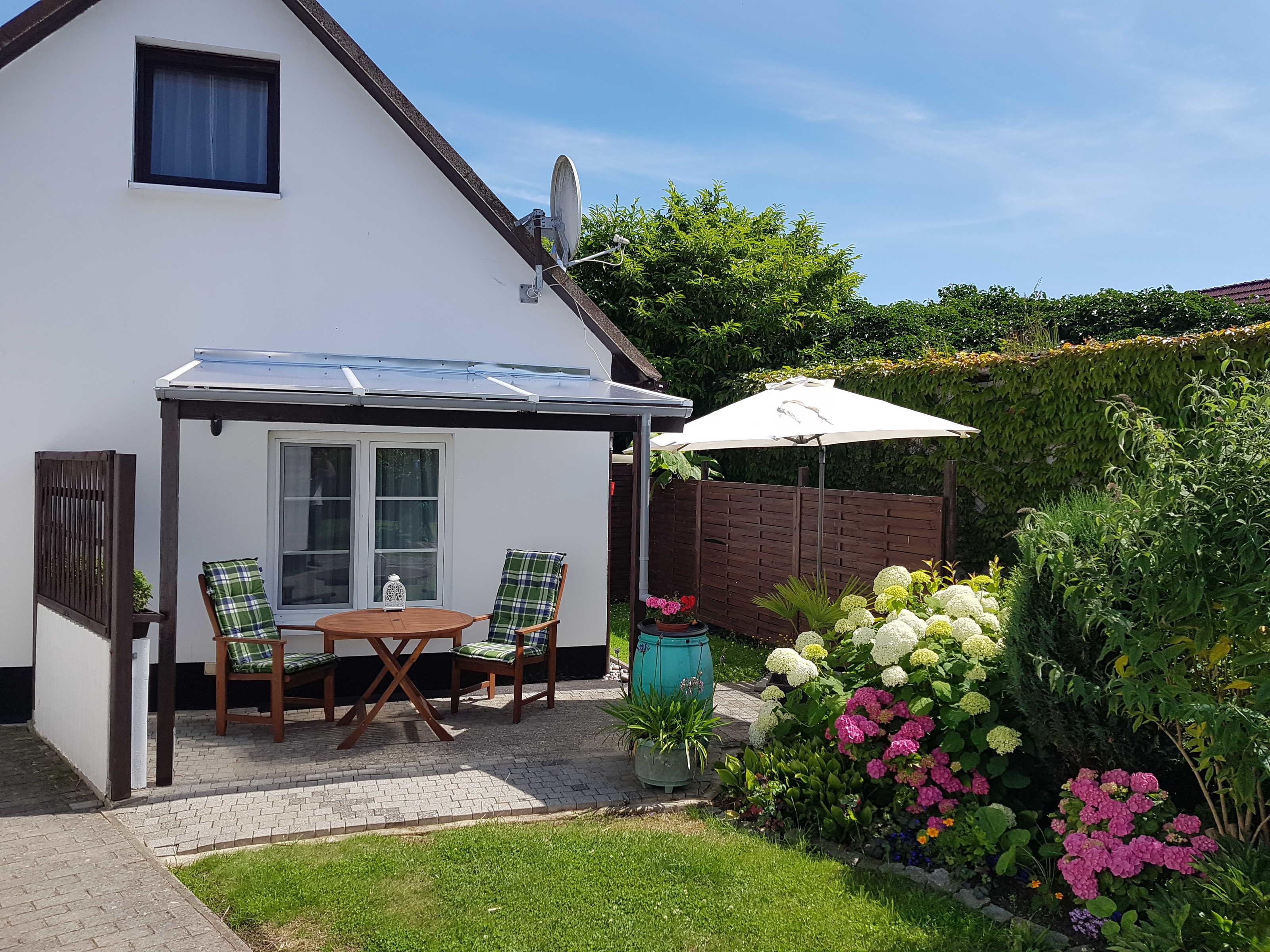 Im Außenbereich Ihres Ferienhauses lädt die nach Westen ausgerichtete TERRASSE zu gemütlichen Stunden in der Sonne oder einem abendlichen Grillen ein. Natürlich sind Terrassenmöbel, Sitzauflagen, Sonnenschirm und ein Grill vorhanden. Auch vor dem Haus gibt es eine kleine Terrasse, ideal zum frühstücken.
