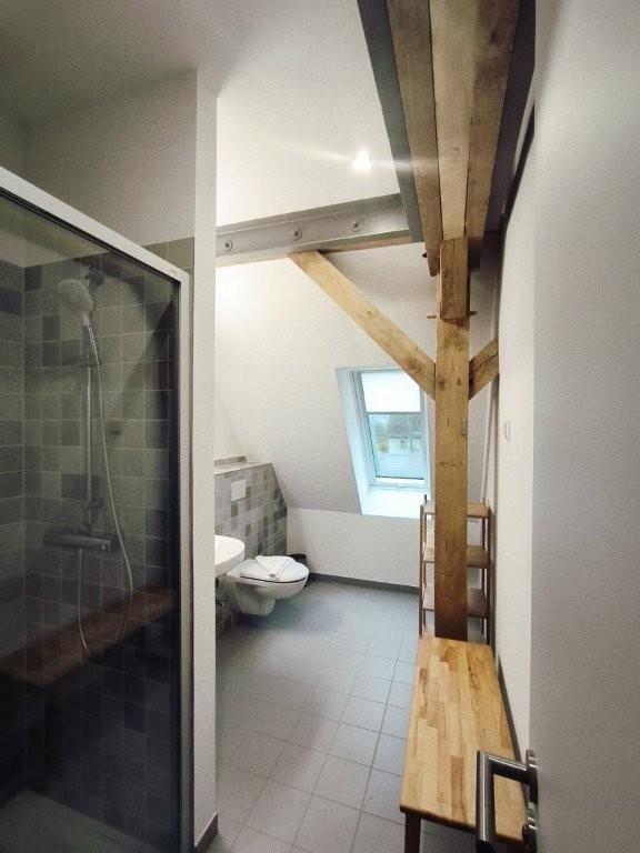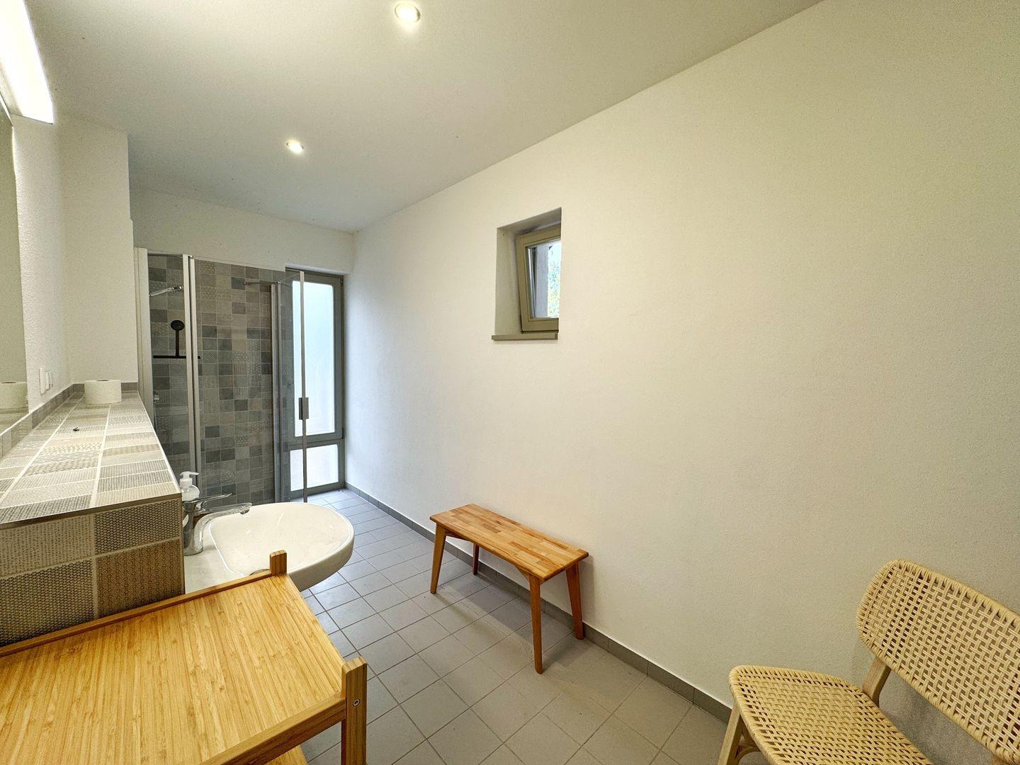 Das großzügige Badezimmer bietet eine bodentiefe Glasdusche, Waschbecken und WC. Außerdem gibt es noch ein zweites Badezimmer mit Dusche und WC.