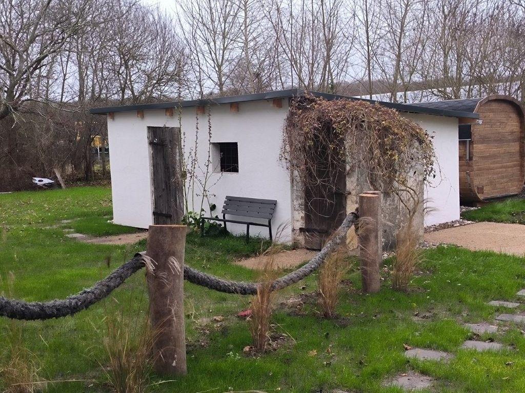 Im Außenbereich gibt es eine Faßsauna mit Entspannungsraum zur gemeinschaftlichen Nutzung. Es ist ein abschliesbarer Fahrradschuppen mit Stromanschluss vorhanden.