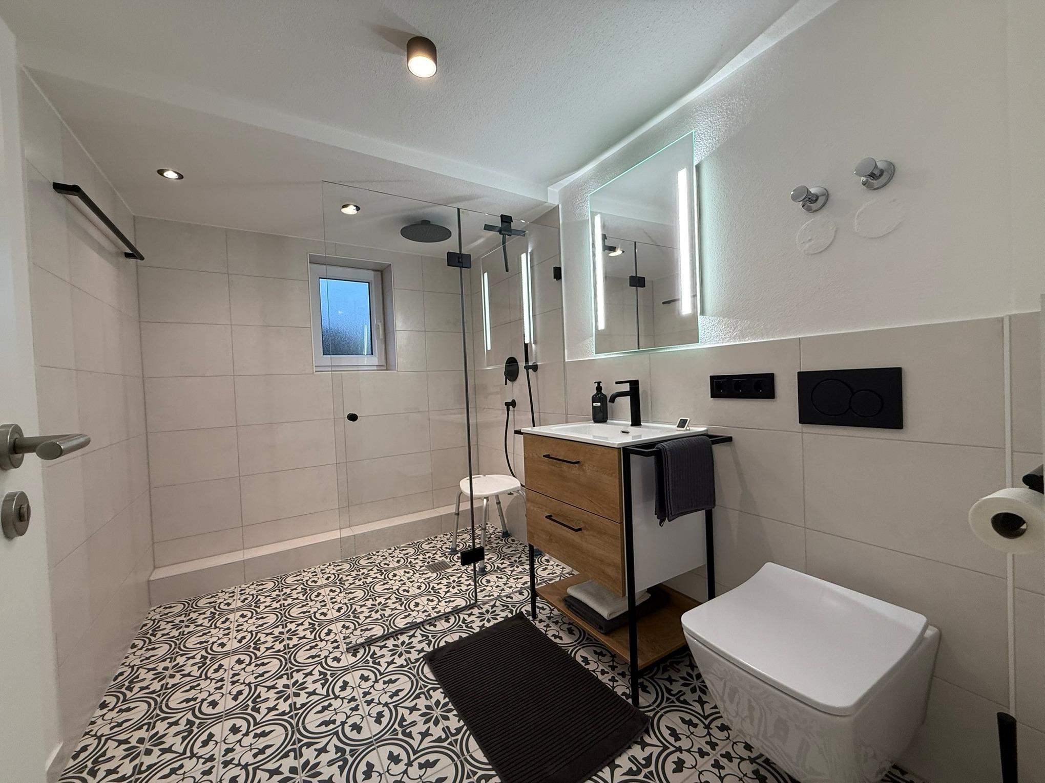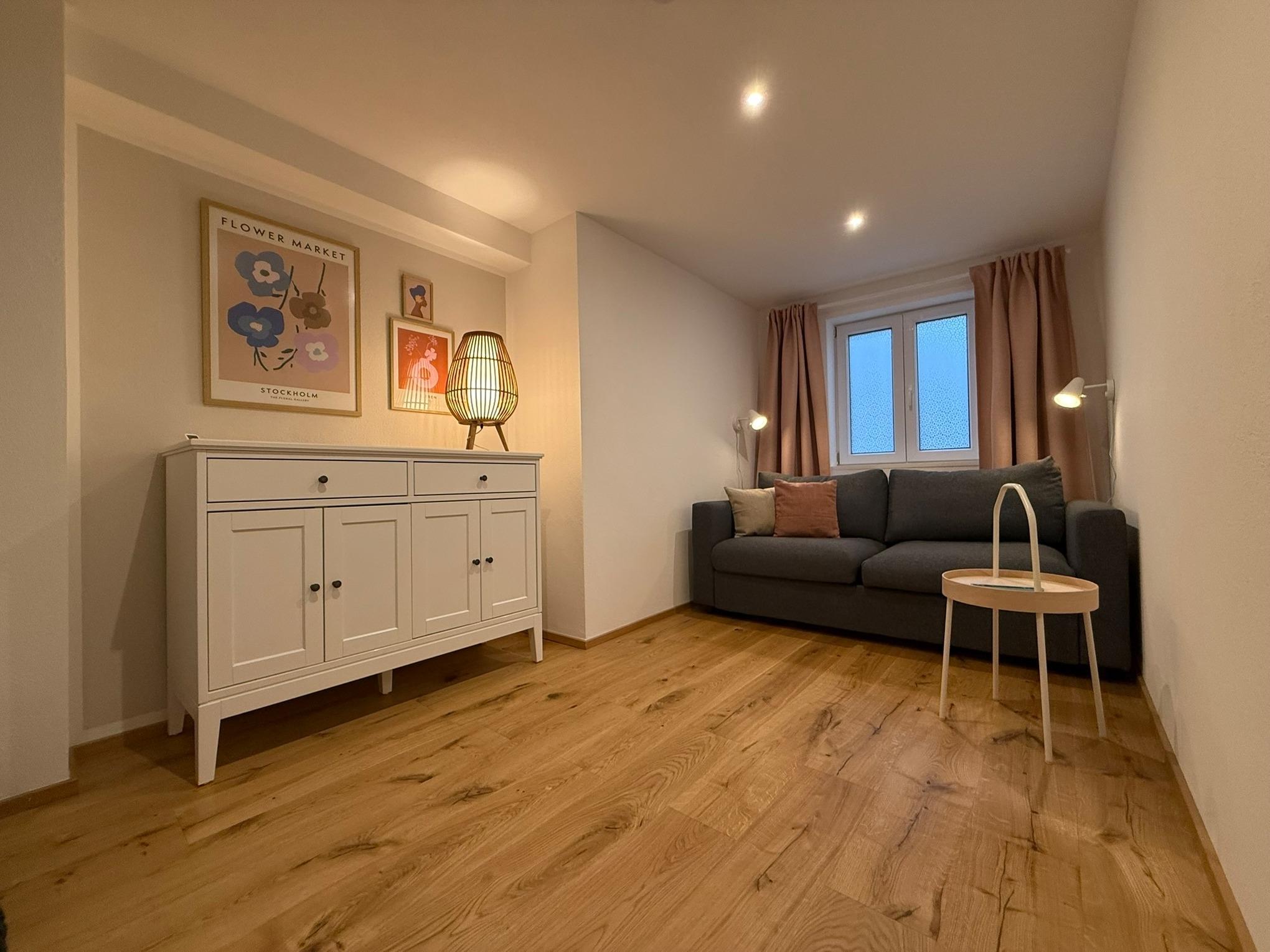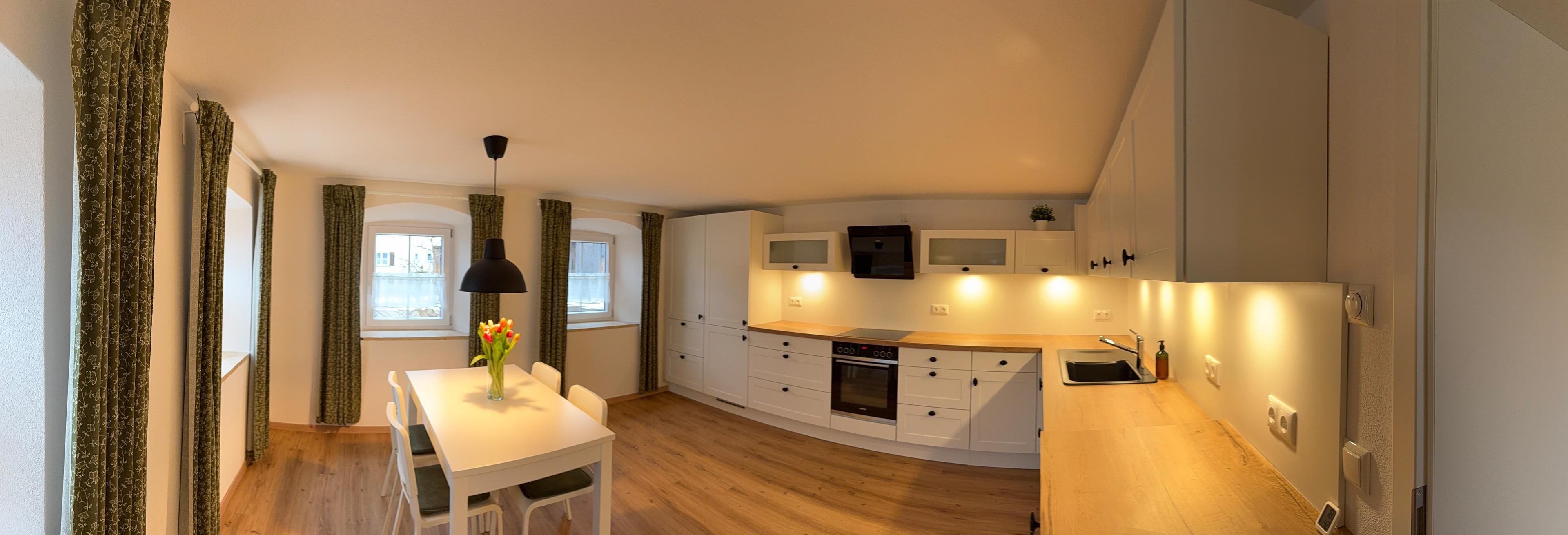 Unsere von 2023 bis Ende 2024 kernsanierte, moderne, barrierereduzierte Ferienwohnung mit Fußbodenheizung, separaten Eingang und PKW-Stellplatz befindet sich in der Einliegerwohnung unseres Altbaus im Erdgeschoss.