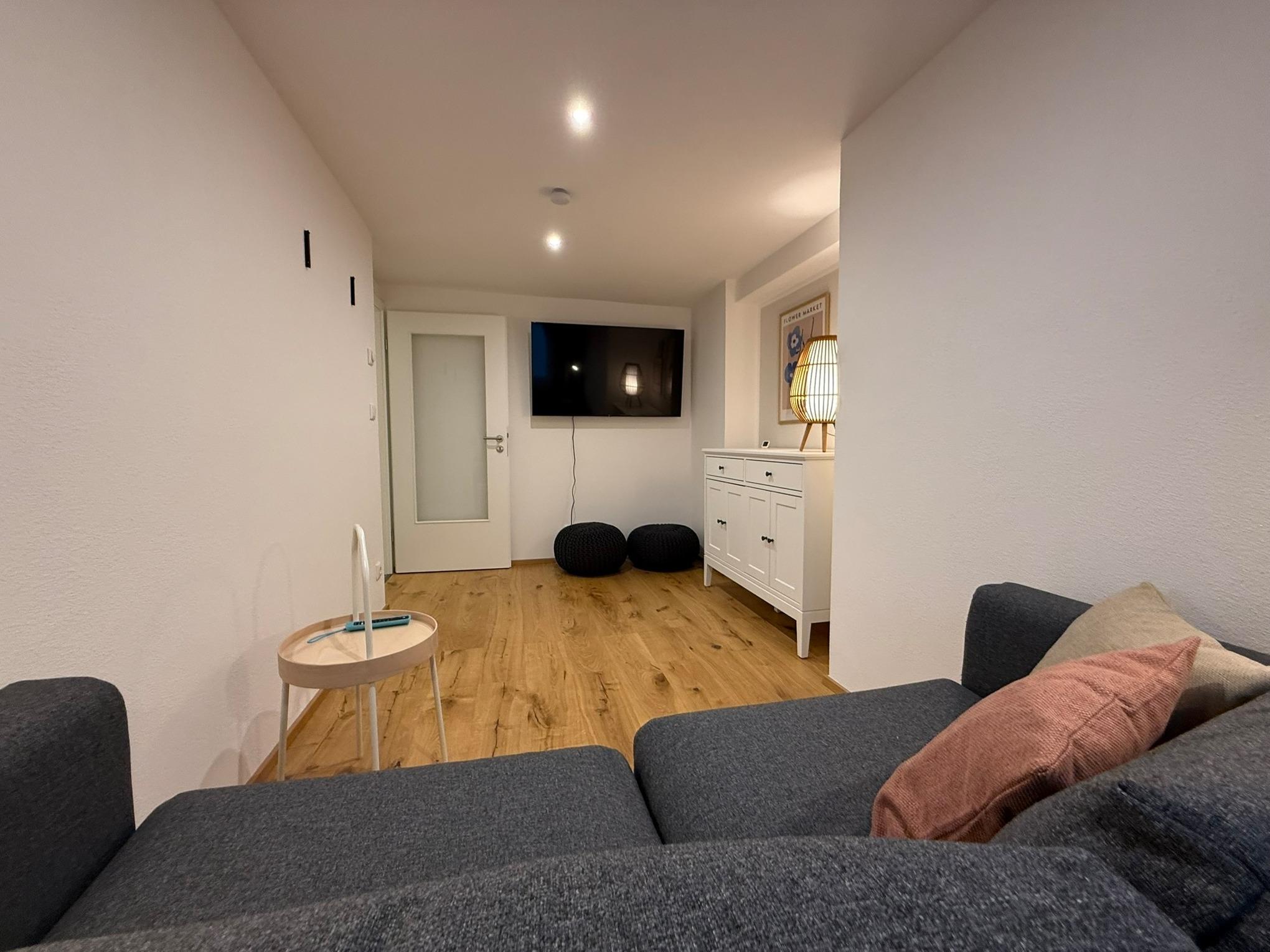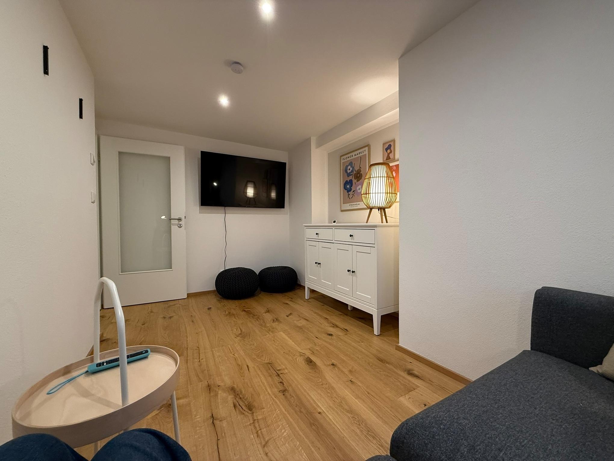 Zwei zusätzliche Schlafmöglichkeiten bietet das Schlafsofa (140x200cm) im Wohnzimmer inklusive einem weiteren 55 Zoll TV.