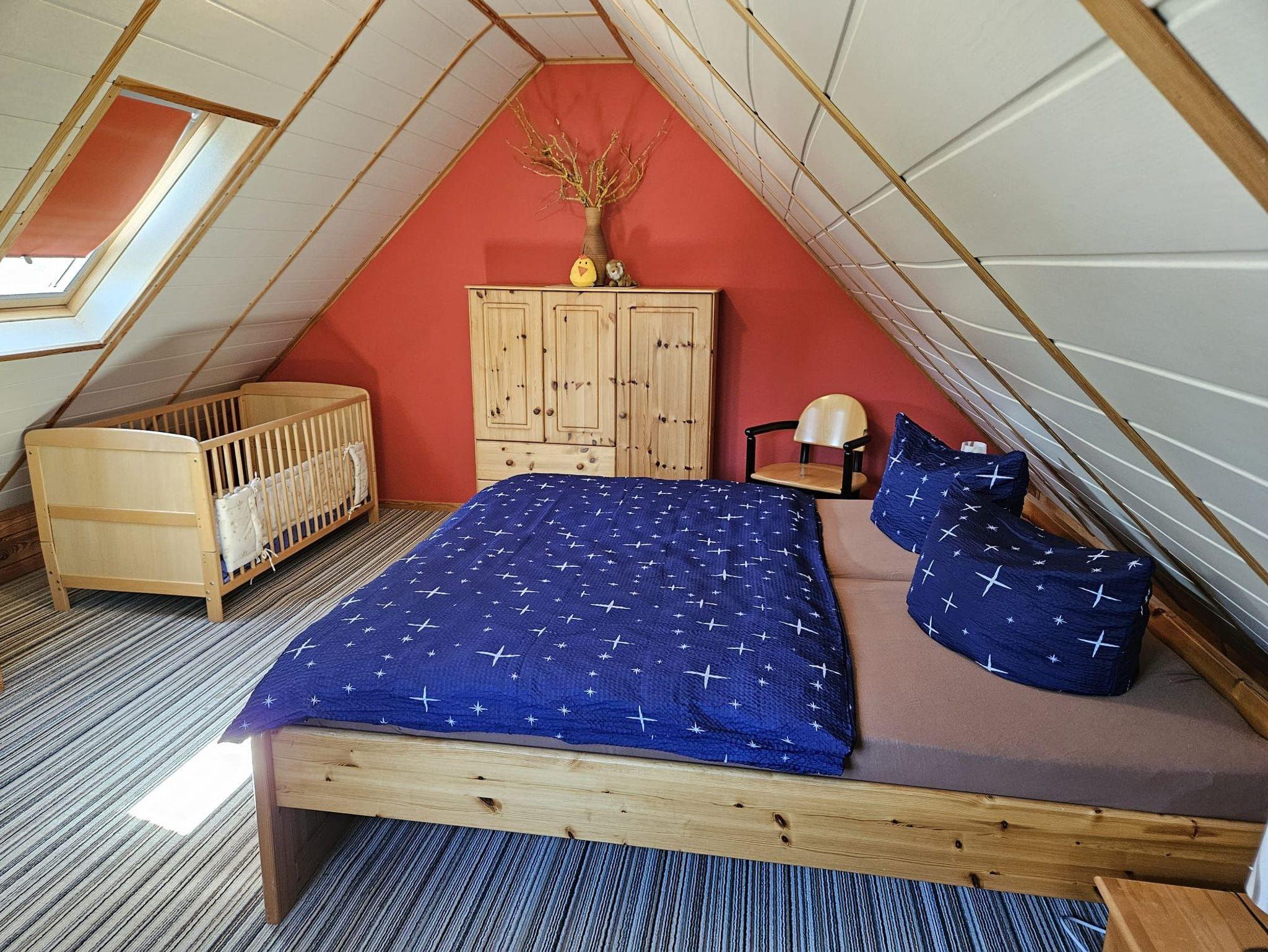 Die Ferienwohnung hat eine normale, solide Ausstattung, ist sehr ruhig direkt am Wald gelegen. In der Wohnung liegt Auslegeware, es ist ein Nichraucherhaus. Auf dem Hof ist eine Terrasse. Zur Info: In die obere Etage führt eine steile Treppe
