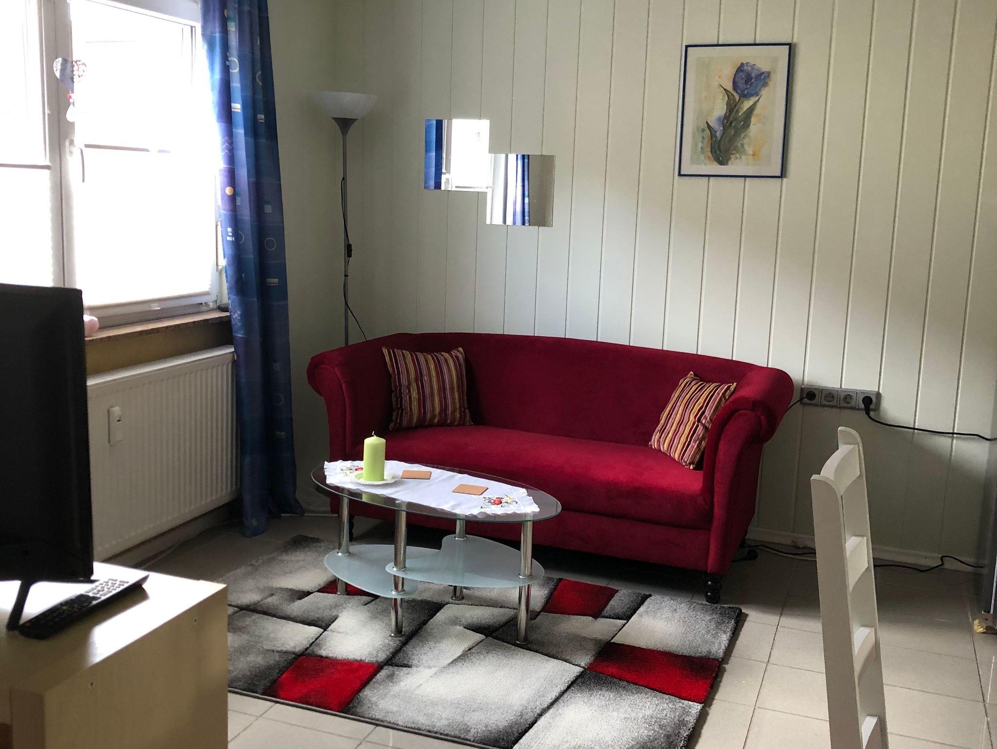 Der gemütliche Wohnraum mit Couch und TV lädt zu gemütlichen Fernseh- oder Spieleabenden ein.