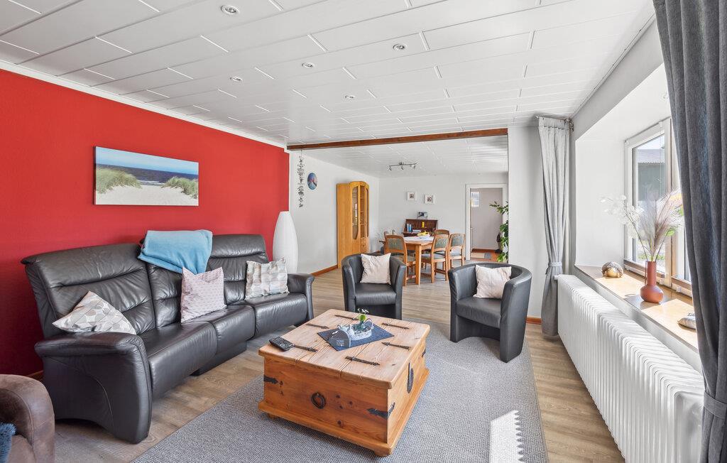 Dette hyggelige feriehus byder velkommen nær den danske grænse. I kan tilbringe en afslappende ferie her med jeres store familie, og I vil finde gode faciliteter til at få jer til at føle jer hjemme. Der er også tænkt på jeres børn, de kan glæde sig til spil, bordfodbold og meget mere.