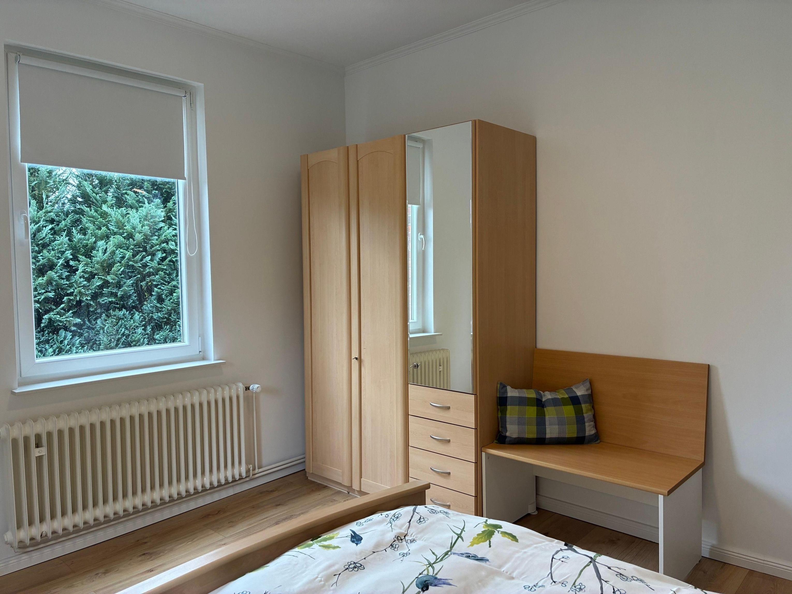 Geräumiges Schlafzimmer mit einem Bett 1,40m x 2,00m (für 1-2 Personen), Kleiderschrank