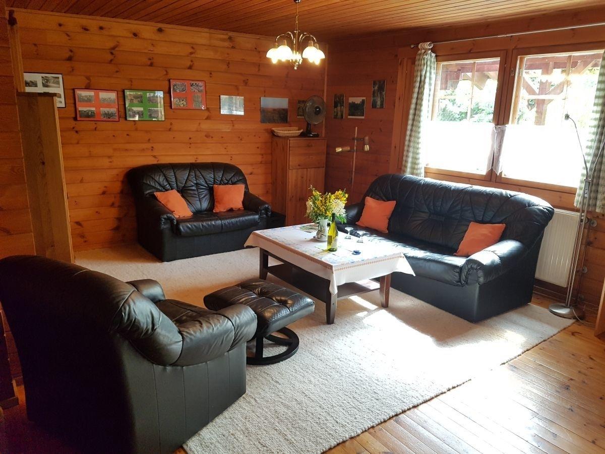 Sie befindet sich im 1/2 Erdgeschoss unseres geräumigen finnischen Blockbohlenhauses Baujahr 1995.