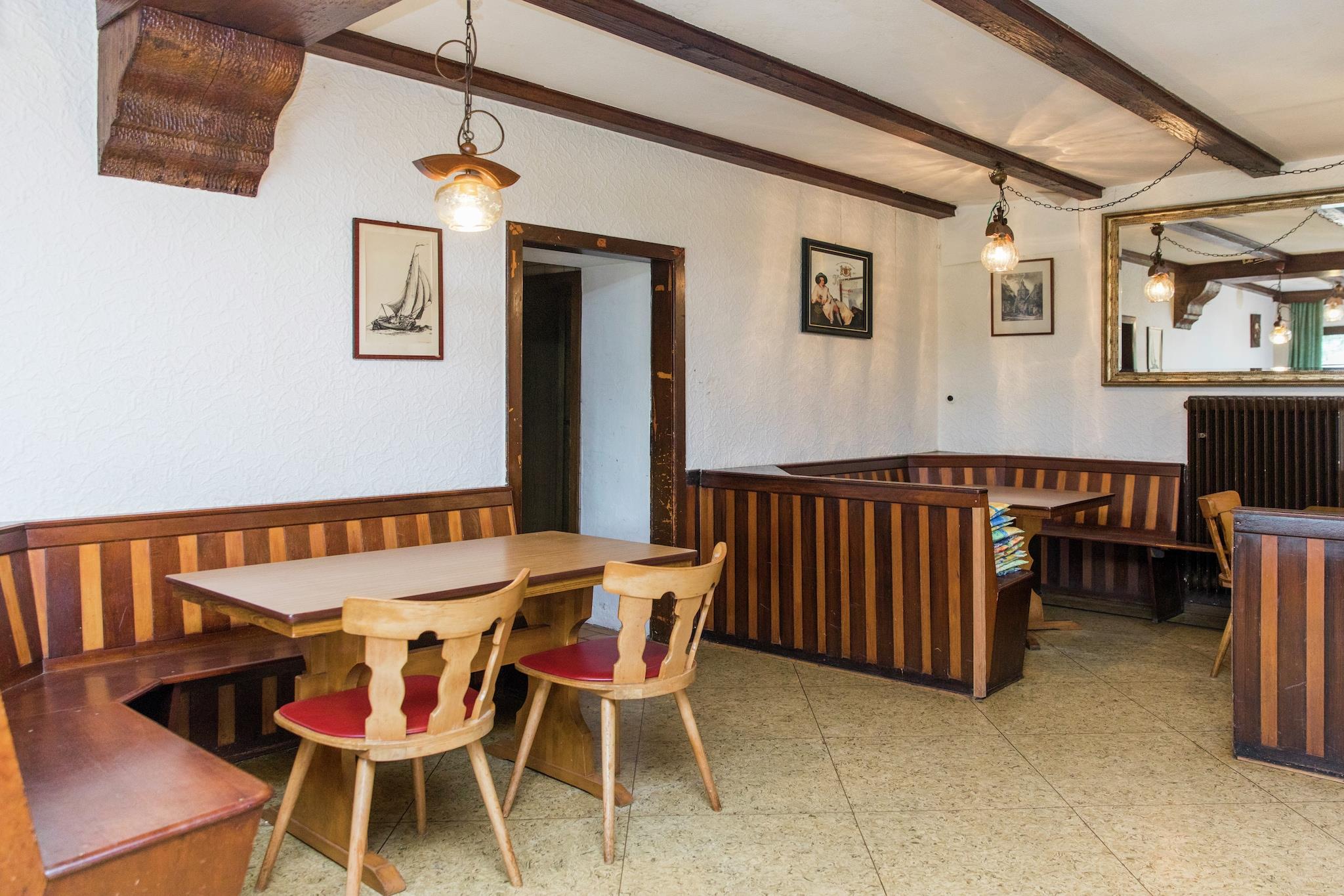 Dette tidligere "Gasthaus" er det ideelle sted for en gruppes ophold. Huset (ca. 600m2) er meget hyggeligt og har en smuk beliggenhed i Eifel. Eifel er kendetegnet ved sin smukke natur, hvor du kan gå godt eller cykelture.Motorcykelentusiaster finder alt, hvad de har brug for her også på Eifels snoede, men godt asfaltede veje. I nærheden af huset kan du nyde forskellige aktiviteter og muligheder for dit hjerte. Den store region og den centrale beliggenhed i hjertet af Eifel er et ideelt udgangspunkt for opdagelsen af regionen. Uanset om du er på udkig efter afslapning i et roligt miljø eller for livlige og dynamiske aktiviteter, har Eifel det hele. Kano, rafting, golf, Eifel-zoologisk have i Lünebach, Eifelpark nær Bitburg og et besøg på Formel 1 kredsløb af Francorchamps og Nürnburgring er kun nogle få af de mange muligheder. Og et besøg i en af de mange omkringliggende byer som den berømte Waxweiler eller byerne Trier, den ældste by i Tyskland og Luxembourg er absolut det værd! Kort sagt, en region med noget for enhver smag! Husk at ferien på en WIF-forbindelse via antenner. Det betyder, at WiFi-forbindelsen kan være lidt værre under dårligt vejr.