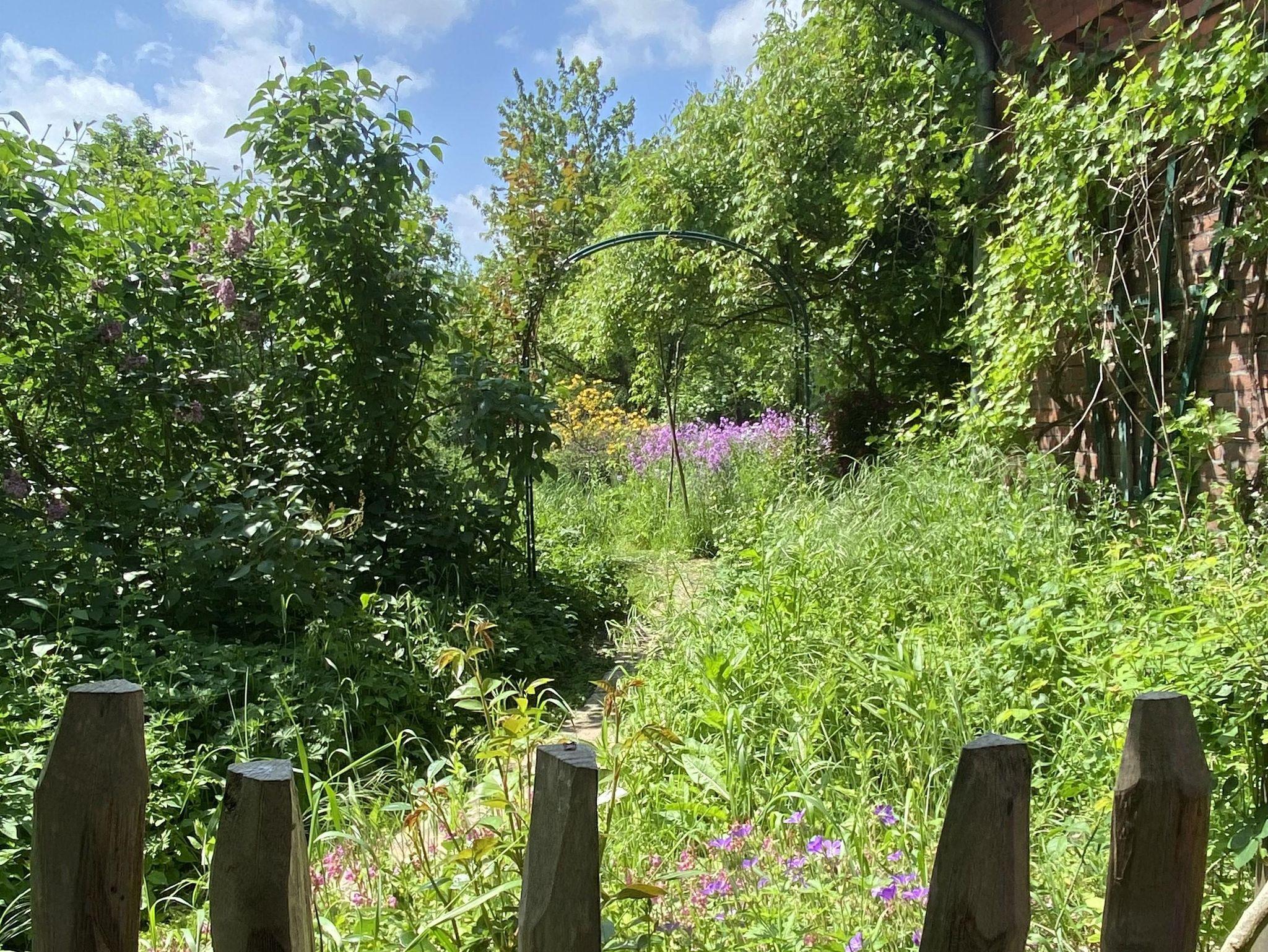 Der Paradiesgarten ist ein Resthof mit Hauptgebäude aus dem Jahr 1792 und einem Nebengebäude aus ca. 1900, in dem sich die Gastronomie und die Unterkünfte befinden. In Alleinlage, direkt am Elbdeich und den hier verlaufenden Radwanderrouten, bietet er, fern der großen Straßen, herrliche Ruhe und Entspannung Das knapp 5ha große Gelände mit Weinfeld, Rosengarten, Streuobstwiese, Gemüsegarten und Weideflächen lädt ein zum spazieren. Besonders beindruckend ist eine Stieleiche, die mit 700 Jahren zu den ältesten Bäumen Deutschlands zählt.