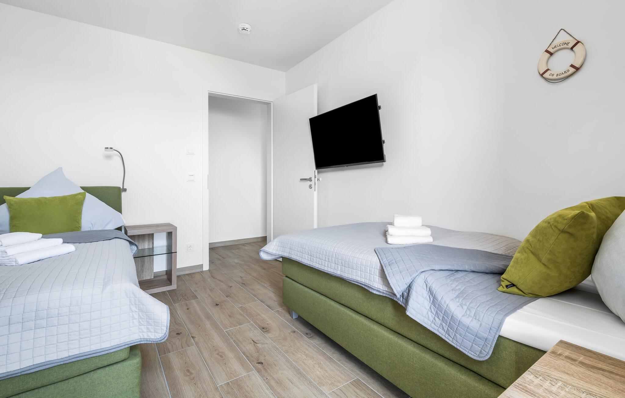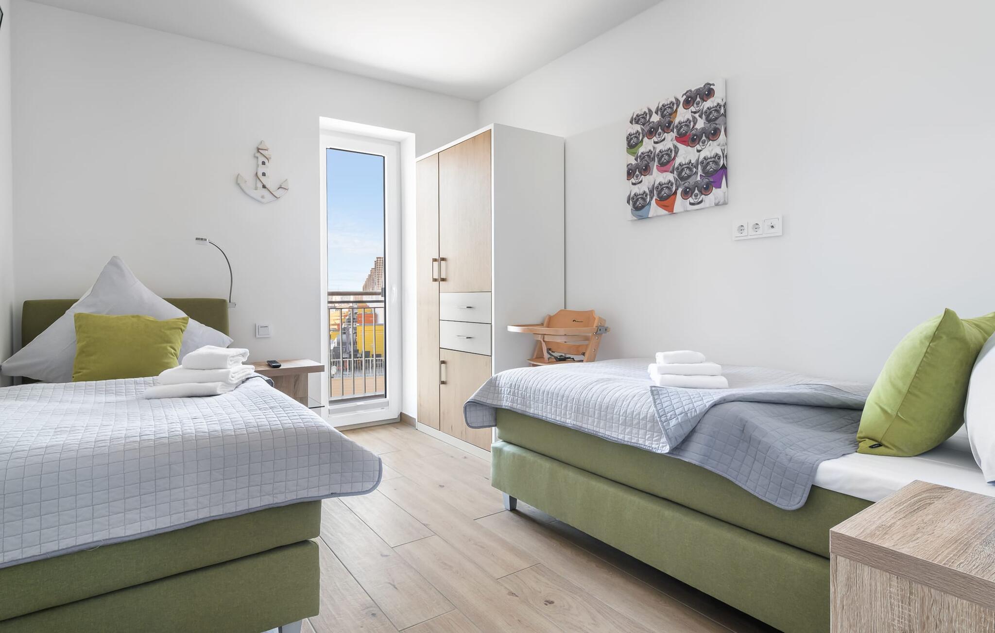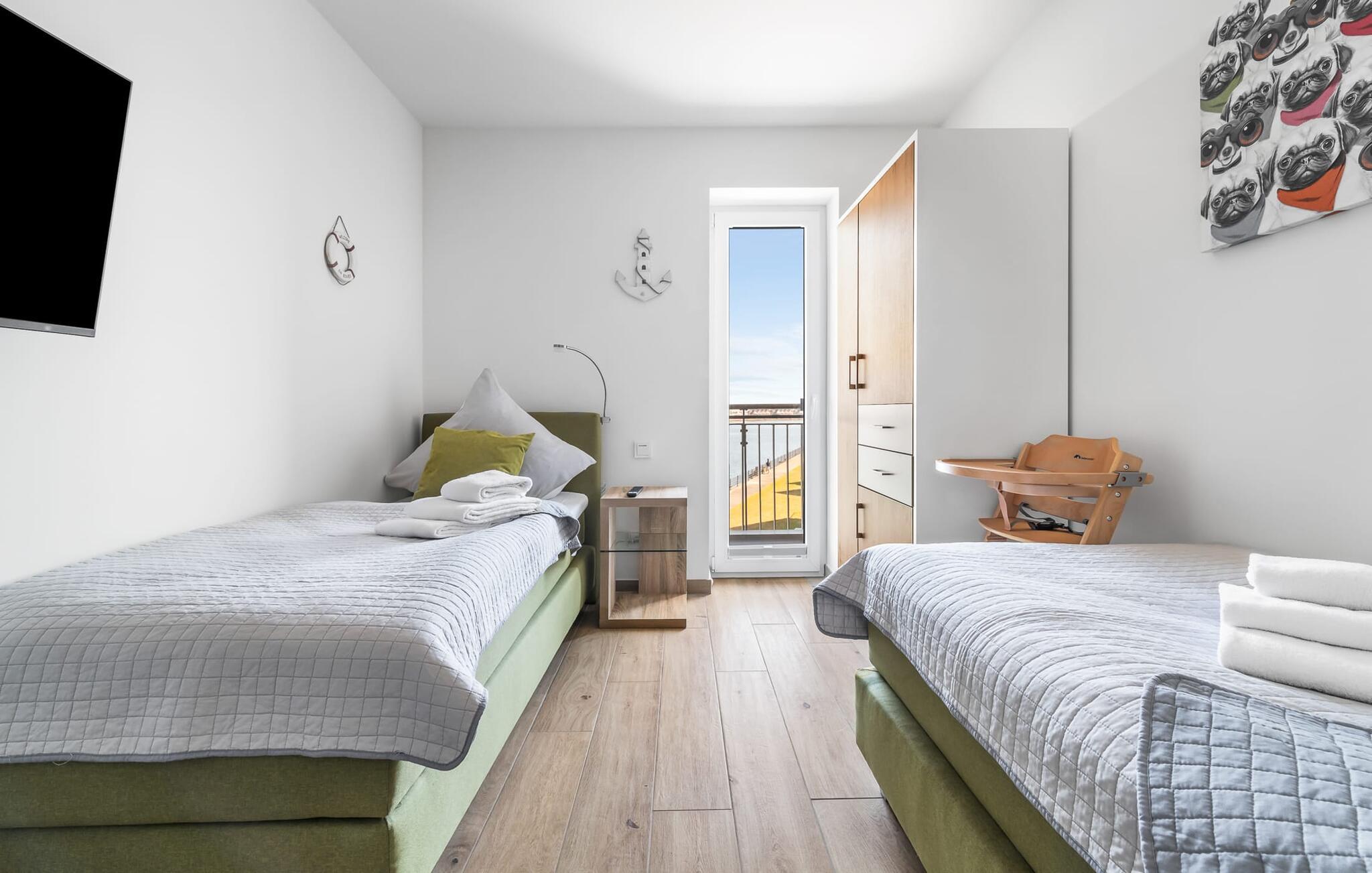 Den populære havnepromenade med forskellige butikker og restauranter, samt sandstranden Weidefelder, er inden for gåafstand, er det perfekte udgangspunkt for alle former for udflugter.
