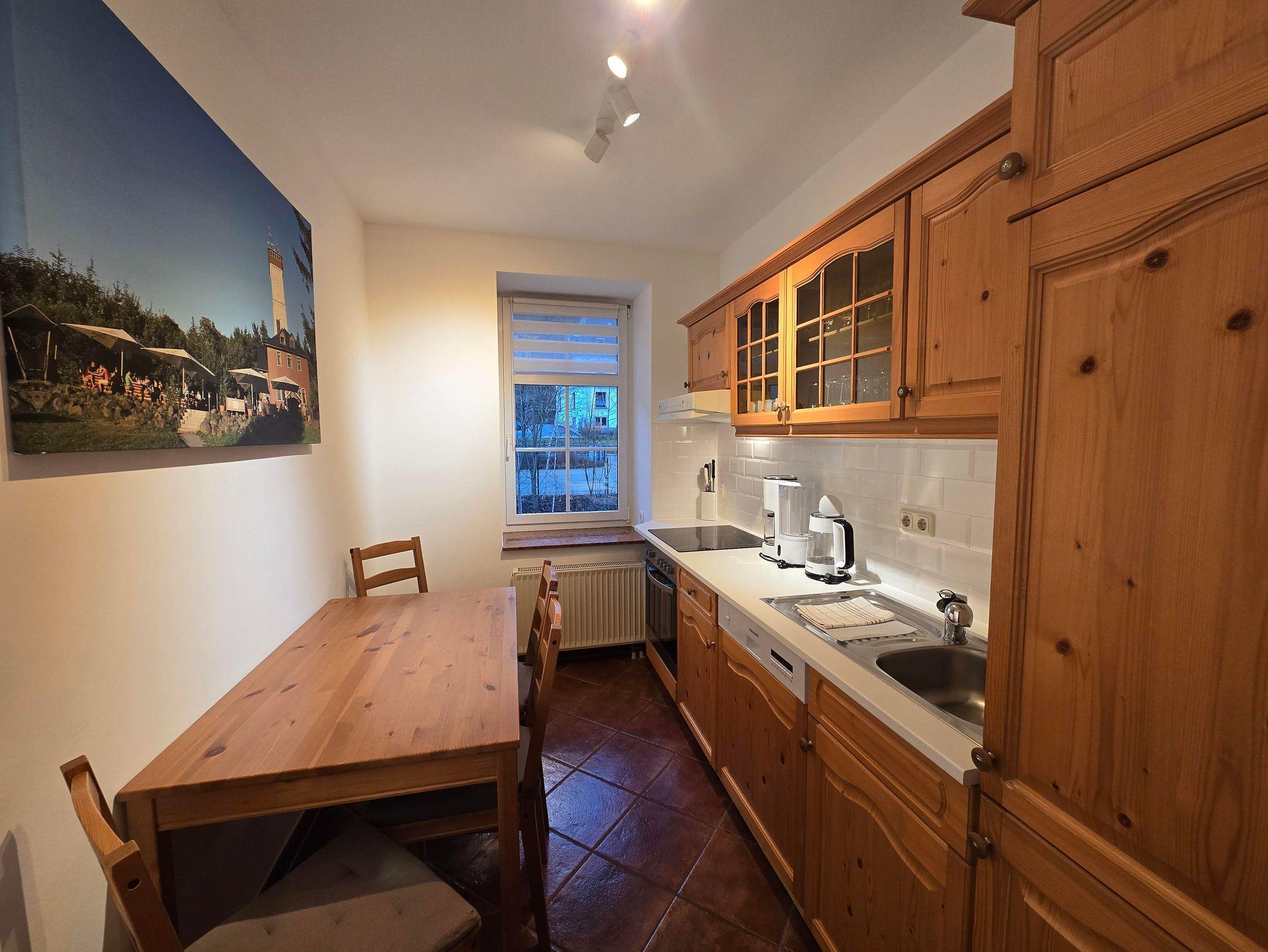 Unser Appartement Pöhlberg hat eine Größe von 58qm und befindet sich im Erdgeschoss unseres Landhauses: