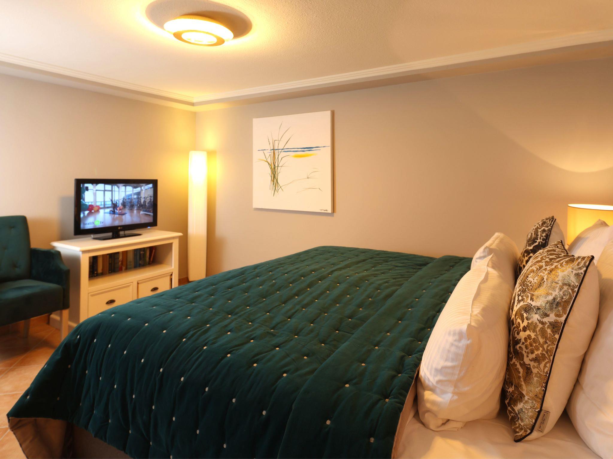 At the heart of the flat you will find a generously equipped kitchen, which leaves nothing to be desired with a ceramic hob, a pod coffee machine, a kettle and a dishwasher. There is also a dining table set for you to enjoy meals together. For your convenience, there is a washing machine and tumble dryer in the building, which you can use communally. The warm and inviting living ambience is completed by the large bedroom in the basement with flat-screen TV and practical built-in wardrobes as well as a shower room.