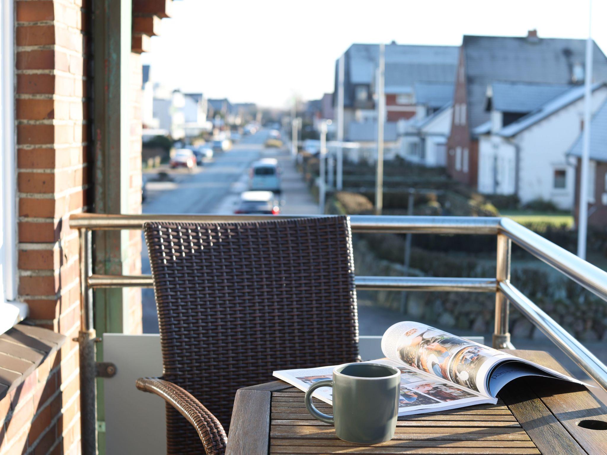 We warmly welcome you to our 2-room holiday flat Strand-Suite in the newly opened "Strandvilla Schützenstraße 4" in Westerland. The generously designed flat with approx. 69 square metres extends over 2 levels (1st floor and attic), the maxim here is "arrive and feel good". The bright upper floor flat is ideal for 2-3 people. Both the shower room and the kitchen open from the hallway. It is equipped with a microwave oven, 2 ceramic hob and a dishwasher. From the kitchen, a staircase leads up to the 2nd floor, where the bedroom and the walk-in wardrobe are located. Right next to the kitchen is the living room with a cosy sofa bed, dining area, flat-screen TV, stereo system and DVD player. From here you have access to the sunny south-facing balcony with table and chairs, while the bedroom offers a cosy bed for dreaming. In the basement of the house there is a washing machine and tumble dryer, an ironing board and iron as well as a sauna (for a fee), which can be used communally. Free Wifi is of course available throughout the house, and there are plenty of opportunities to relax and enjoy each other's company, whether on soft cushions, at the large dining table or on the balcony. Come with high expectations, they will be fulfilled here!