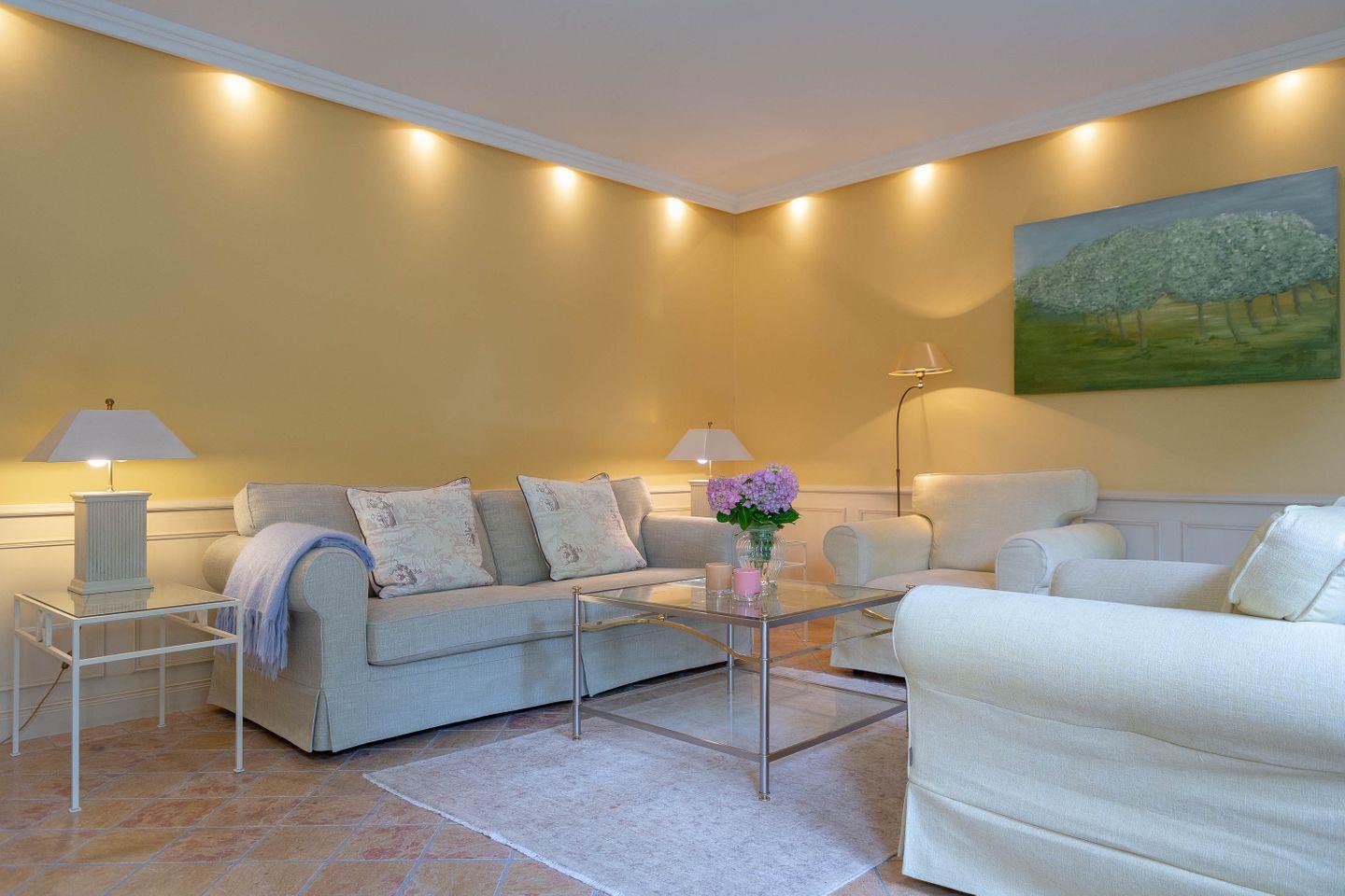 Das Erdgeschoss des Biberhüs bietet unglaublich viel Raum für ein nettes, entspanntes Duett. In großzügigen, weitläufigen und mit bequemen, hochwertigen Polstermöbeln und schönen Holzeinbauten ausgestatten Zimmern können Sie sich so nah sein wie möglich und so viel Platz beanspruchen wie nötig für die perfekte Erholung in totaler Harmonie. Der helle, beheizbare Marmorboden und die attraktive Innenarchitektur mit den Sylter Holzvertäfelungen, modernem Marmorbad, der modernen Malerei von Waltraut Ewe, den alten, friesischen Wandtellern sowie der nicht einsehbare kleine Garten in Südlage mit zauberhaftem Teich und Wasserspielskulptur tragen gern ihren Teil dazu bei. Genauso, wie das ländlich-ursprüngliche Umfeld des Dorfes, zu dem die riesige gemütliche Wohnküche im Landhausstil perfekt passt. In den Schlafräumen, die mit französischen Polsterbetten und altem Spiegel ausgestattet sein, werden Sie sich sehr wohl fühlen. Genießen Sie die Ruhe auf der herrlichen Terrasse mit Garpa-Möbeln und Standkorb oder am Teich mit Wasserspiel und Boulevard-Möbeln.