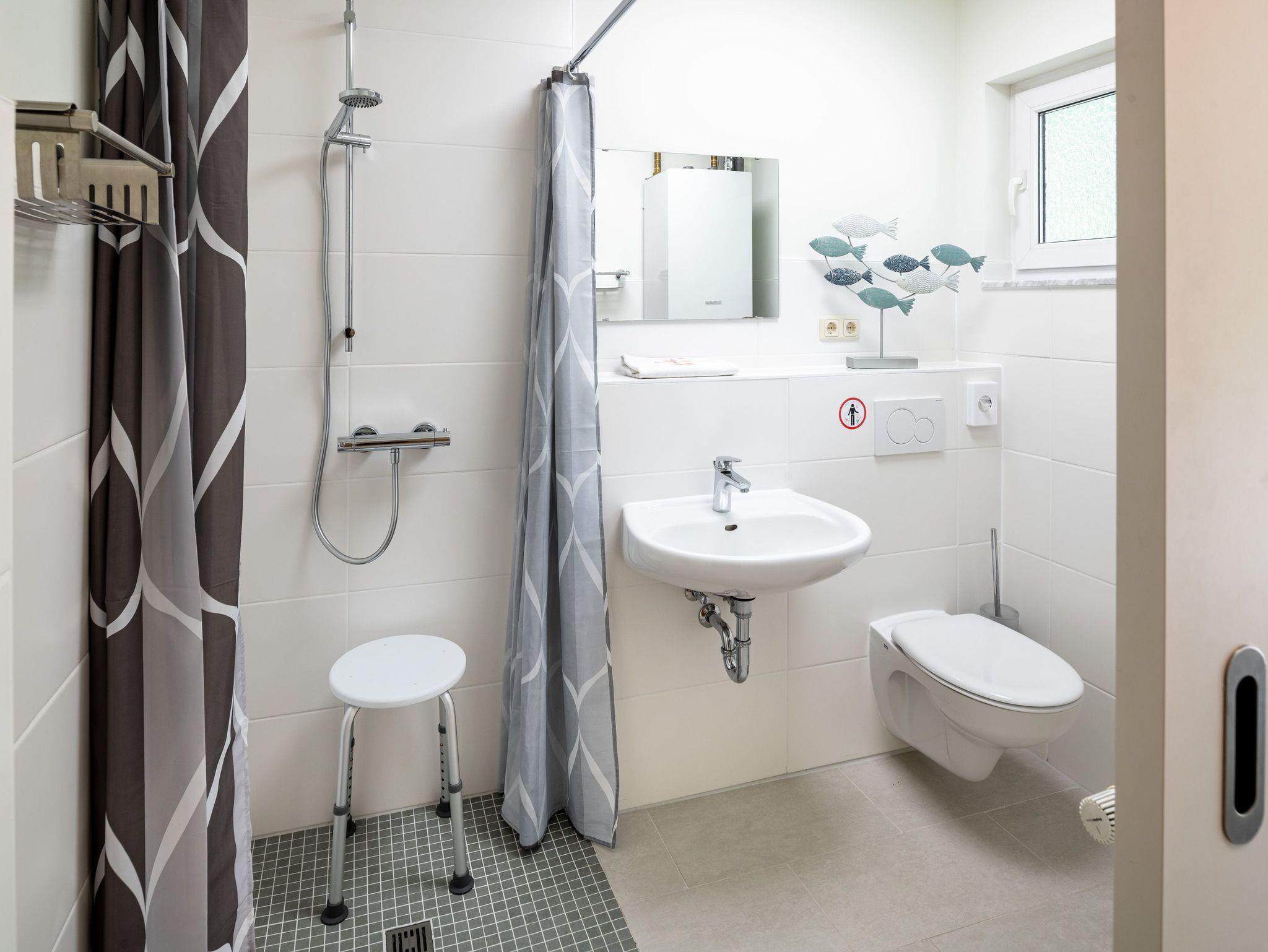 Die Ferienwohnung ist modern möbliert und voll ausgestattet mit einer Einbauküche, barrierefreiem* Badezimmer (EG-Wohnung) und TV. Außerdem verfügt die Ferienwohnung u. a. über schadstoffarme Bodenbeläge (Parkett/ Linoleum). Unsere Gäste können sich in der Ferienwohnung selbst verpflegen und selbst um die Raumpflege kümmern, oder sich nach Absprache von der alltäglichen Hausarbeit entlasten lassen, inklusive Teil- oder Vollverpflegung. Muss während des Aufenthalts im Ferienhaus Wäsche erledigt werden, so stehen hierfür auf dem IDA Gelände natürlich auch Waschmaschinen und Trockner zur Verfügung.