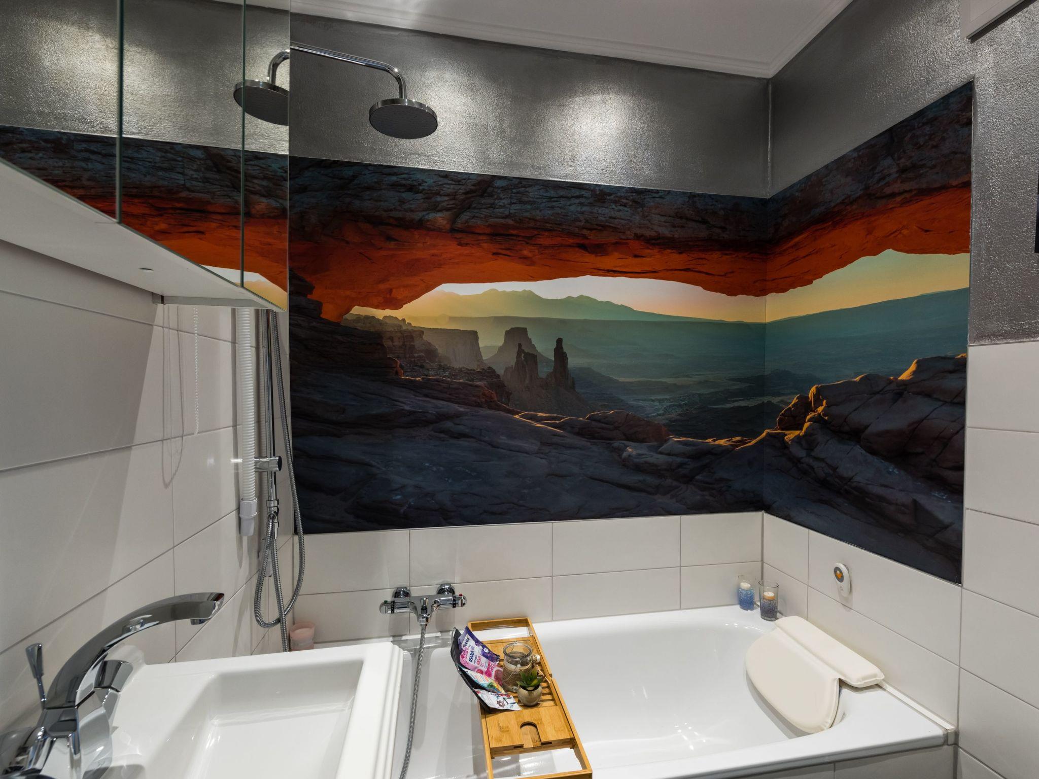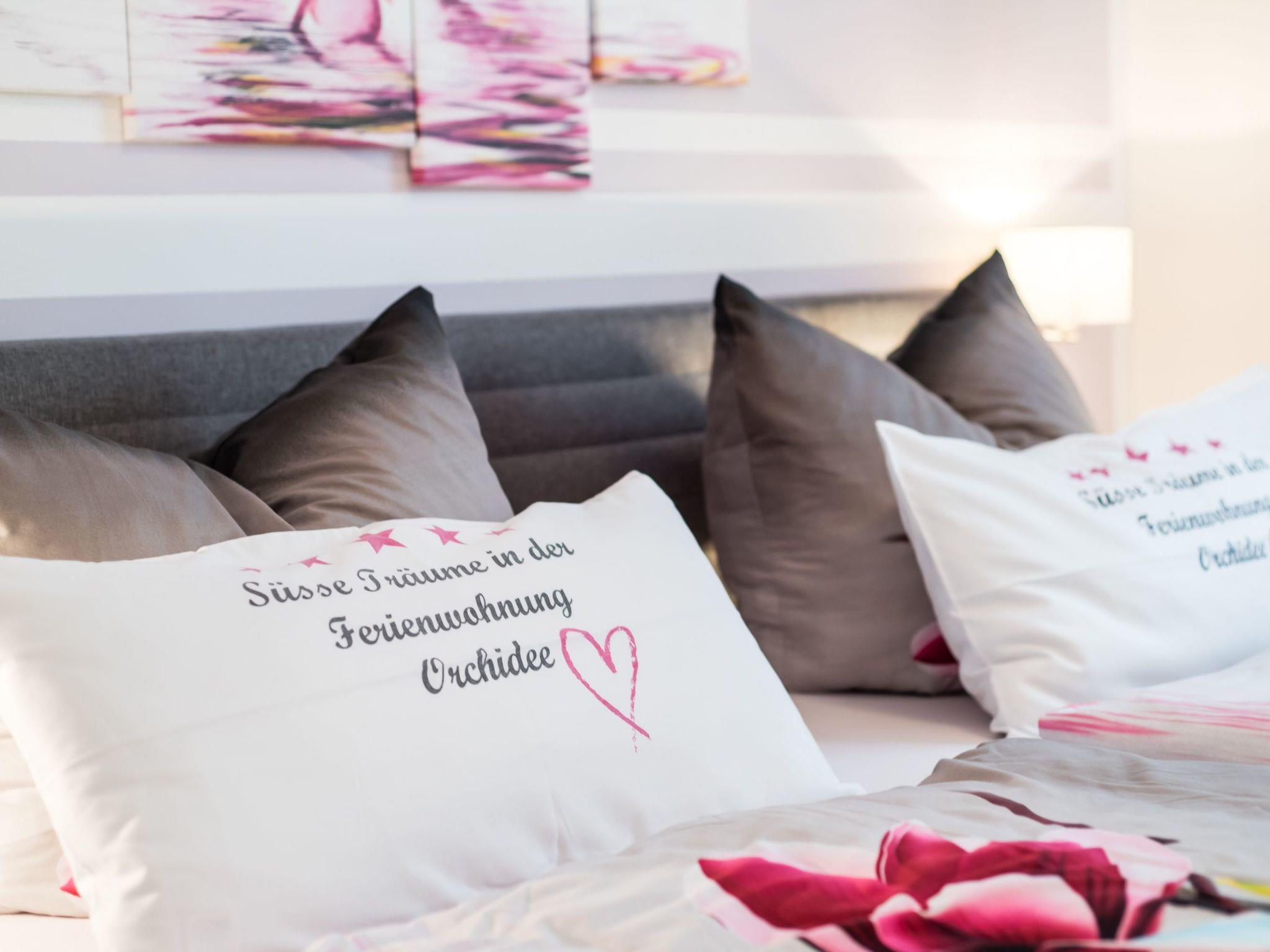 Have fun with the whole family or with friends in this stylish accommodation. The 5*star Orchidee holiday flat offers beds for 4 people and a comfortable pull-out sofa in the living room when needed. For your little ones, two ready-made travel cots measuring 60x120cm can be placed in the bedrooms and are provided free of charge. Of course, a high chair is also provided. There are also 2 bathrooms, 2 bedrooms, a private infrared sauna and a bathtub with an air bubble massage mat. A modern kitchen fully equipped with crockery, glasses and appliances. The double bed is a motorised adjustable box-spring bed, the single beds are normal box-spring beds. All beds are already made up when you arrive. Shower and hand towels, toilet paper and tea towels are also provided. The flat is fully equipped and you only need your personal belongings, nothing else. The coffee machine is a Senseo Twist which you can use either with ground coffee or coffee pods. In addition, the bedroom with the single beds has its own TV with internet connection. An electric fireplace in the living room provides additional cosy warmth on cold days in the transitional period, or you can just enjoy the visual flames :-)