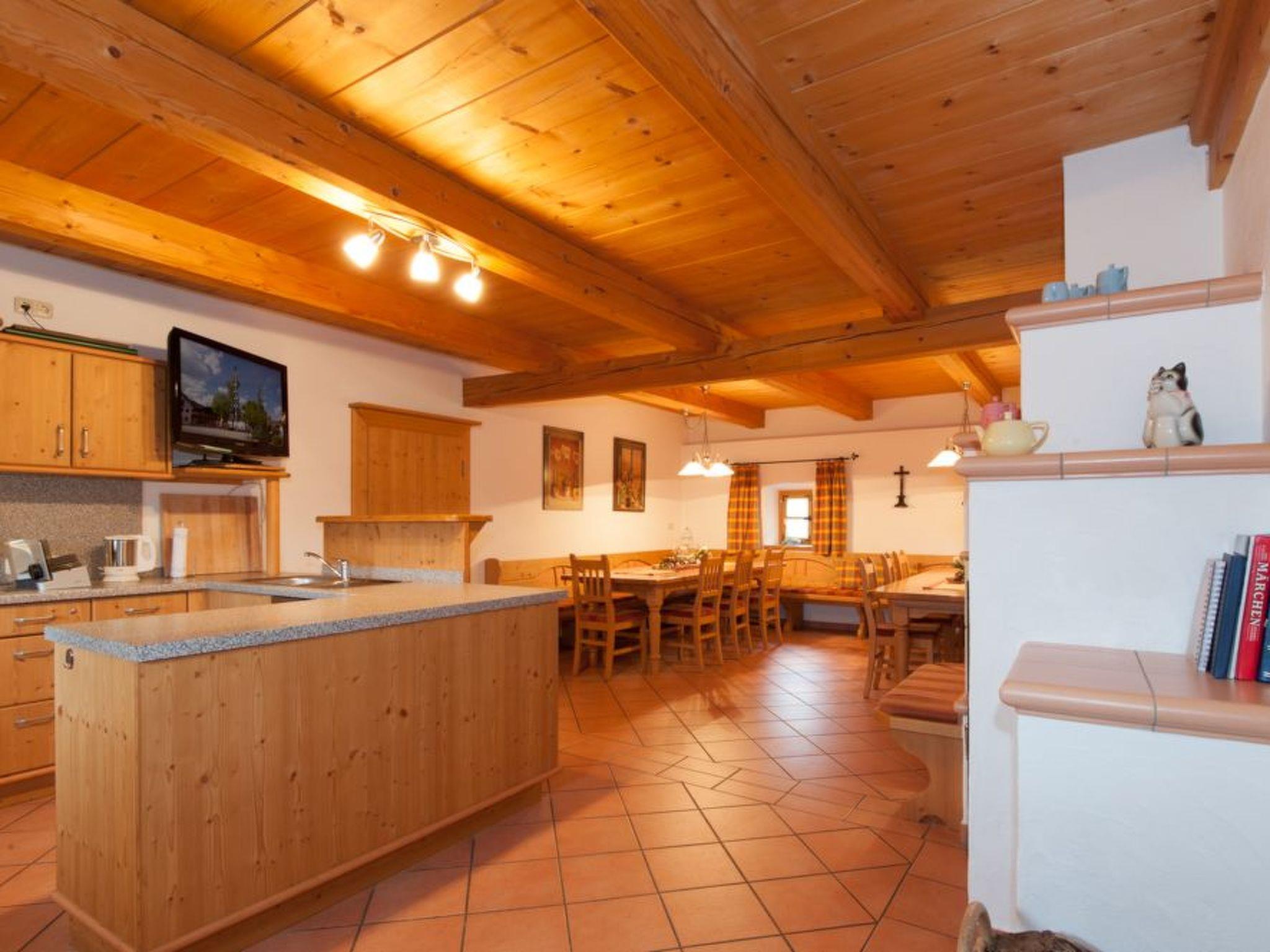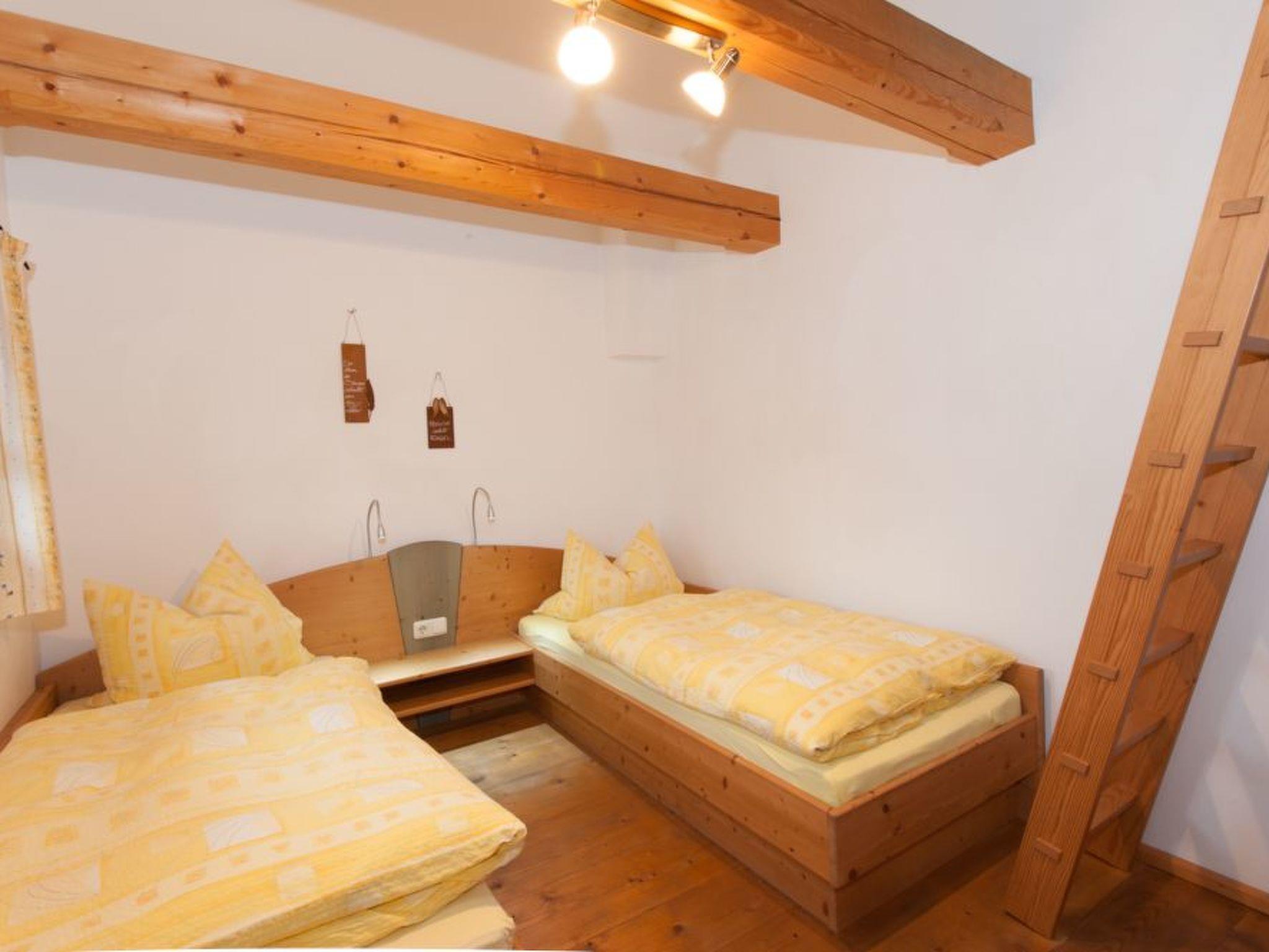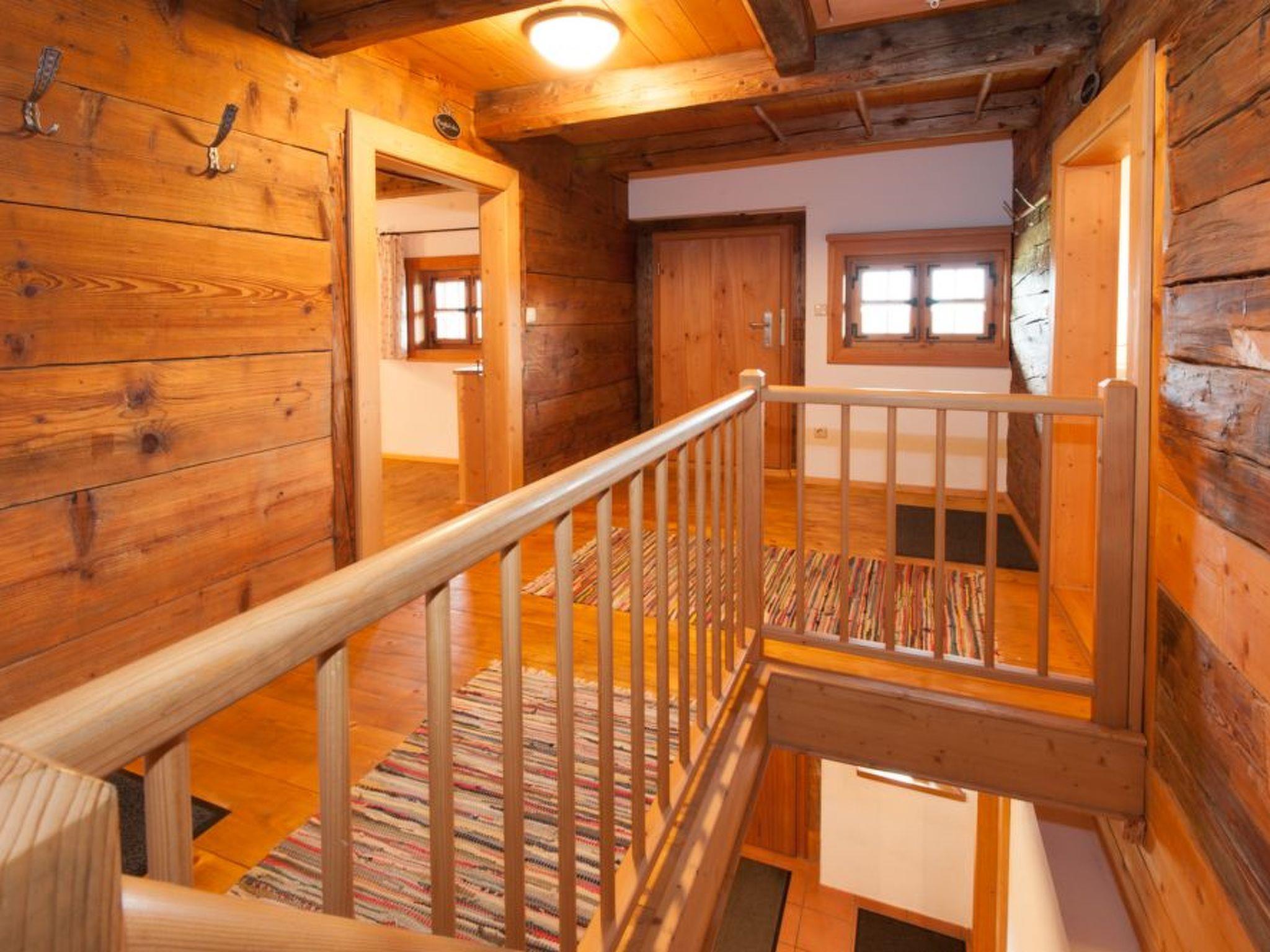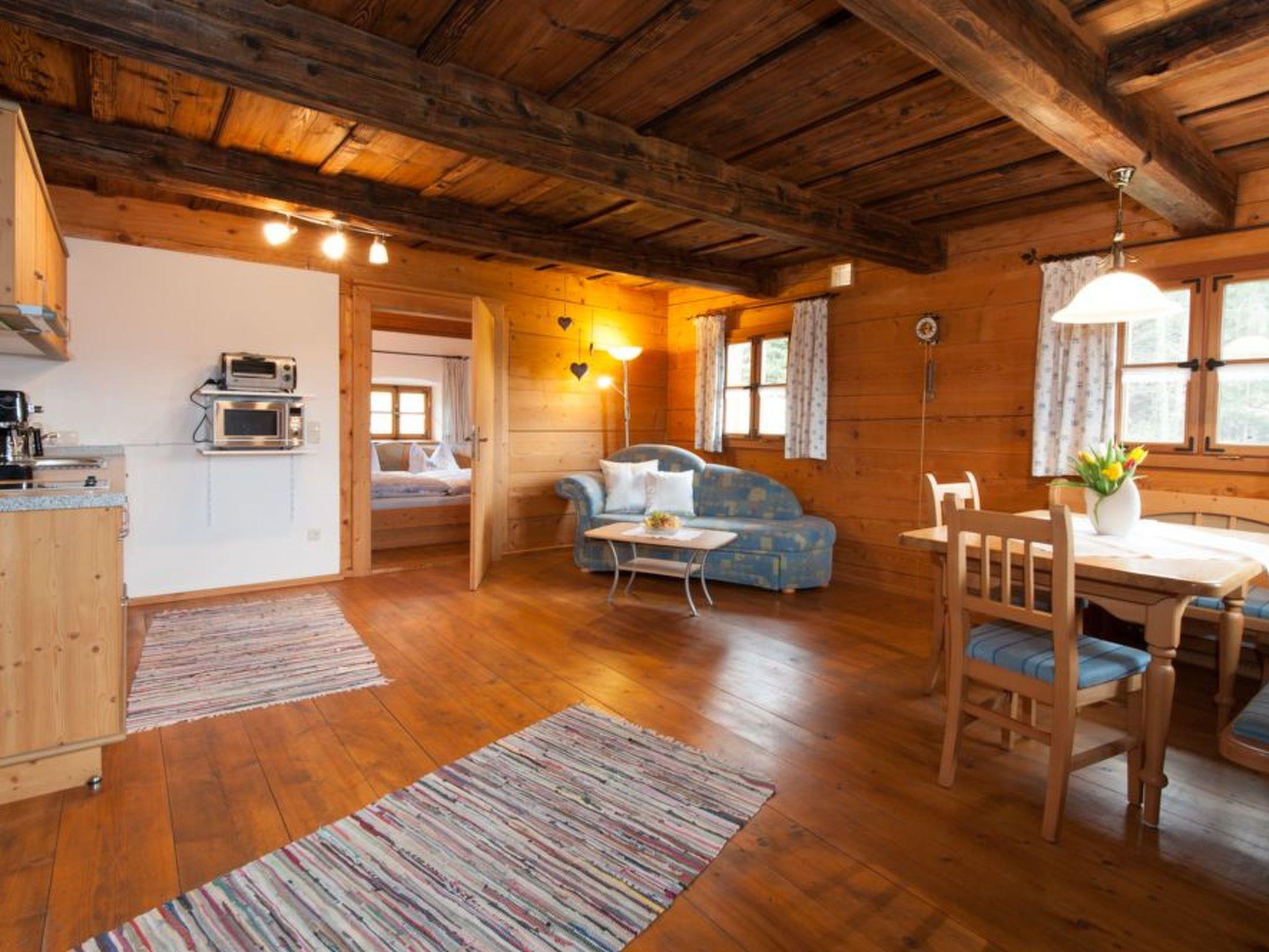 Our holiday home You live in a listed "Austragshaus" from 1850, which used to serve as a retirement home for the old farmers after the farm was handed over. They looked after themselves with one or two cows. Our "Austragshaus" was still inhabited until the early 1960s. The building was demolished in 2000 and completely rebuilt at a different location next to the farm. In order to make the old wooden house habitable again, the old beams were professionally repaired and partly renewed.three holiday flats with additional roof galleries, lots of solid wood and a large lounge with tiled stove were then very elaborately converted.the holiday home is only rented completely to groups and families and offers space for 10 - 15 people, through the separate flats there is enough privacy and retreats.on the ground floor of the holiday home is the common room with tiled stove. In this room is another fully equipped large kitchen, which you can also use.the sauna with relaxation room and solarium is located in the basement of the house.the farmhouse parlour45 sqm, suitable for 2 - 4 people and divided into: