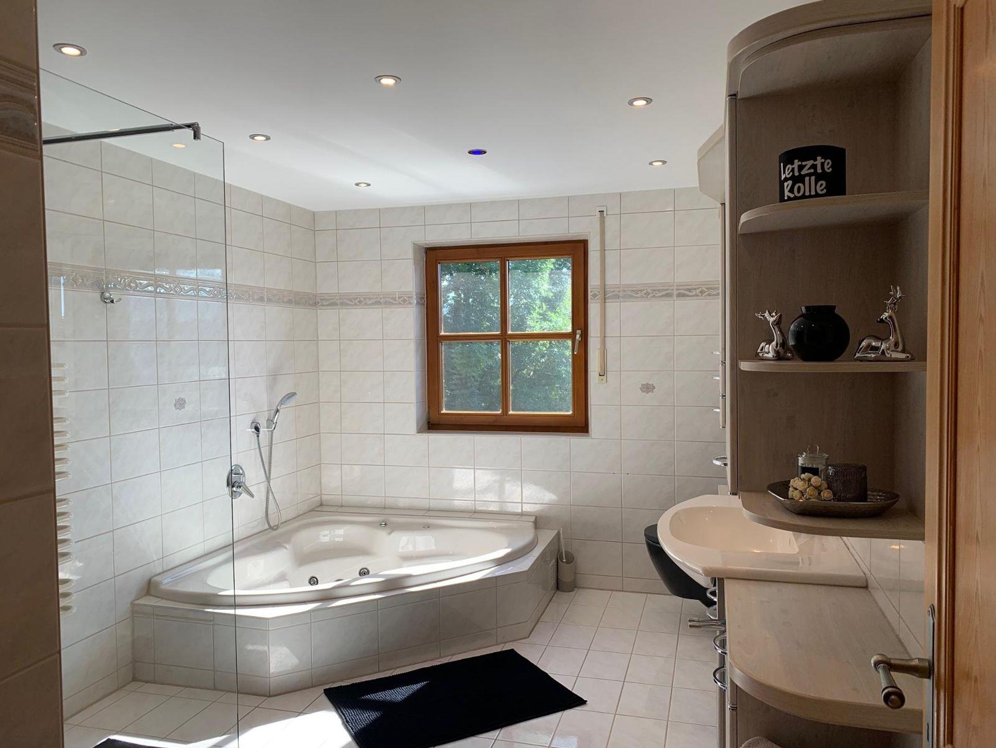 Im 2. Obergeschoss empfängt Sie ein großes Bad mit ebenerdiger Dusche und Whirlwanne sowie 2 Schlafzimmer mit hochwertiger Ausstattung.