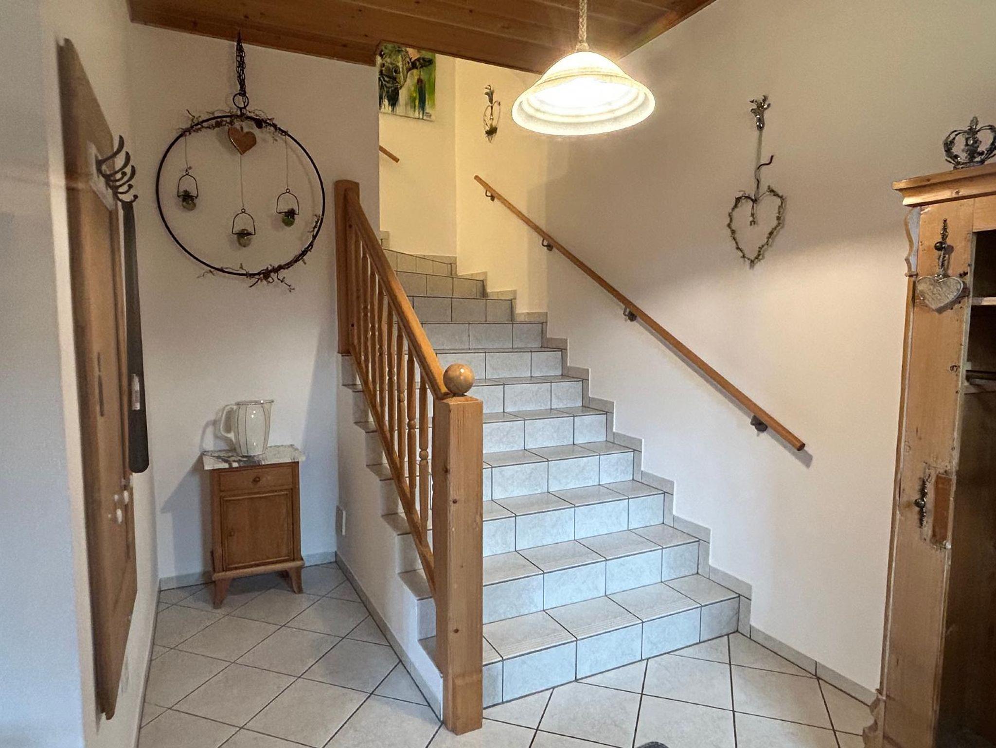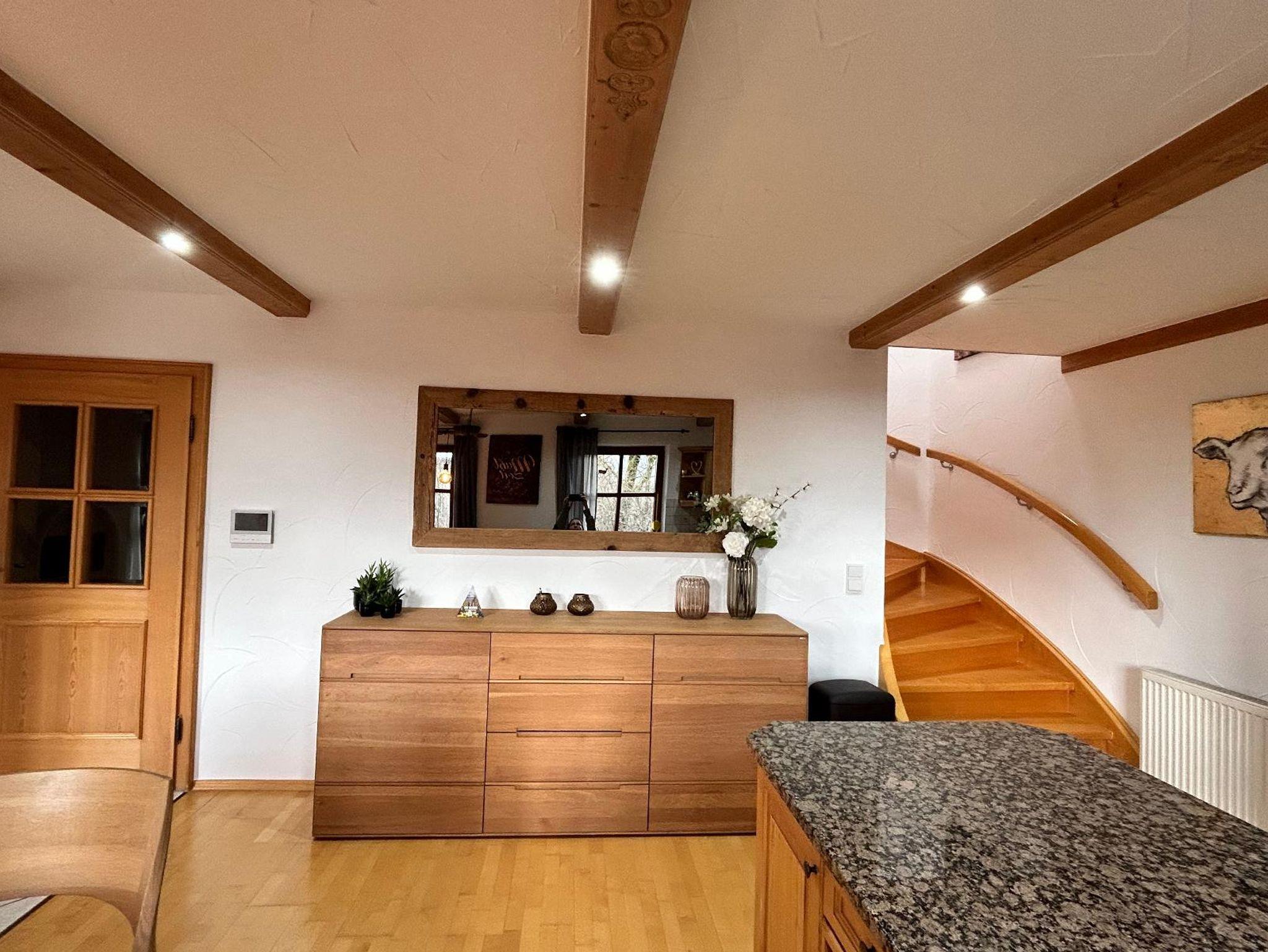 Im 1. Obergeschoss ist das Gäste-WC, Wohnzimmer, Küche mit Essbereich.
