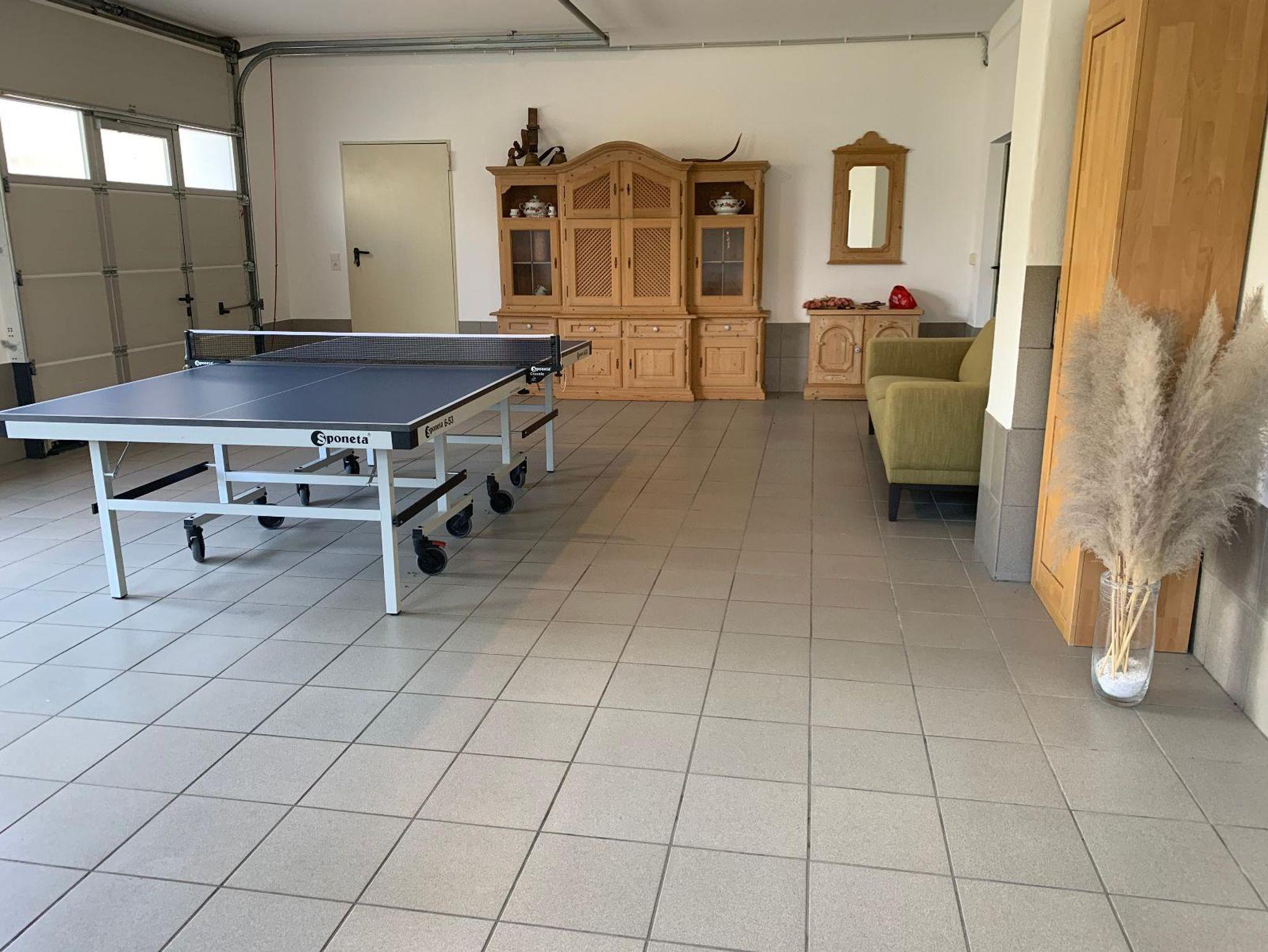 Die angrenzende Doppelgarage wurde umfunktioniert und lädt unsere Gäste zum Tischtennisspielen ein.