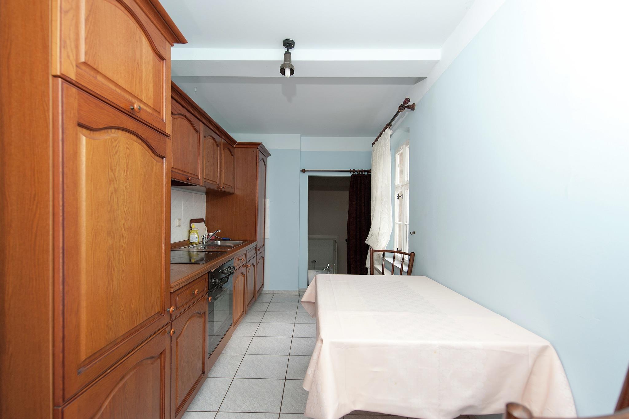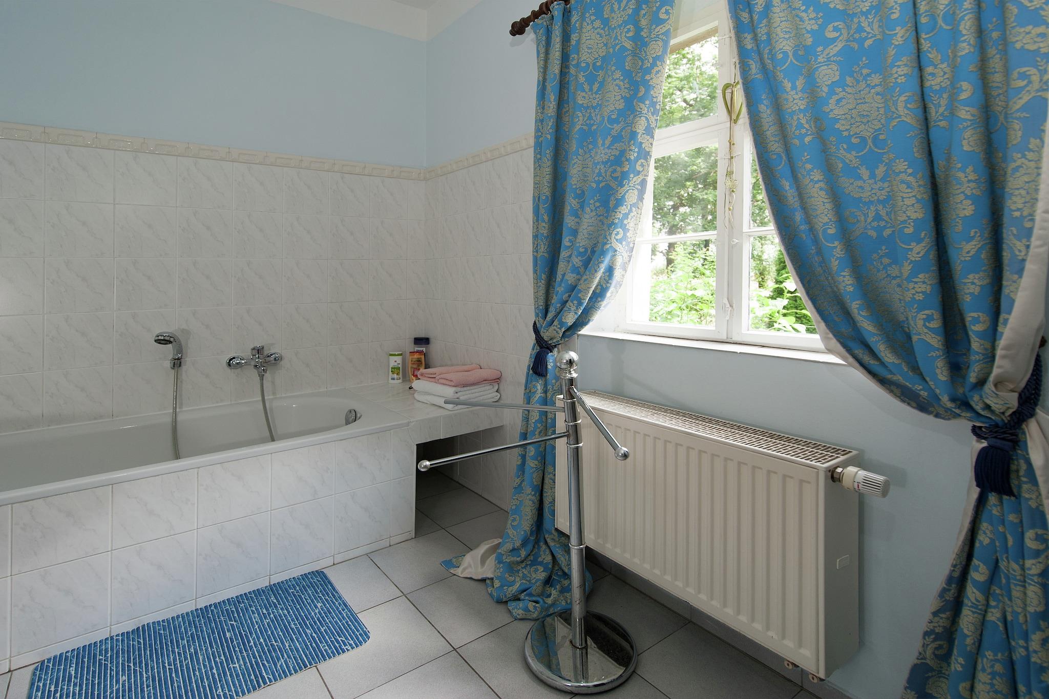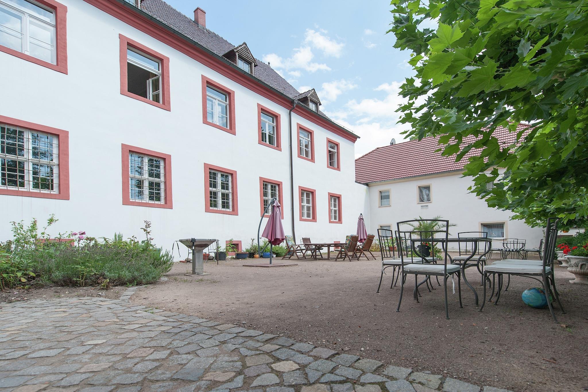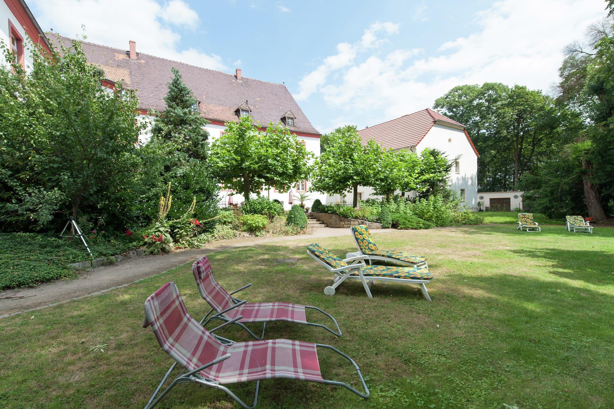 Beliggende i det smukt restaurerede Schloss Triestewitz, tilbyder denne charmerende studiolejlighed på første sal et unikt ophold i hjertet af Sachsens kulturelle trekant - mellem Berlin, Leipzig og Dresden. Lejligheden er ideel til 2 gæster og har en dobbeltseng, satellit-tv og et tekøkken med kaffemaskine, ovn og håndvask. Badeværelset har badekar med bruser, håndvask, toilet og hårtørrer. Centralvarme, fælles vaskemaskine og tørretumbler sikrer komfort og bekvemmelighed. Gæsterne kan nyde den fælles have, terrasse og grillplads, perfekt til at slappe af efter en dag med udforskning. Slotsområdet omfatter en 3.000 m² stor have og adgang til en 16 hektar stor park, som er ideel til at gå, cykle eller blot nyde de rolige omgivelser. Med restauranter (1 km), en sø (1 km) og Dübener Heide-skoven (100 m) i nærheden, er denne lejlighed en fredelig base for både naturelskere og kultursøgende. Dagsture til Wittenberg, Potsdam eller Leipzig er let tilgængelige.