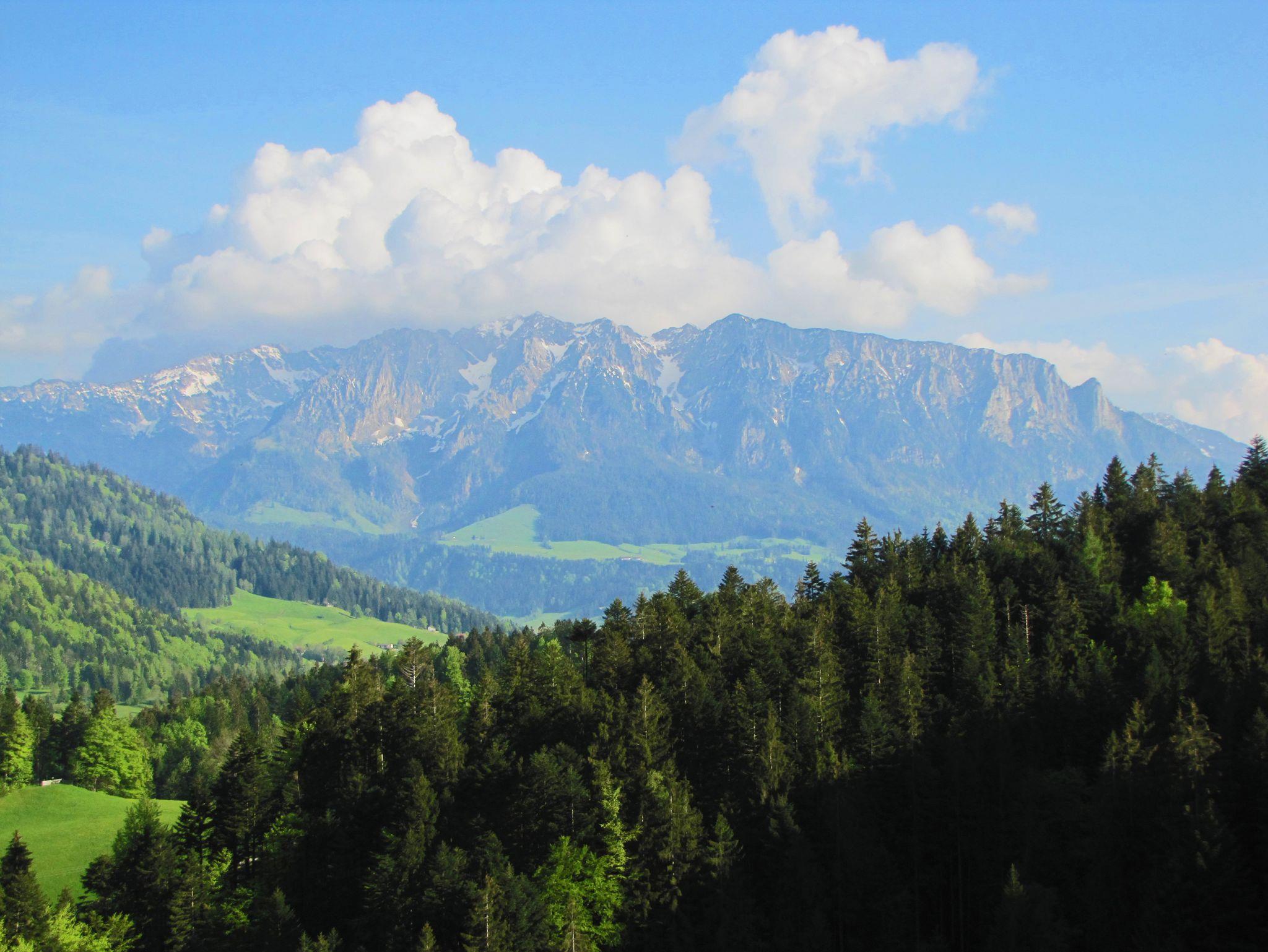 Oberhalb von Sachrang auf knapp 900 m trohnt der Simmerl-Bergbauernhof, ruhig und sonnig inmitten der Chiemgauer Berge. Genießen Sie den herrlichen Blick auf das Bergmassiv des Zahmen Kaisers und zur Wildbichlalm.