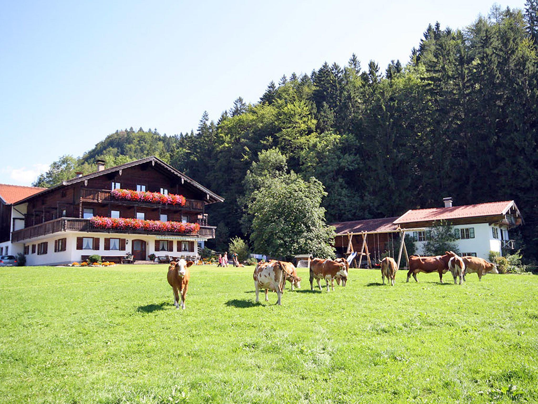 Unser traditioneller, bayerischer Bauernhof Ertlhof befindet sich in ruhiger und sonniger Lage am Waldrand, direkt neben einem murmelndem Gebirgsbach, mit freiem Blick über eine große Wiese zum Kaisergebirge.