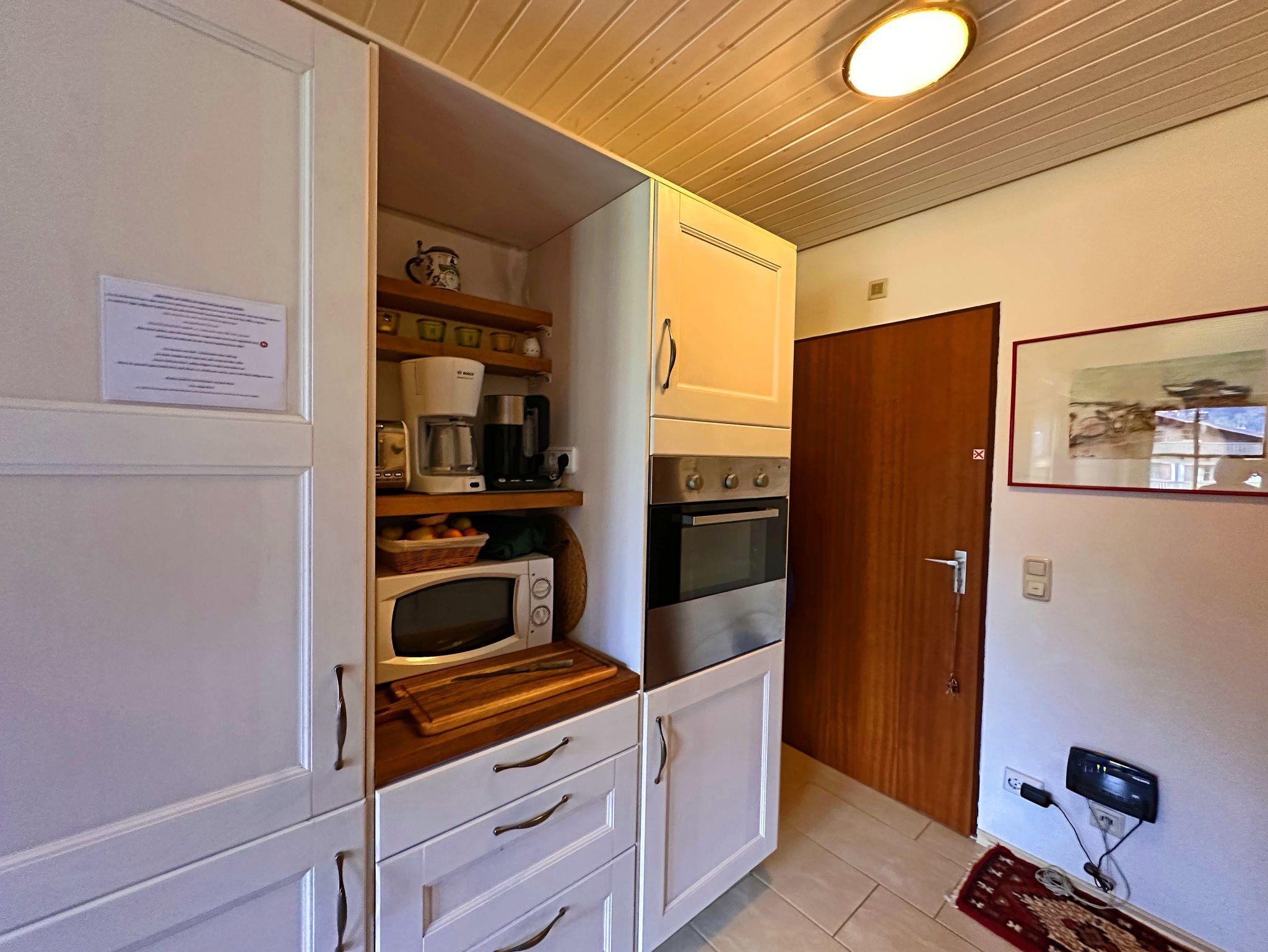 Sehr schöne und geschmackvoll eingerichtete Ein-Zimmer-Ferienwohnung in ruhiger Bergwelt. Schöner Ausblick auf die Berge von der Terrasse mit Gartenmöbeln. In unserem Apartment gibt es ein komfortables Doppel-Polsterbett 160x200 cm, mit neuen 7-Zonen-Kaltschaummatratzen, eine Ess- und Sitzecke, einen Schrank, Flat-Sat-TV mit integriertem DVD Player und kostenloses WLAN. Voll ausgestattete Küchenzeile mit Backofen. Ein elektrischer Grill-Raclette kann innen und außen genutzt werden. Ideal für Singles und Paare, gerne auch mit Baby und Hund. Gerne darf auf der Terrasse geraucht werden, ein Aschenbecher ist für die Raucher vorhanden.