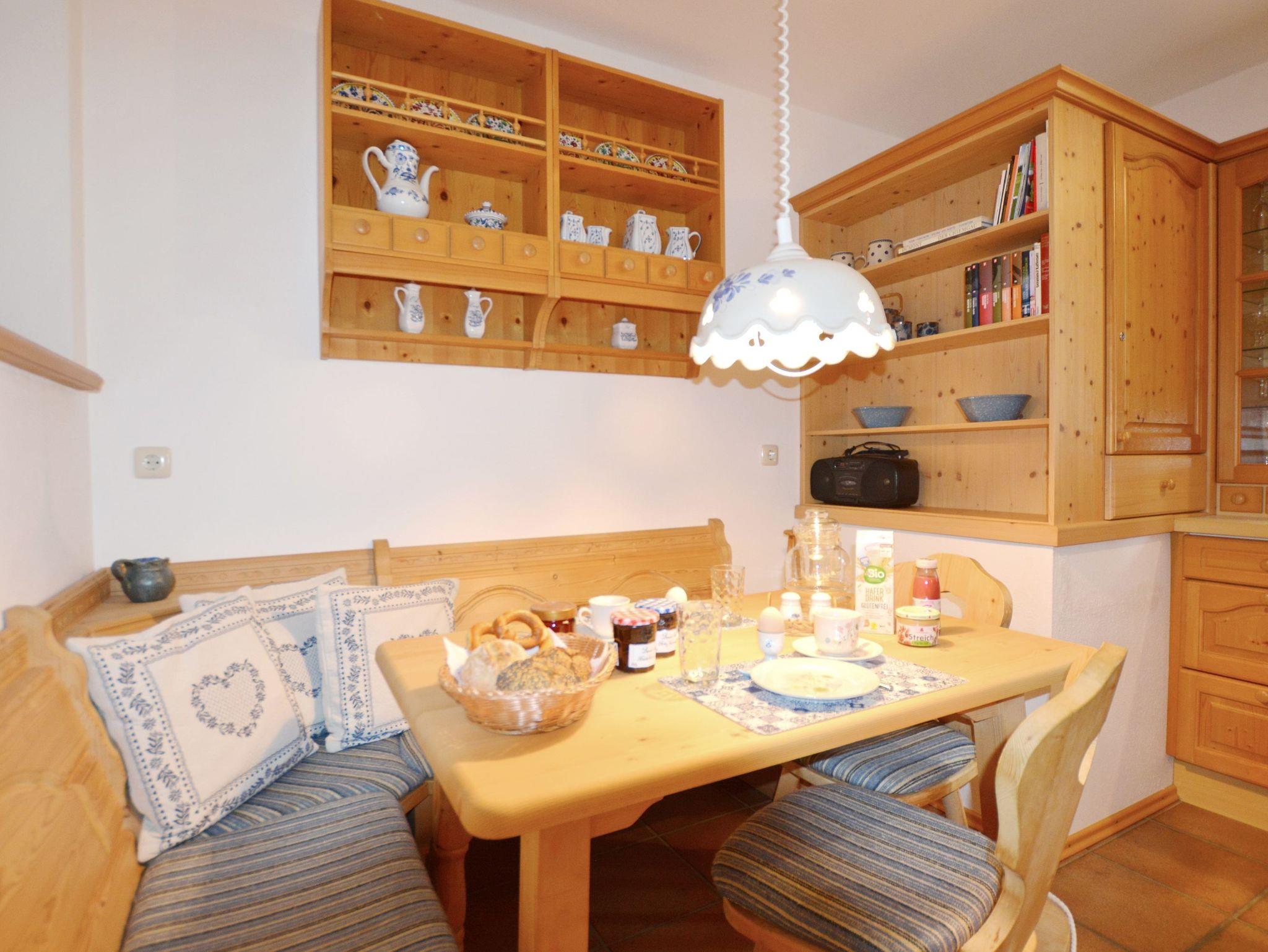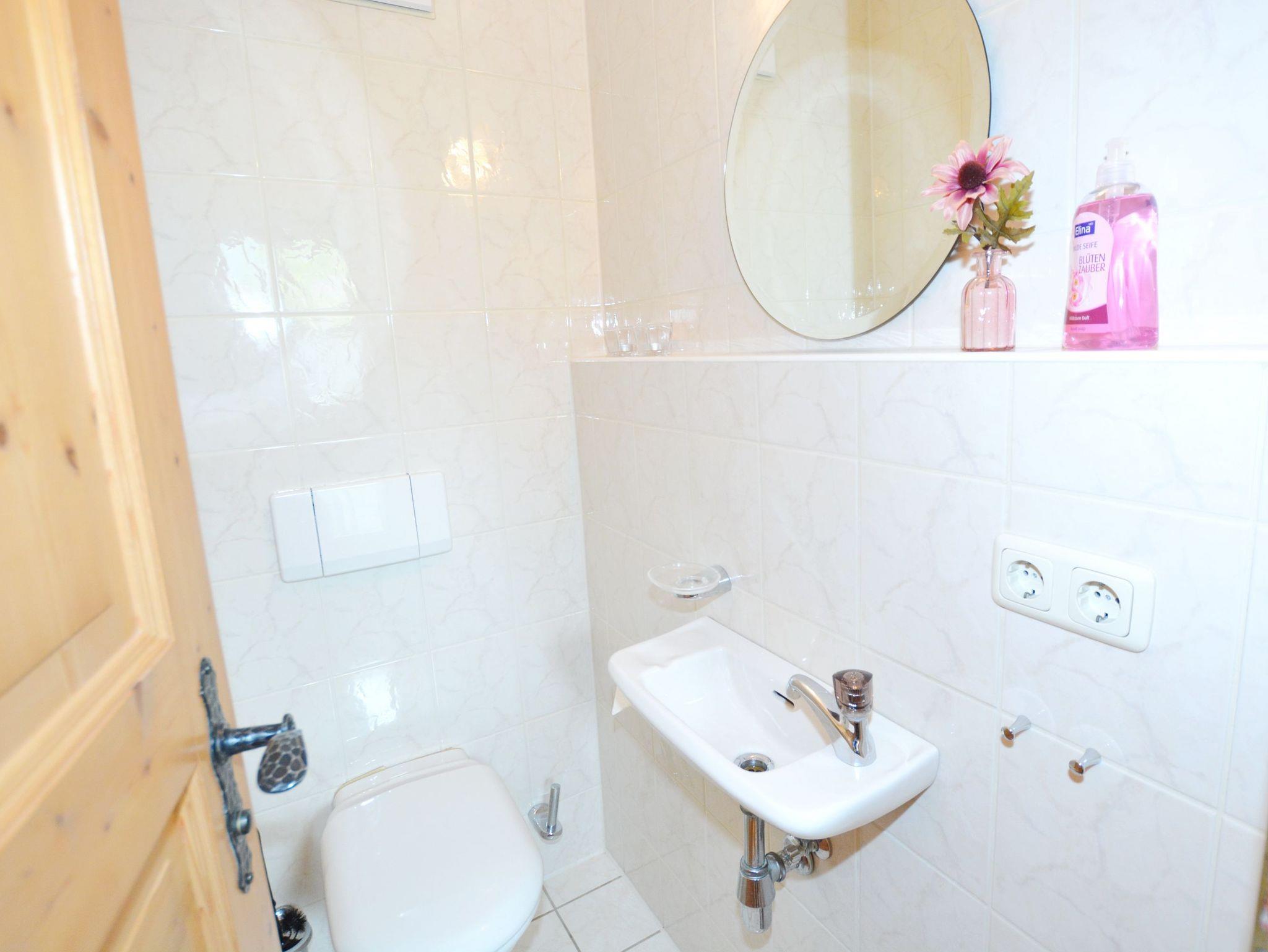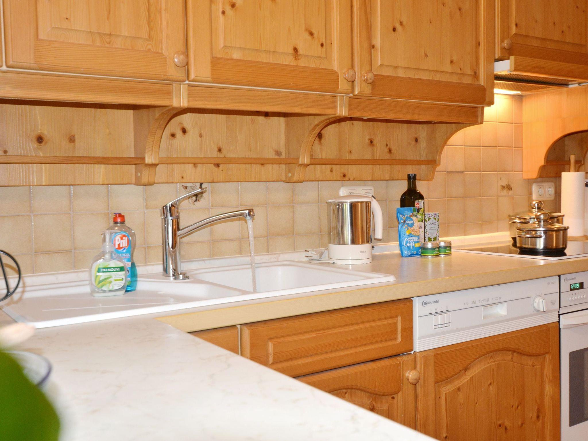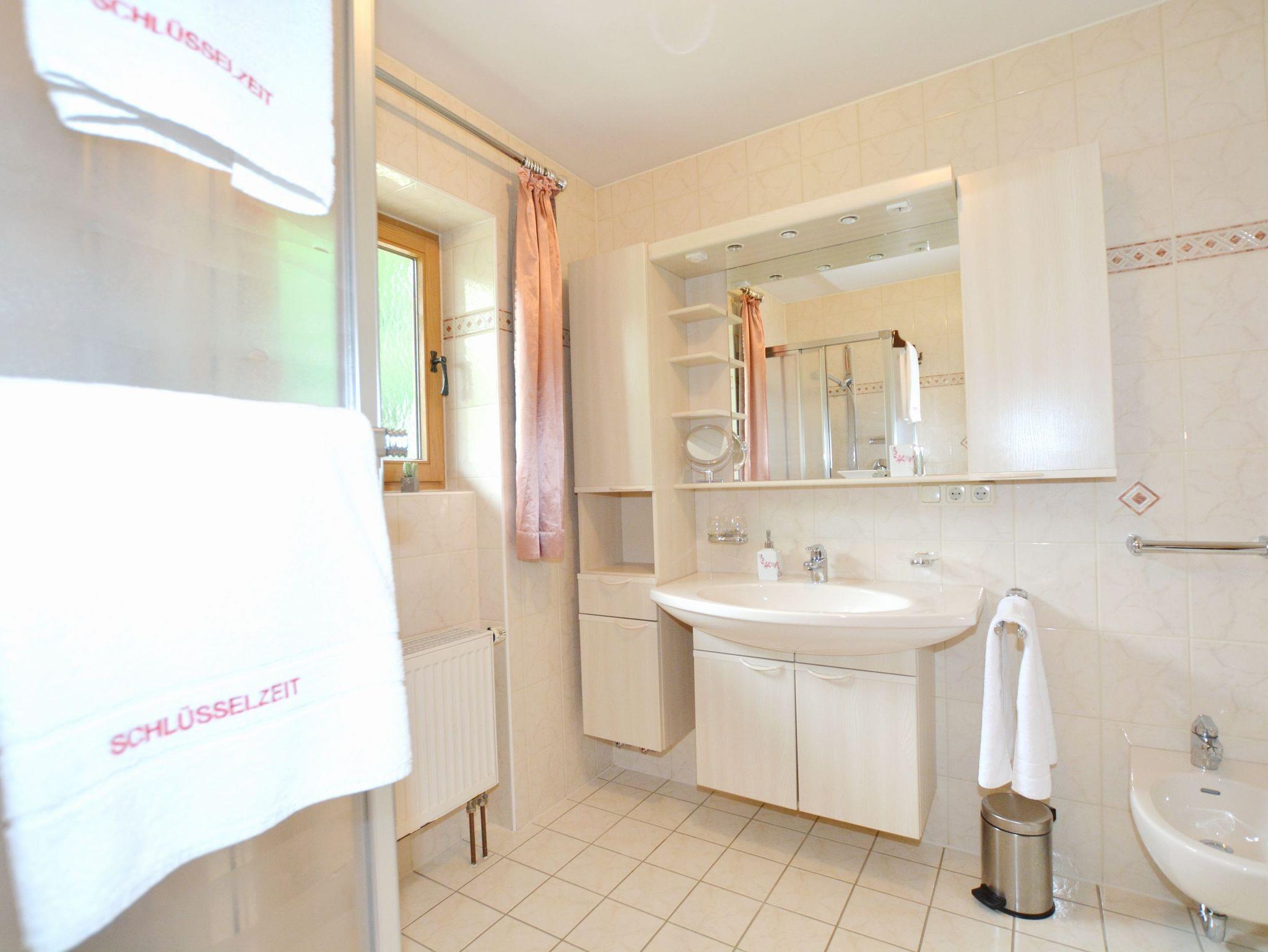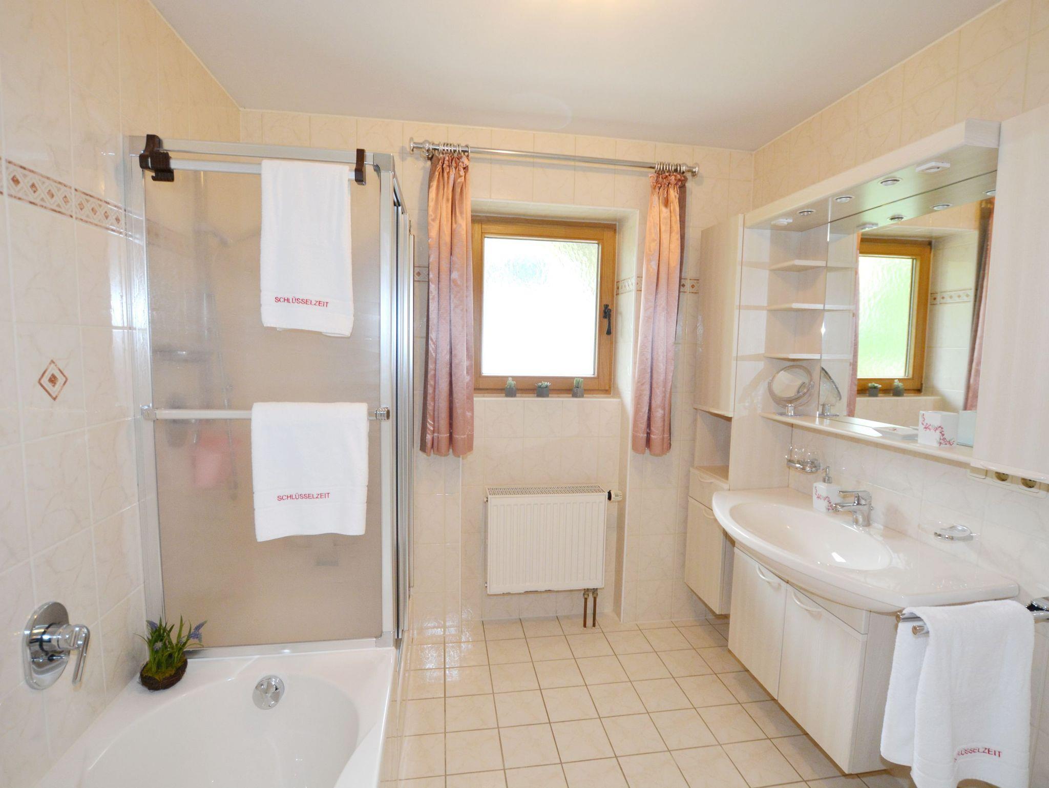 Durchgängig im Landhausstil mit Vollholzmöbeln und Holzdielenböden gehalten strahlt dieses Feriendomizil viel bayerische Gemütlichkeit aus. Im Wohnzimmer befindet sich ein Kachelofen mit Ofenbank und großer Sitzecke sowie eine Couchgarnitur. Die wunderbar geräumige Wohnküche besitzt ebenfalls eine Eckbank mit Esstisch und Stühlen. Ansonsten finden Sie hier alles, was es für einen erholsamen Urlaub im Chiemgau braucht: Vom Herd mit Backofen, Kühl- und Gefrierschrank, Spülmaschine, Kaffeemaschine, Wasserkocher bis hin zu Sekt-, Wein- und Biergläsern ist alles vorhanden. Das Schlafzimmer ist mit einem Doppelbett sowie einem großen Bauernschrank ausgestattet. Badezimmer und WC sind räumlich voneinander getrennt. Das große Bad besitzt außer Dusche und Waschbecken auch eine Badewanne und ein Bidet. Selbstverständlich gibt es hier auch eine Waschmaschine, einen Trockner sowie Wäscheständer und Haarfön.