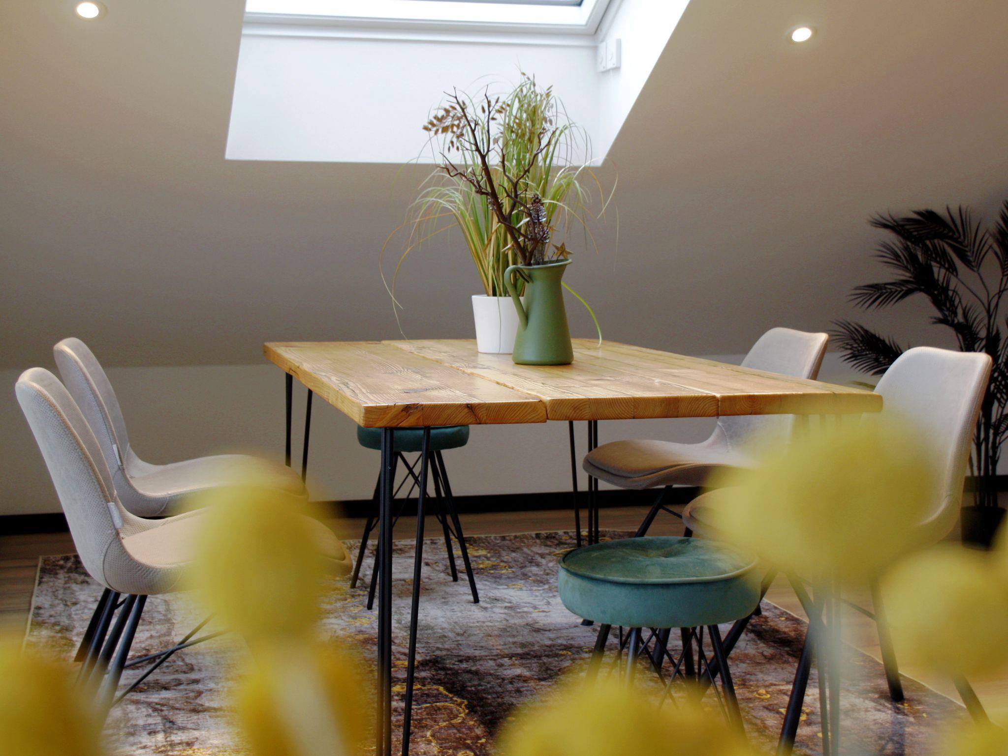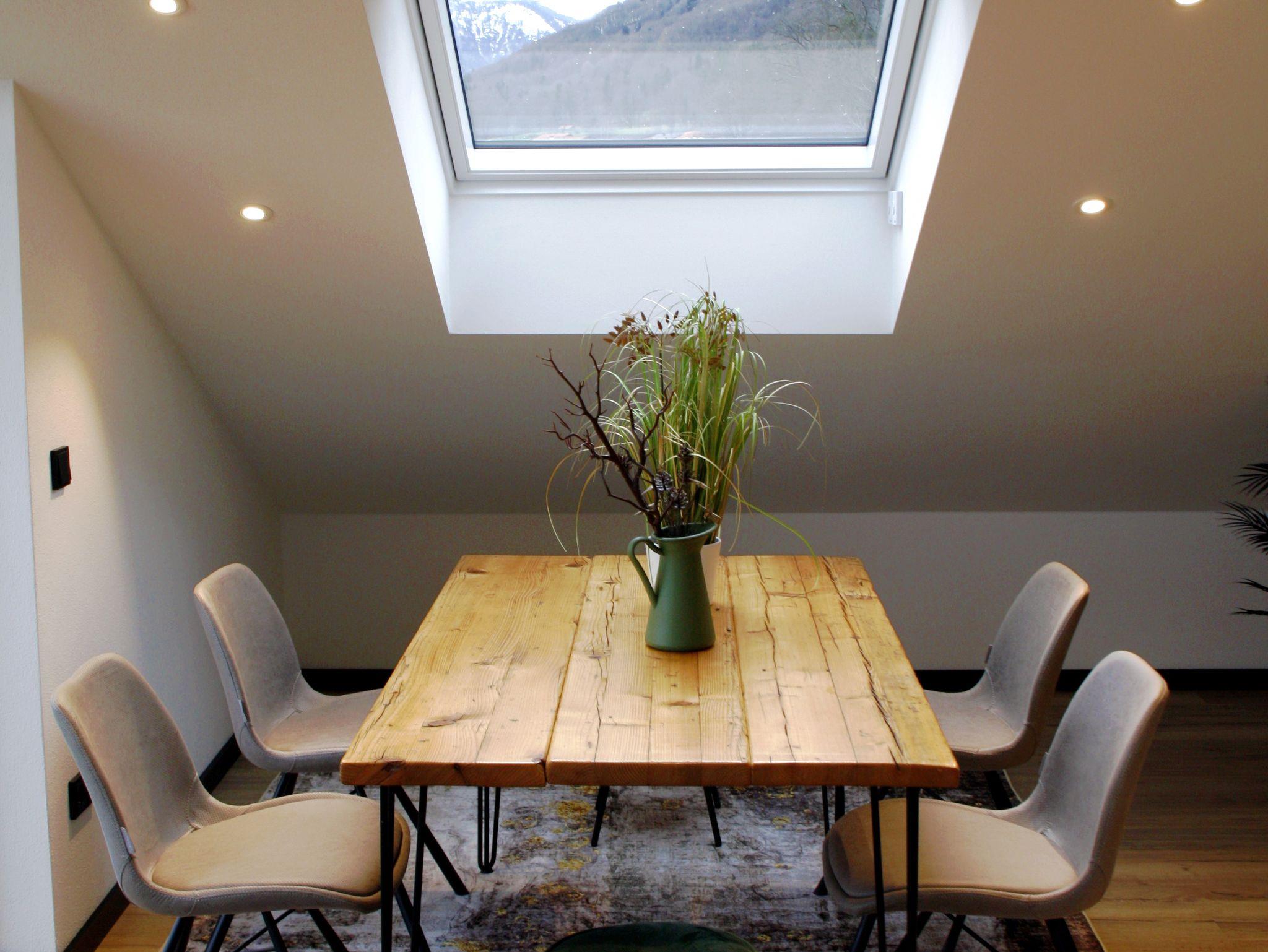 Unsere geräumige, moderne Nichtraucher-Mansarden-Ferienwohnung im 2. Obergeschoss mit 65 qm für 2 bis 6 Personen besticht mit einer atemberaubenden Aussicht vom Balkon auf Aschau im Chiemgau und einem Panoramablick auf die Kampenwand! Der offene, mit Parkettböden ausgestattete Wohnraum, lädt zum Entspannen ein und garantiert Ihnen eine behagliche Wohnatmosphäre.