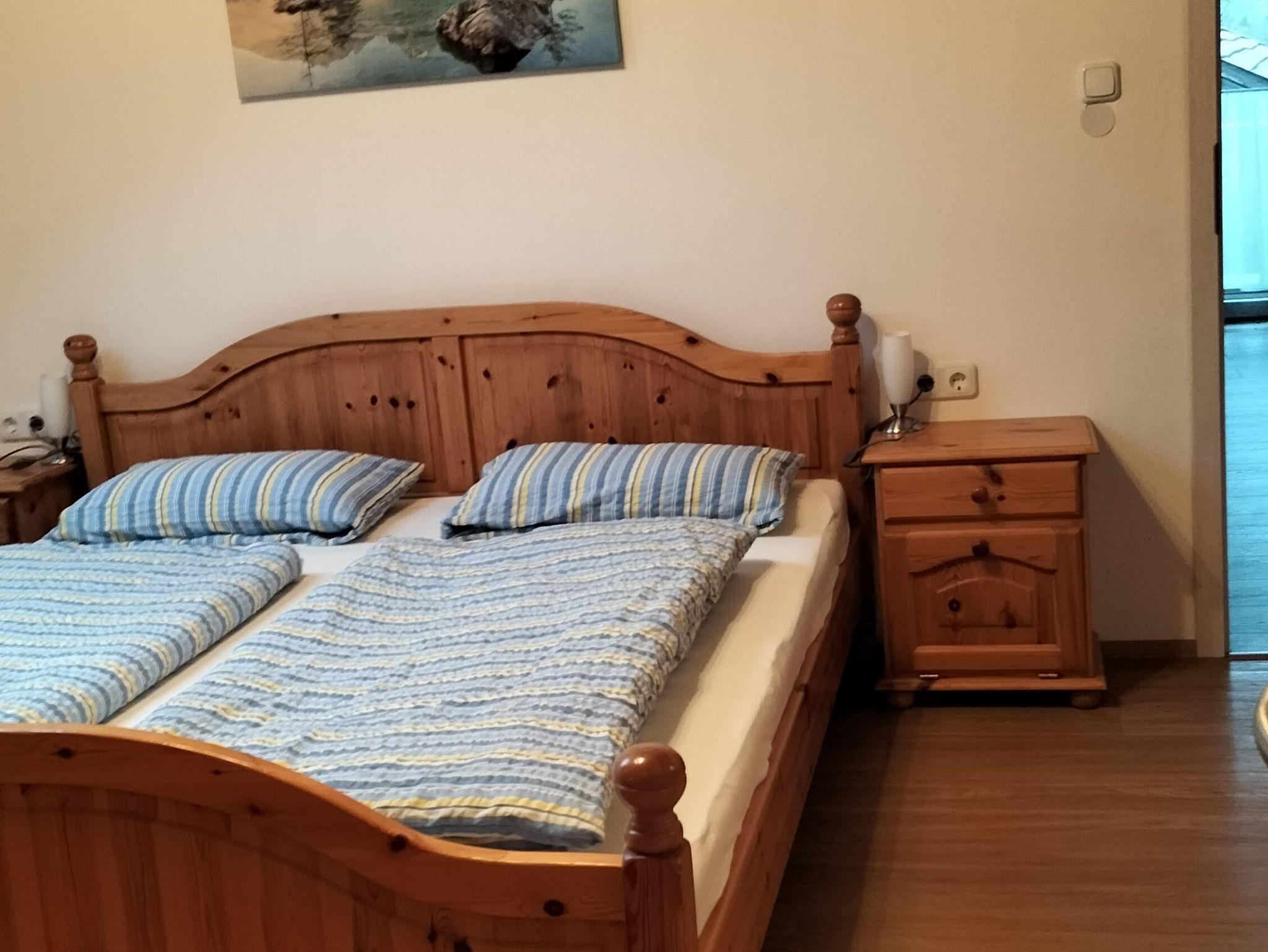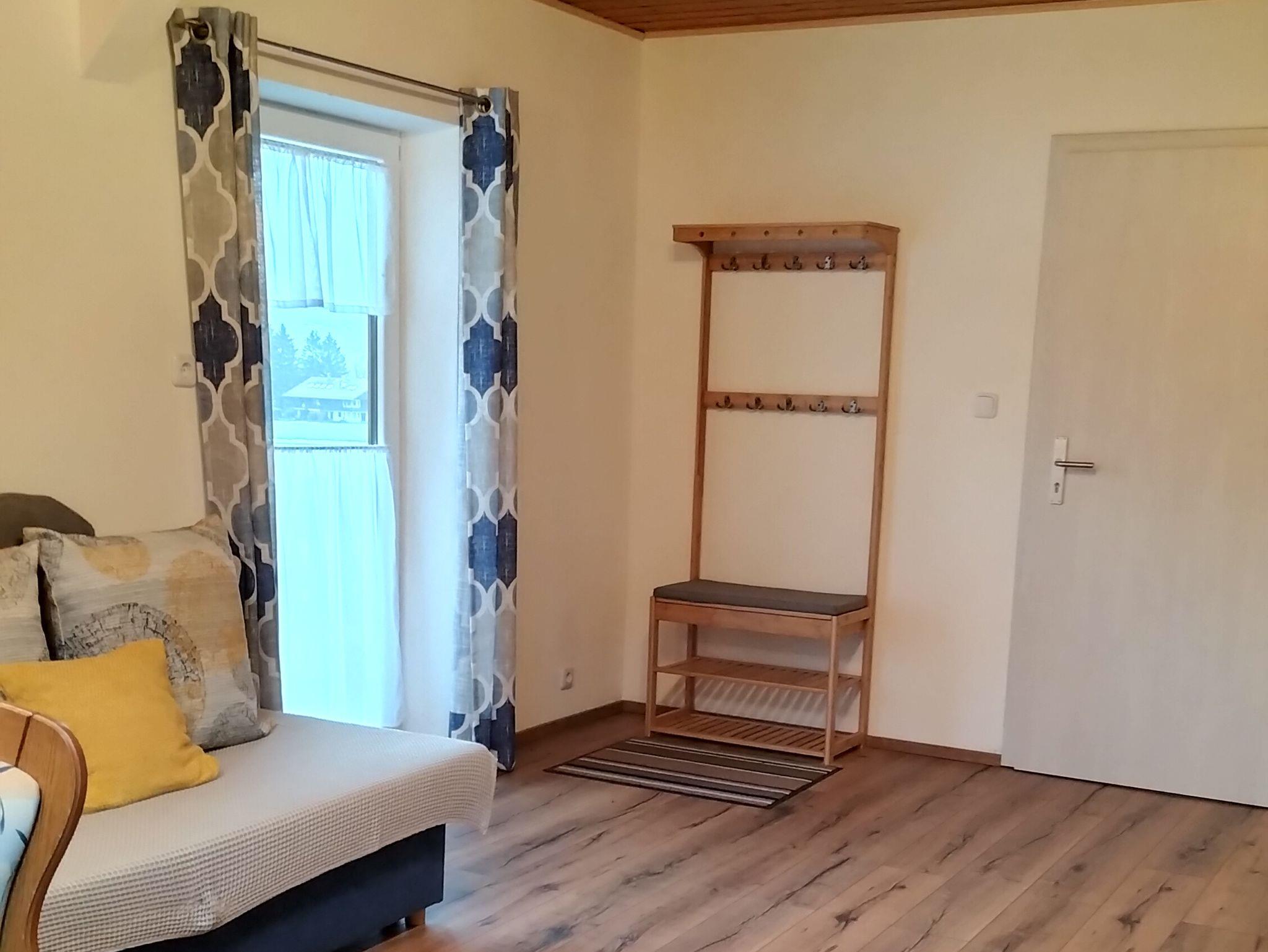 Ferienwohnung 50 qm im 2. Obergeschoss mit Ostbalkon und Blick auf Schloss Hohenaschau. Ein separates Schlafzimmer mit Doppelbett, Wohnküche mit Essecke, SAT-TV, Radio und W-LAN. Badezimmer mit Dusche/WC. Kinderbett auf Anfrage.