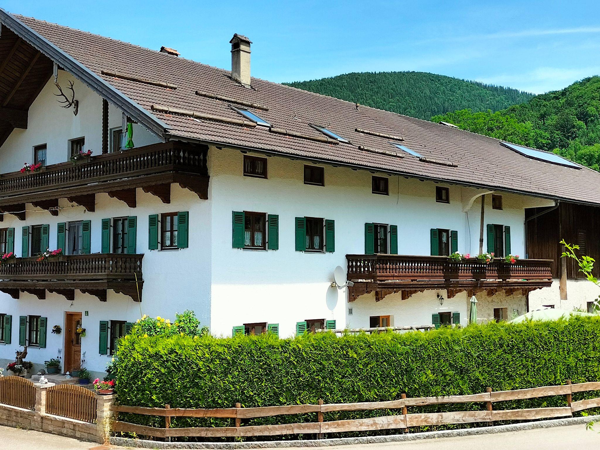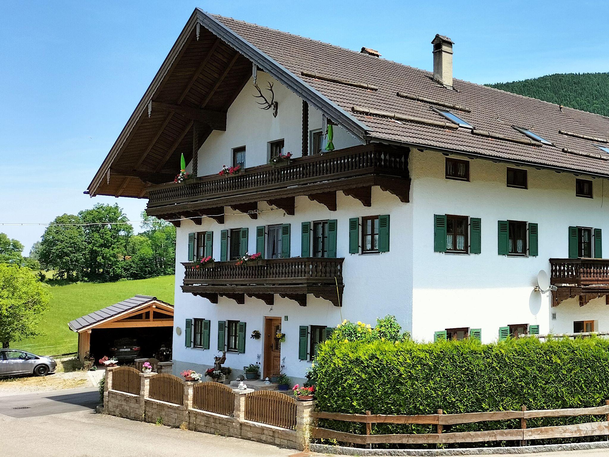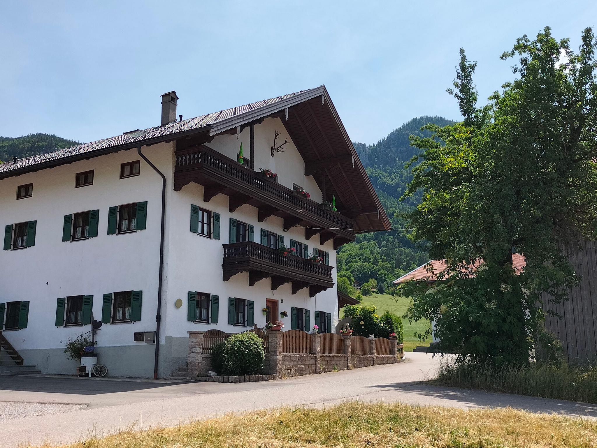 Bauernhof in ruhiger zentraler Lage im Ortsteil Hub am Fuße der Kampenwand. Unsere Kühe sind im Sommer auf unserer eigenen Alm, die Gorialm auf der Kampenwand. 10 Gehminuten in die Ortsmitte mit verschiedenen Gaststätten, Cafés, Bahnhof mit Bushaltestelle und zur Kampenwandseilbahn. Parkplatz vor dem Haus. Hunde und Haustiere dürfen nicht mitgebracht werden. Unsere Ferienwohnungen liegen im zweiten Obergeschoss und sind über eine Aussentreppe zu erreichen, auch zur Wohnung sind es einige Stufen.