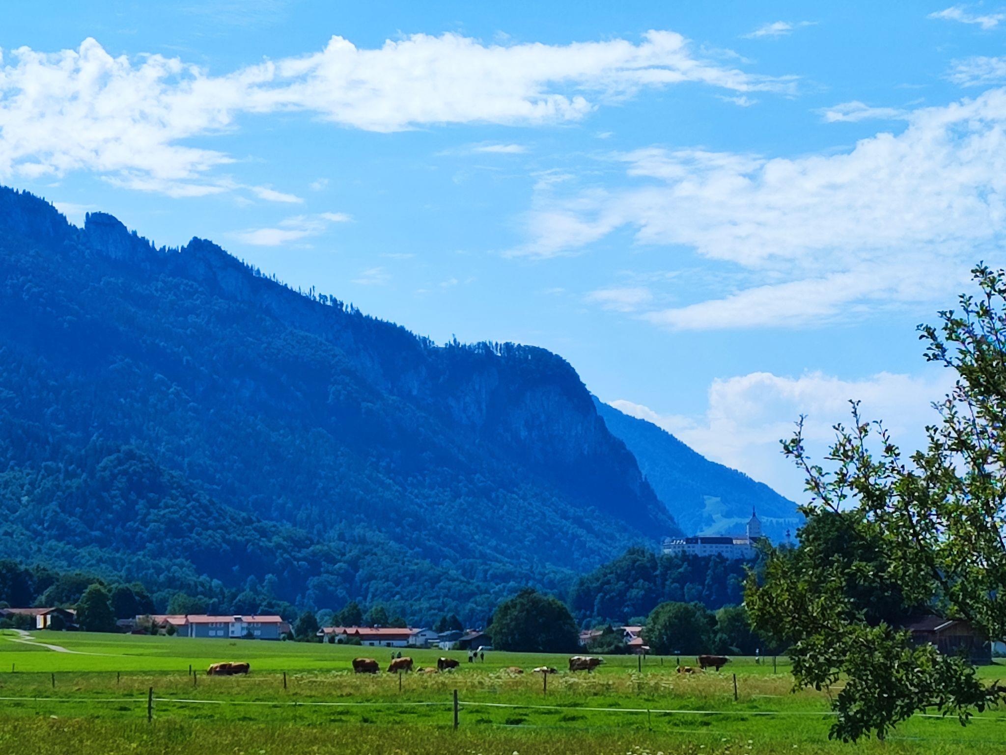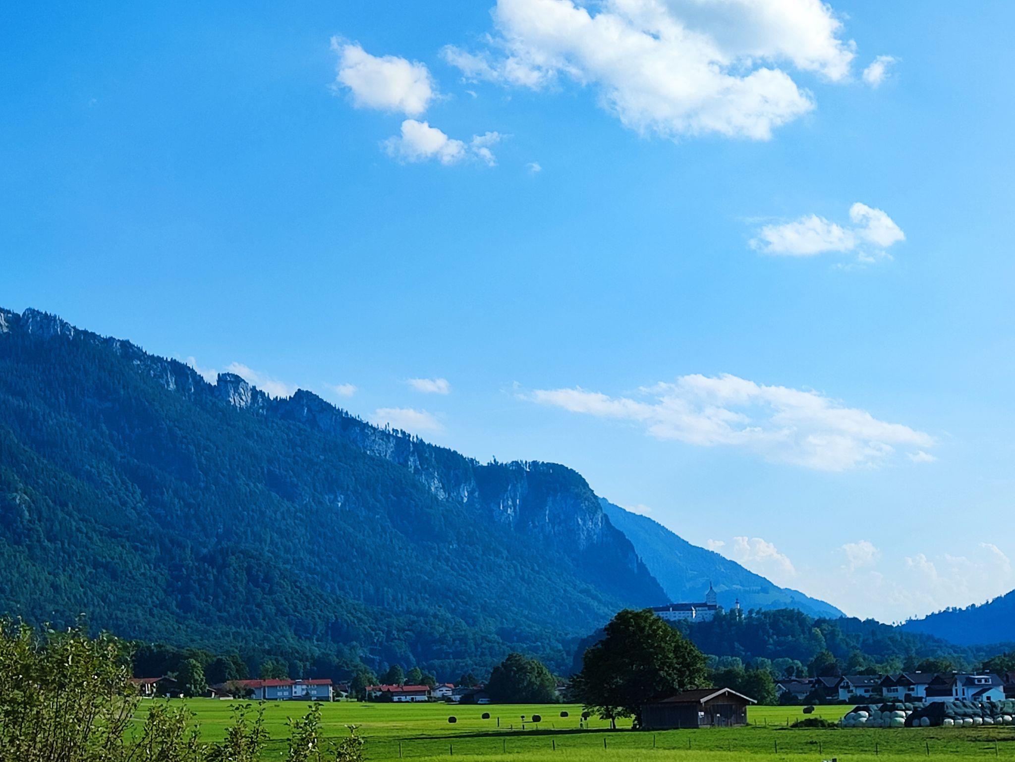 Wohnen Sie in einer großzügigen und hellen Ferienwohnung auf 102 qm/1. Stock im alpenländischen Stil mit zwei Schlafzimmern und Süd-Balkon mit Panoramablick auf die Berge. Die vollausgestattete Wohnung bietet Ihnen alle Vorzüge für einen angenehmen Aufenthalt. Der gemütliche Wohnraum ist mit viel Holz eingerichtet um eine Wohlfühl-Atmosphäre zu schaffen, mit einem schönen runden Sitz-Erker, ein streamingfähiger Flat-Kabel-TV und großem Sofa. Zwei separate Schlafzimmer, ein Schlafzimmer mit Doppelbett 2 x 2 m und ein Schlafzimmer mit Doppelbett 1,60 x 2 m. Voll ausgestattete Küche mit Ceranfeld-Herd/Backofen, Spülmaschine, Kaffee-Vollautomat, Mikrowelle, Kühlschrank/Tiefkühlfach, Toaster und Wasserkocher. Großes helles Badezimmer mit Dusche, Badewanne, WC, Urinal, Fön und Fenster zum Lüften. Waschmaschine, Wäschetrockner, Bügeleisen, Wäscheständer und Recycling Station im kleinen Hauswirtschaftsraum.