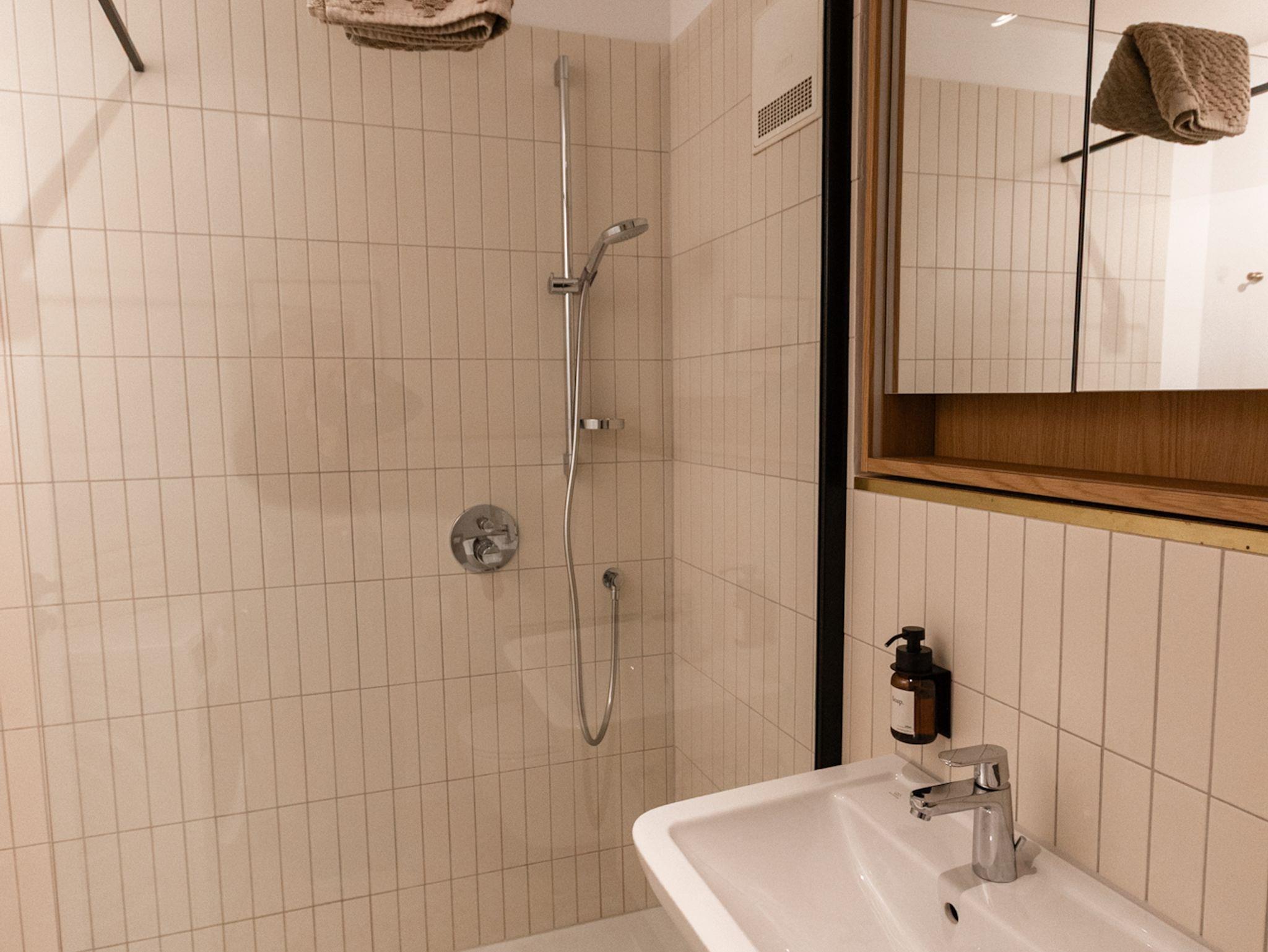 Das stilvolle Badezimmer überzeugt mit einer ebenerdigen Dusche, WC und Föhn. Eine kostenfreie Waschmaschine in der Wohnung sorgt für zusätzlichen Komfort – ideal auch für längere Aufenthalte. Der Balkon lädt mit seinem freien Blick auf die Berge zum Verweilen ein, während die ruhige Lage ohne Durchgangsverkehr für ungestörte Erholung sorgt. Eigene Parkplätze direkt am Haus stehen Ihnen selbstverständlich zur Verfügung. Bettwäsche und Handtücher sind inklusive – Sie müssen sich um nichts kümmern außer um Ihre Erholung. Bitte beachten Sie, dass Hunde und Haustiere in unseren Ferienwohnungen nicht erlaubt sind.