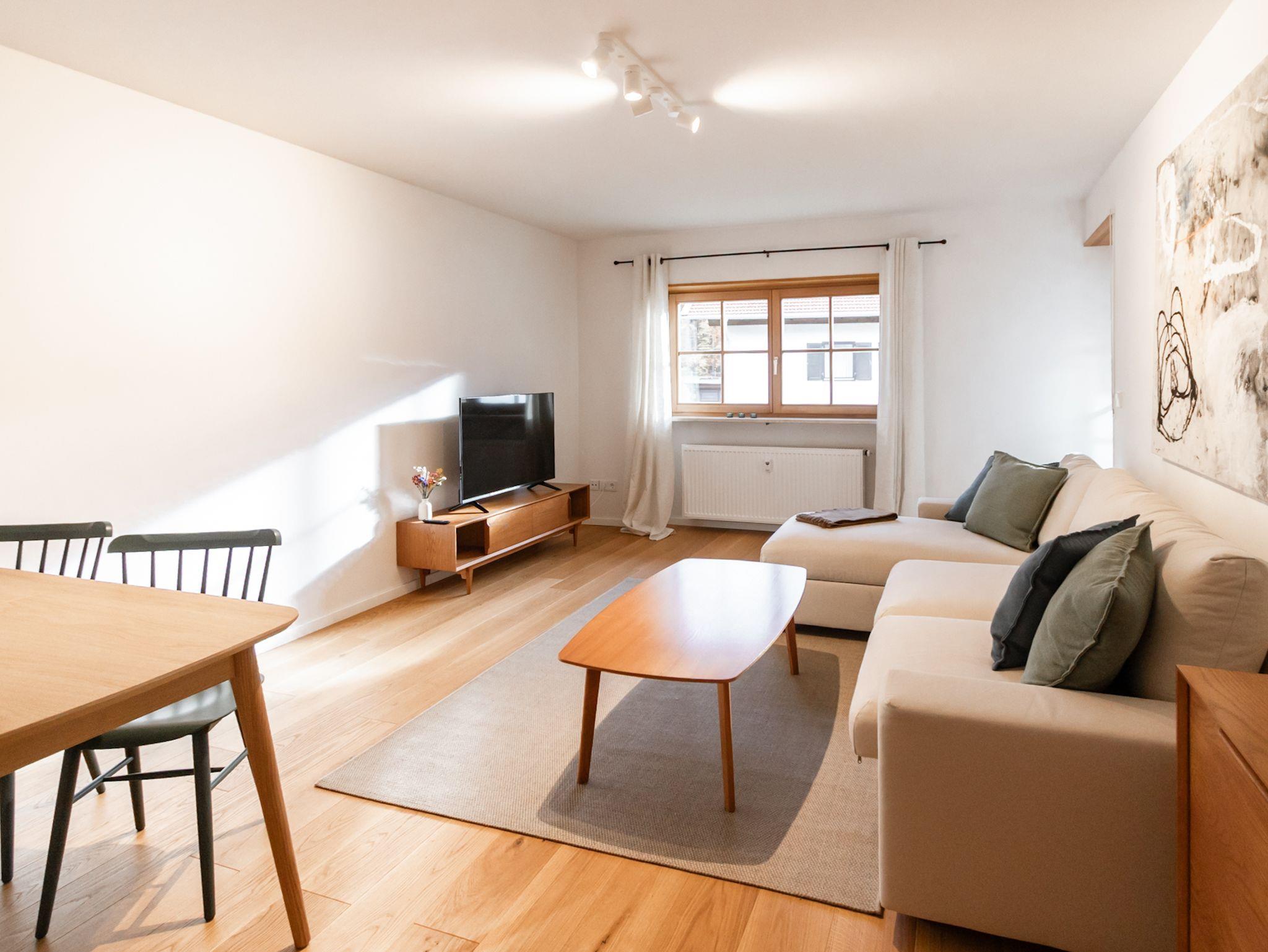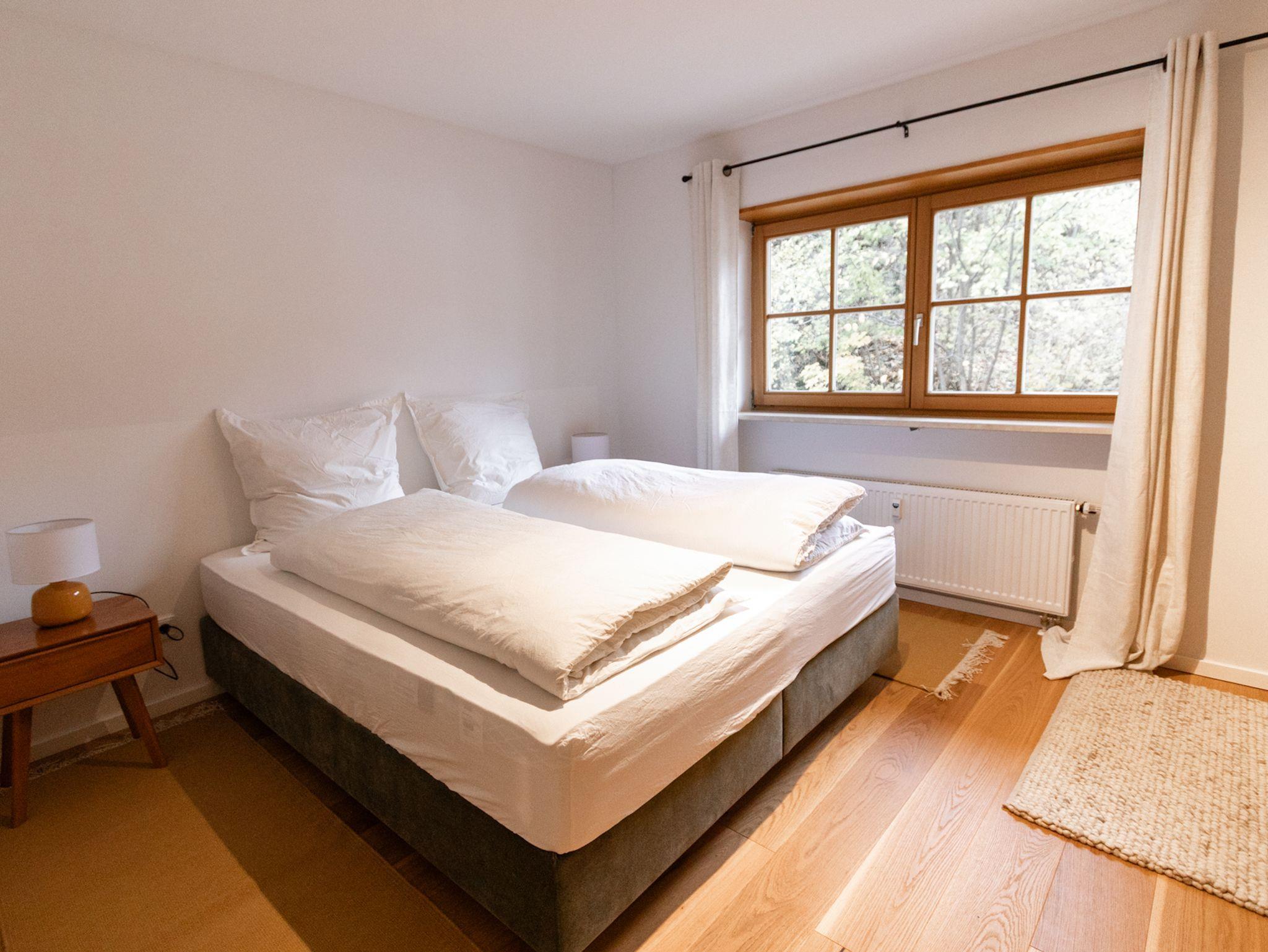 Die Wohnungen sind hochwertig ausgestattet und bieten alles, was das Herz begehrt: edle Parkettböden, eine moderne Küche, eine eigene Waschmaschine sowie einen Balkon mit unverstelltem Blick auf die Berge. Die ruhige Lage am Waldrand macht das Haus zum idealen Rückzugsort für Naturliebhaber, Ruhesuchende und Bergfreunde.