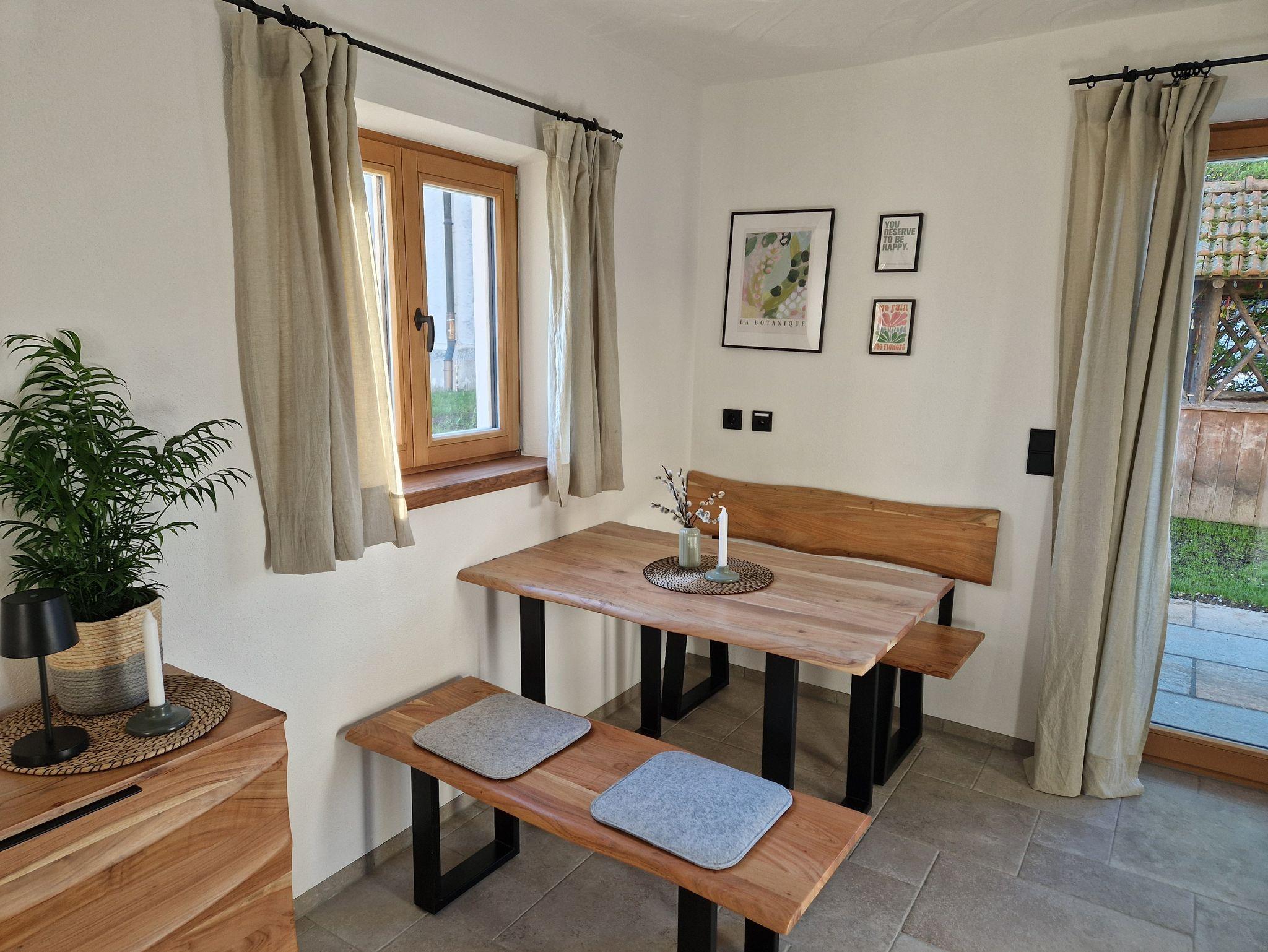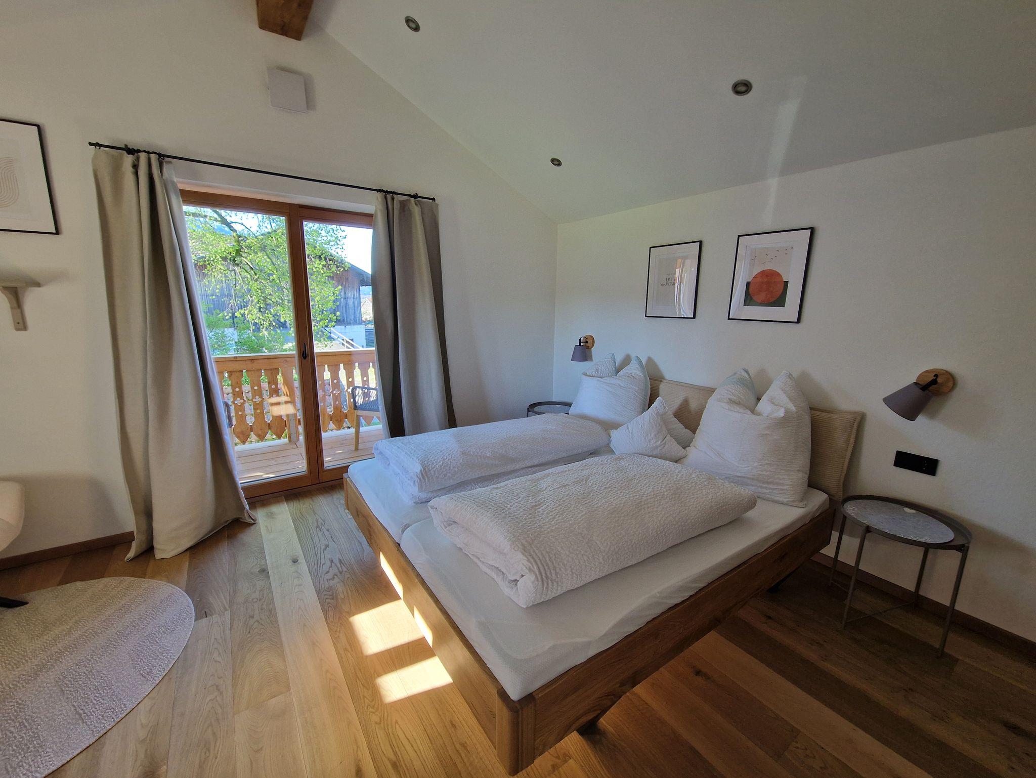 Herzlich willkommen auf dem idyllischen Geigerhof in Höhenberg, einem malerischen Ortsteil oberhalb von Aschau im Chiemgau! Lassen Sie sich von der Ruhe und Schönheit dieses kleinen Weilers verzaubern – hier gibt es keinen Durchgangsverkehr, sondern nur einen atemberaubenden Ausblick auf die umliegenden Berge, Wiesen und Bauernhöfe. Unser charmantes Bauernhofchalet, neben dem Bauernhof Geigerhof, bietet Ihnen alles für einen unvergesslichen Urlaub – ein Wohlfühlort für die gesamte Familie. Genießen Sie die besondere Atmosphäre des Chalets, das direkt an die kleine Filialkirche Hl. Kreuz grenzt – ein echtes Schmuckstück, das nur gelegentlich für Andachten genutzt wird und daher kein regelmäßiges Glockengeläut stört. Das Chalet erstreckt sich über zwei Etagen und ist perfekt für Familien oder Paare. Im Erdgeschoss erwartet Sie eine offene Küche mit gemütlicher Essecke, ein einladender Wohnbereich sowie eine Terrasse mit einem kleinen Garten – ideal für laue Sommerabende. Im Obergeschoss finden Sie ein großzügiges Schlafzimmer mit Doppelbett, eine einladende Schlafempore in der Dachschräge und ein modernes Badezimmer. Zu den weiteren Annehmlichkeiten gehören ein kostenloser Parkplatz direkt am Chalet sowie kostenloses WLAN. Bitte beachten Sie, dass Hunde und andere Haustiere leider nicht gestattet sind.
