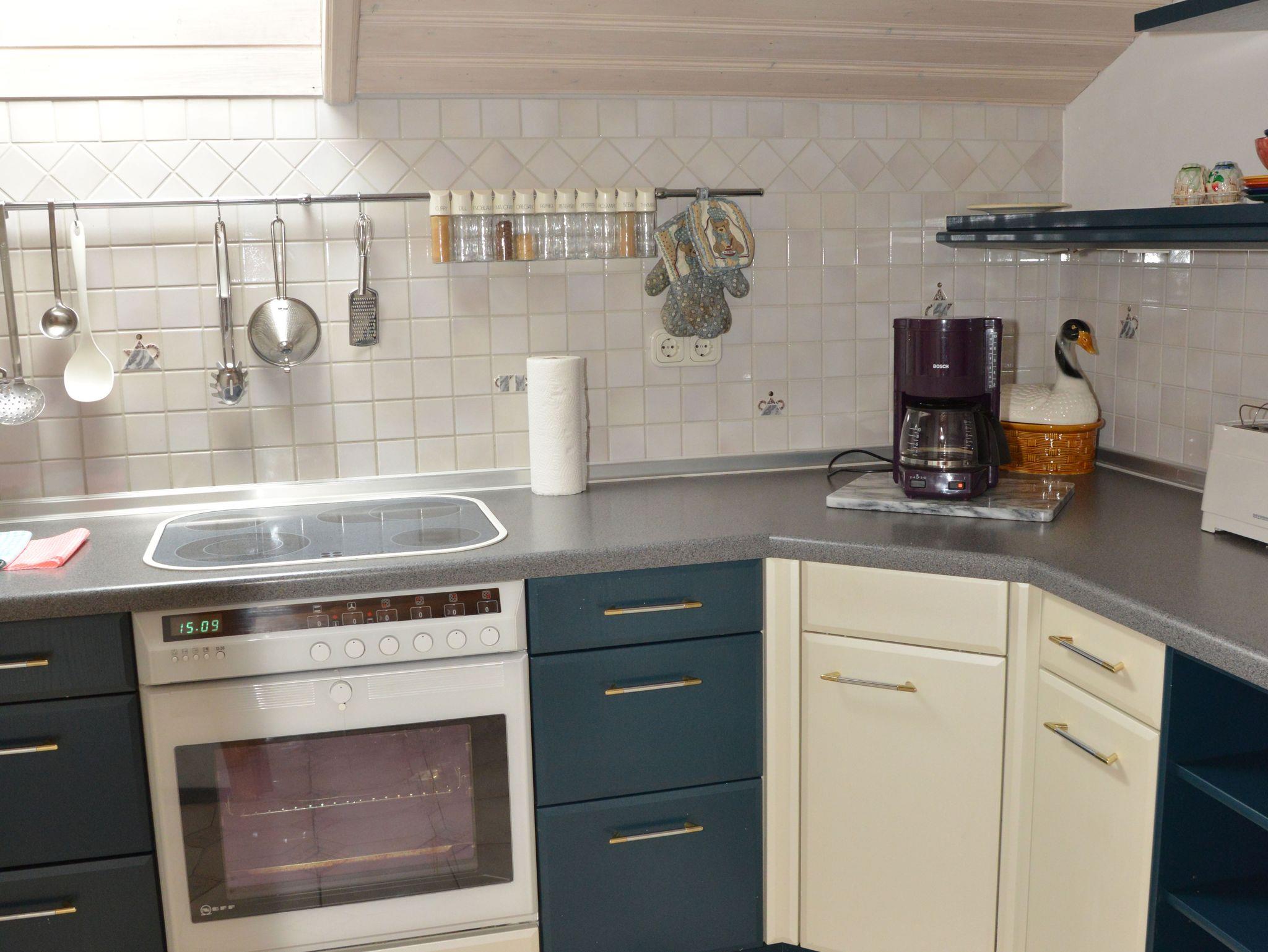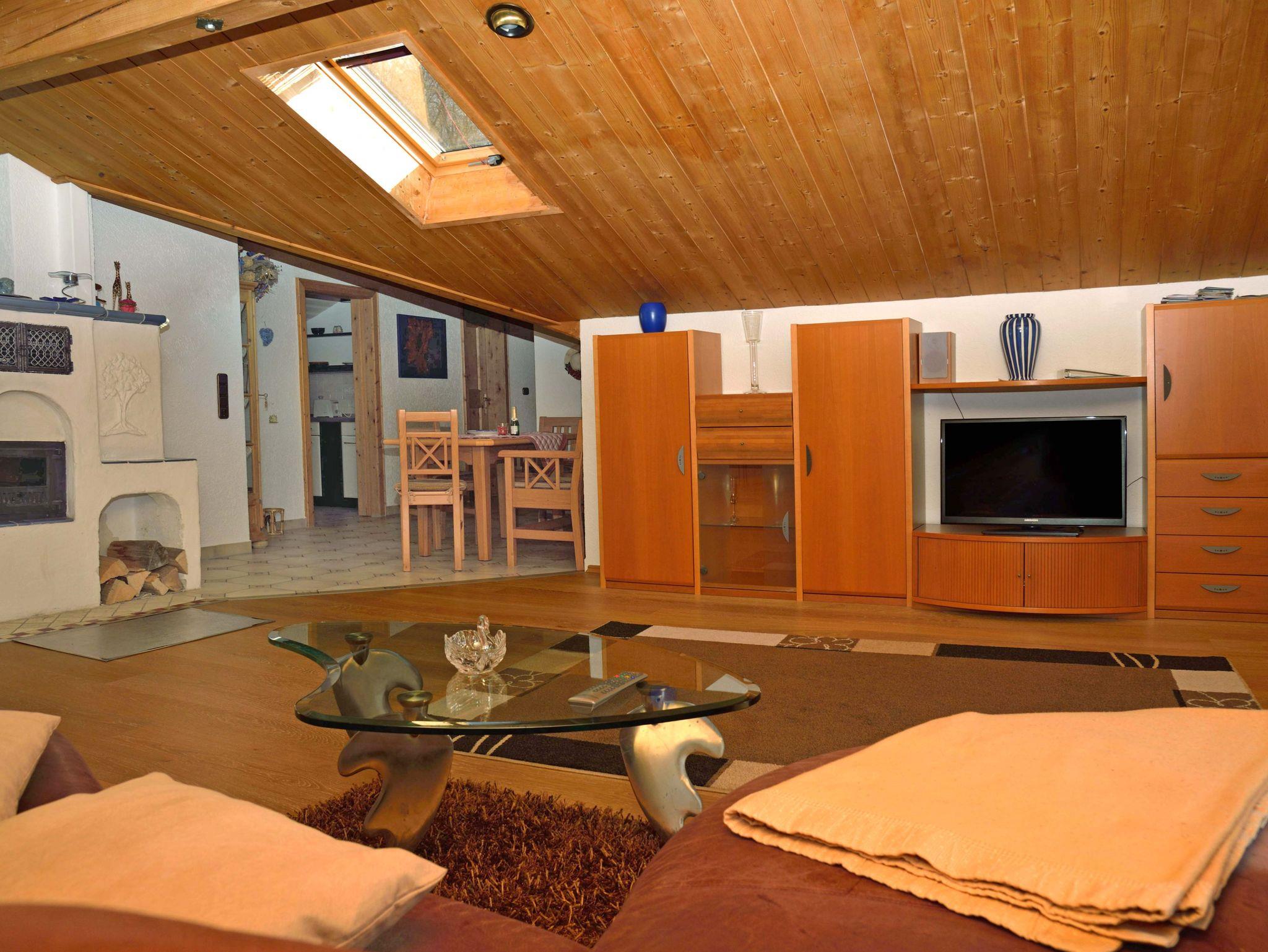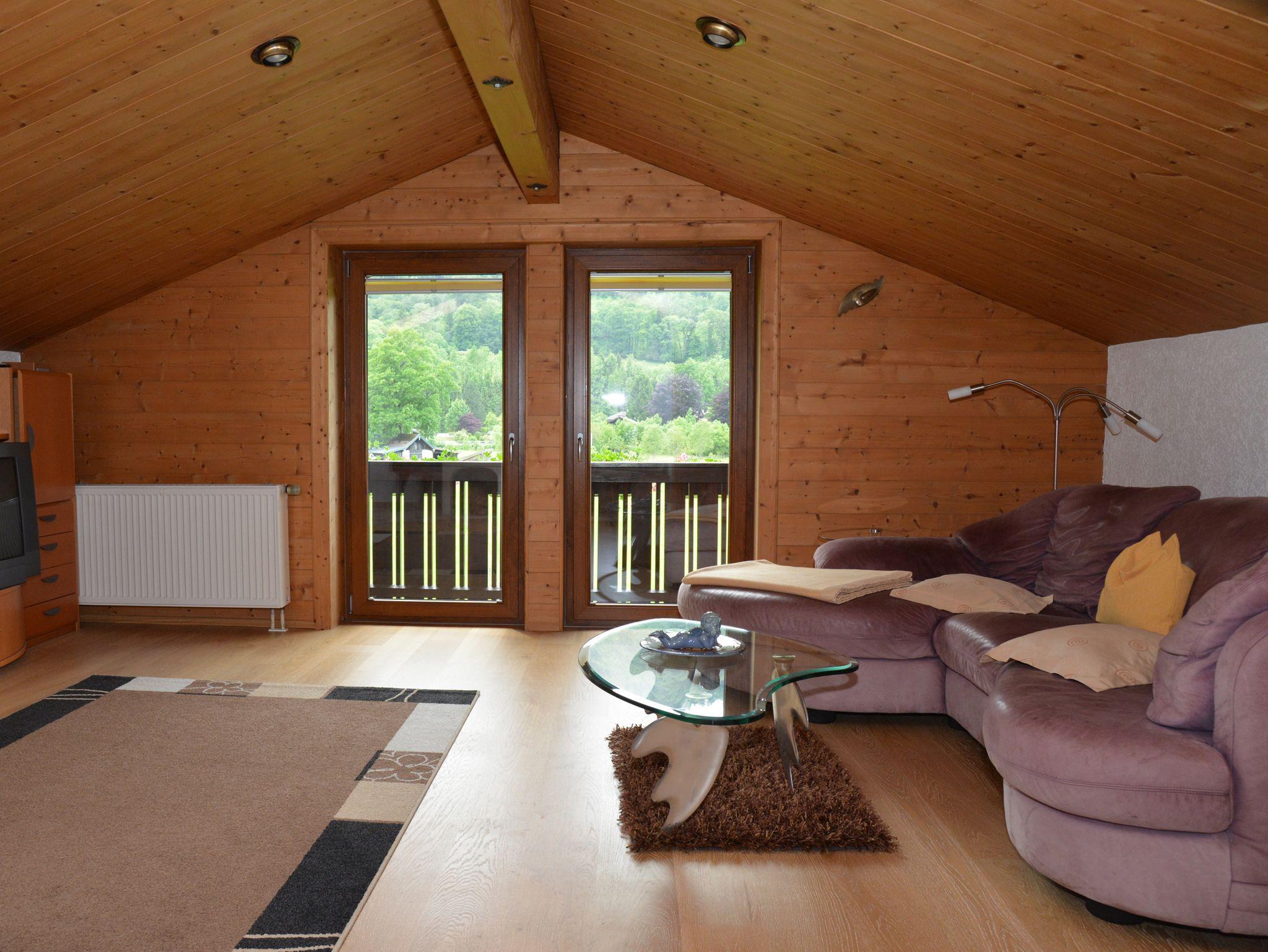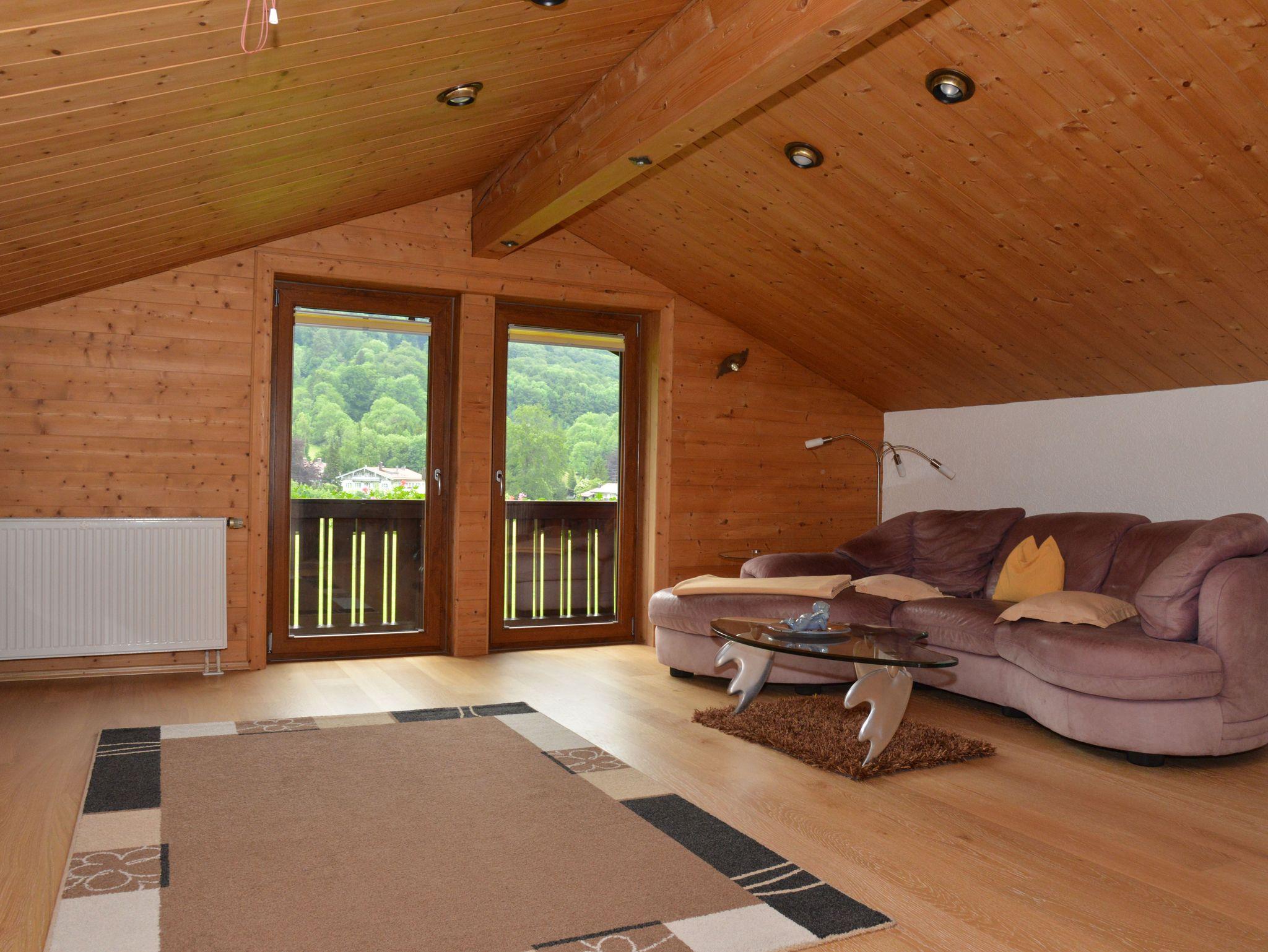 Gemütlich komfortabel eingerichtete Dachgeschoss-Ferienwohnung (90 qm), liebevoll im bodenständigen Stil, mit großzügigem West-Balkon und herrlichem Gebirgsblick um die Abendsonne genießen zu können. Großes Wohnzimmer mit Kabel-HD-TV, kostenloses WLAN, Kachelofen (fallen extra Kosten für Holz an). Separate, vollausgestatte Küche mit Spülmaschine, Kaffeemaschine, Toaster und Essecke. Separates Schlafzimmer mit großem Doppelbett 2 m x 2 m. Großes Badezimmer mit Badewanne, Dusche, Bidet und WC. Separates Gäste-WC. Zwei Abstellräume, Zentralheizung. Handtücher und Bettwäsche stehen zur Verfügung. Gerne dürfen Sie gegen Aufpreis einen Hund mitnehmen.