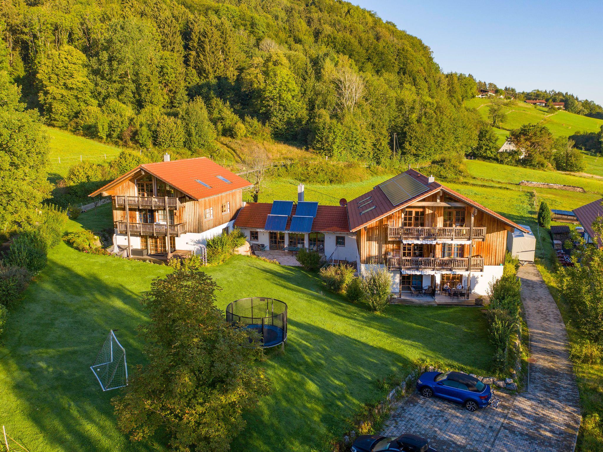 In Idyllischer, ruhiger Lage oberhalb von Aschau am Waldrand mit herrlichem Panoramablick auf die Kampenwand, liegen unsere Ferienwohnungen. Schöne Rad- und Wanderwege, sowie Langlaufloipen direkt am Haus aus. Ca. 10 Minuten Fußweg ins Zentrum und zur orthopädischen Kinderklinik. Unser ökologisches Massivholzhaus mit 6 großen (64 qm) Ferienwohnungen, qualitativ hochwertigen Naturholzmöbeln und Fußbodenheizung in der Natursteindusche. Die Ferienwohnungen verfügen über großzügige Terrassen bzw. Balkone in Südlage.