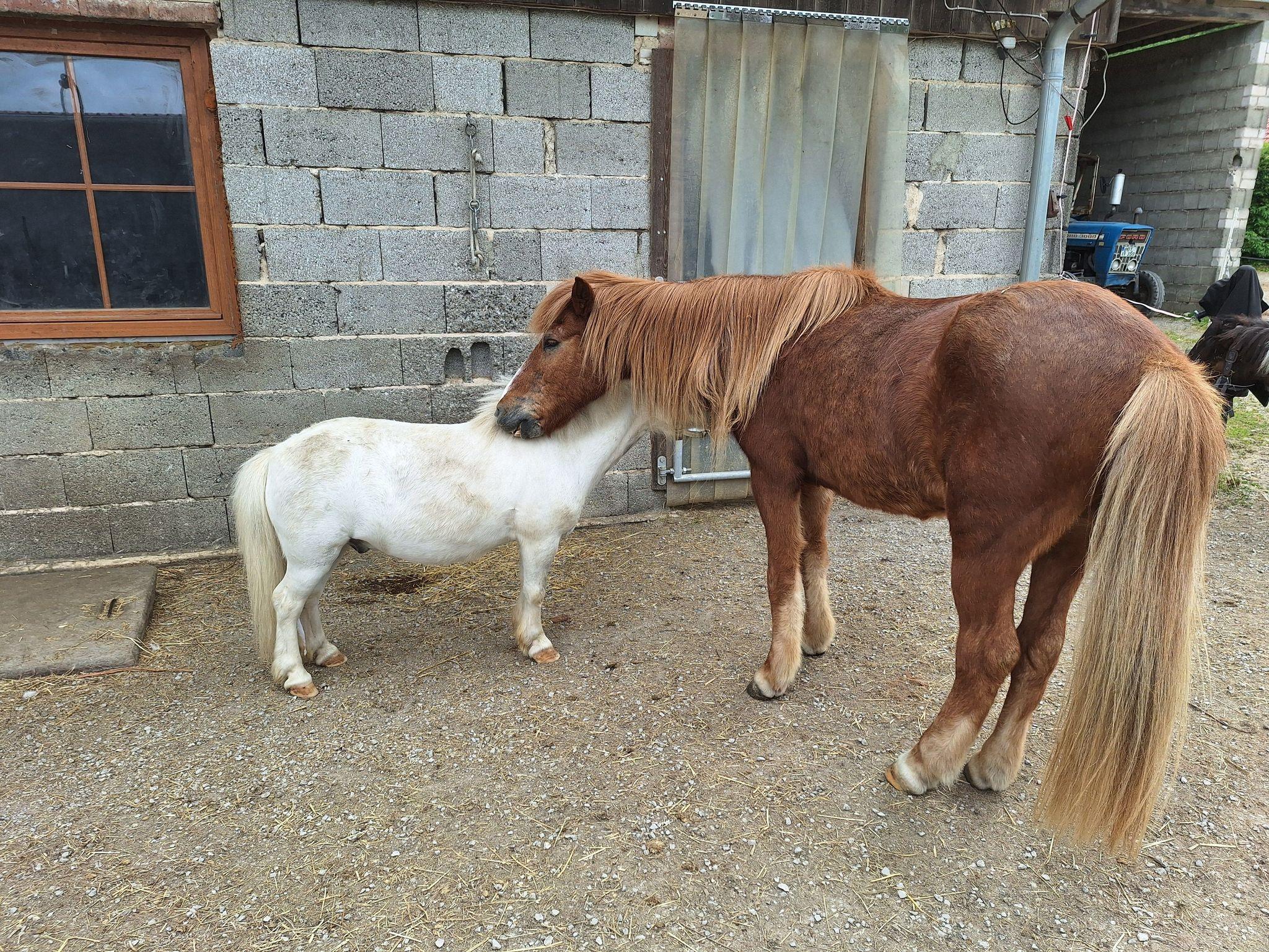 Die Wohnung grenzt an einem kleinen Bauernhof. Hier leben unsere Hühner, 6 Ponys Tom, August, Viggur, Soli, Sünna und Busla, unsere Hasen und unser Hund Lu.