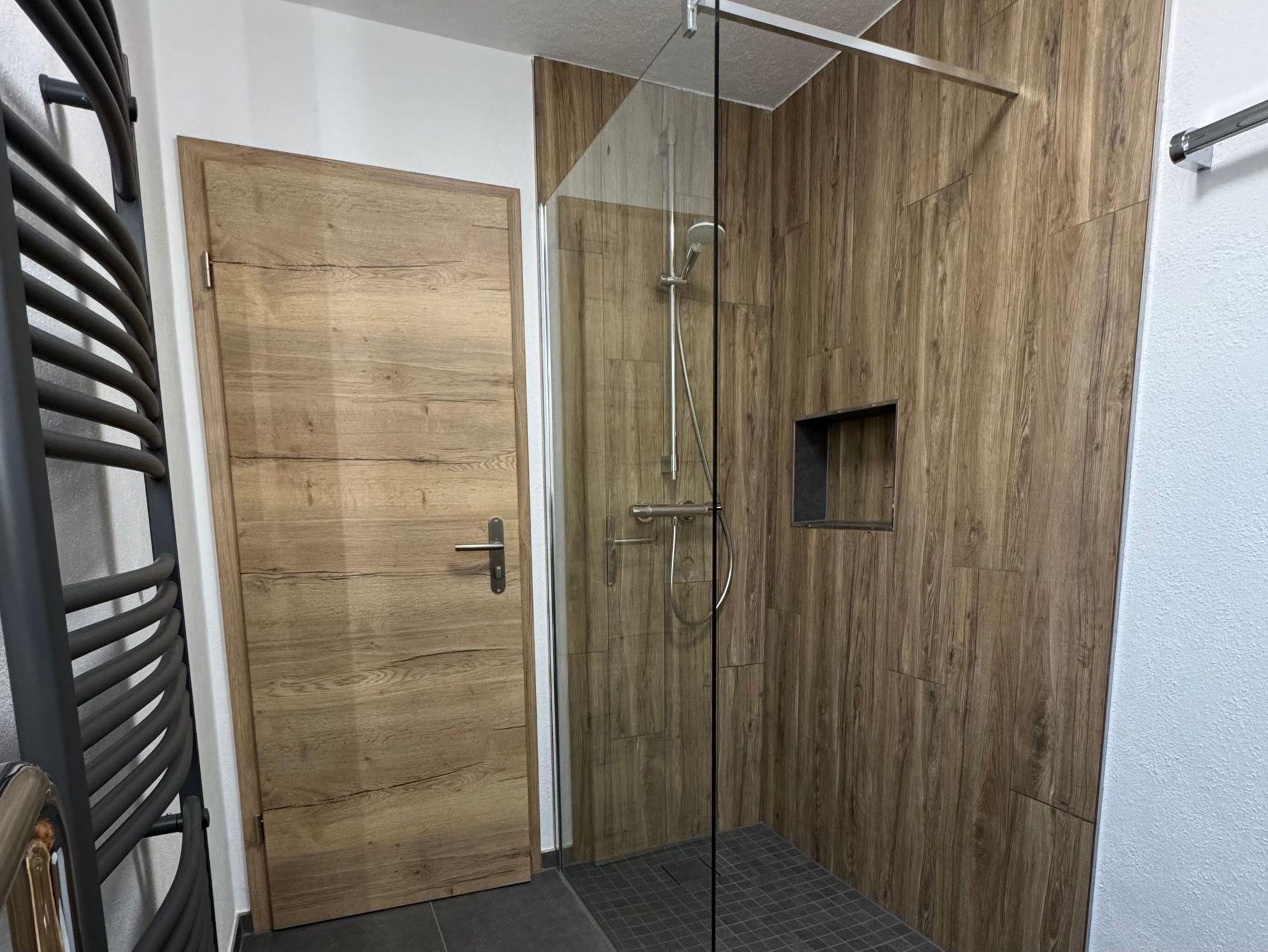 Genießen Sie die modernen Sitzgelegenheiten, die Garderobe und das Badezimmer mit begehbarer Dusche, Fön und frischen Handtüchern. Mit einem separaten Eingang erleben Sie maximale Privatsphäre.