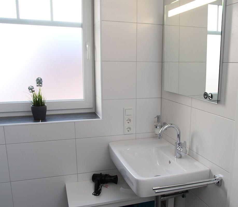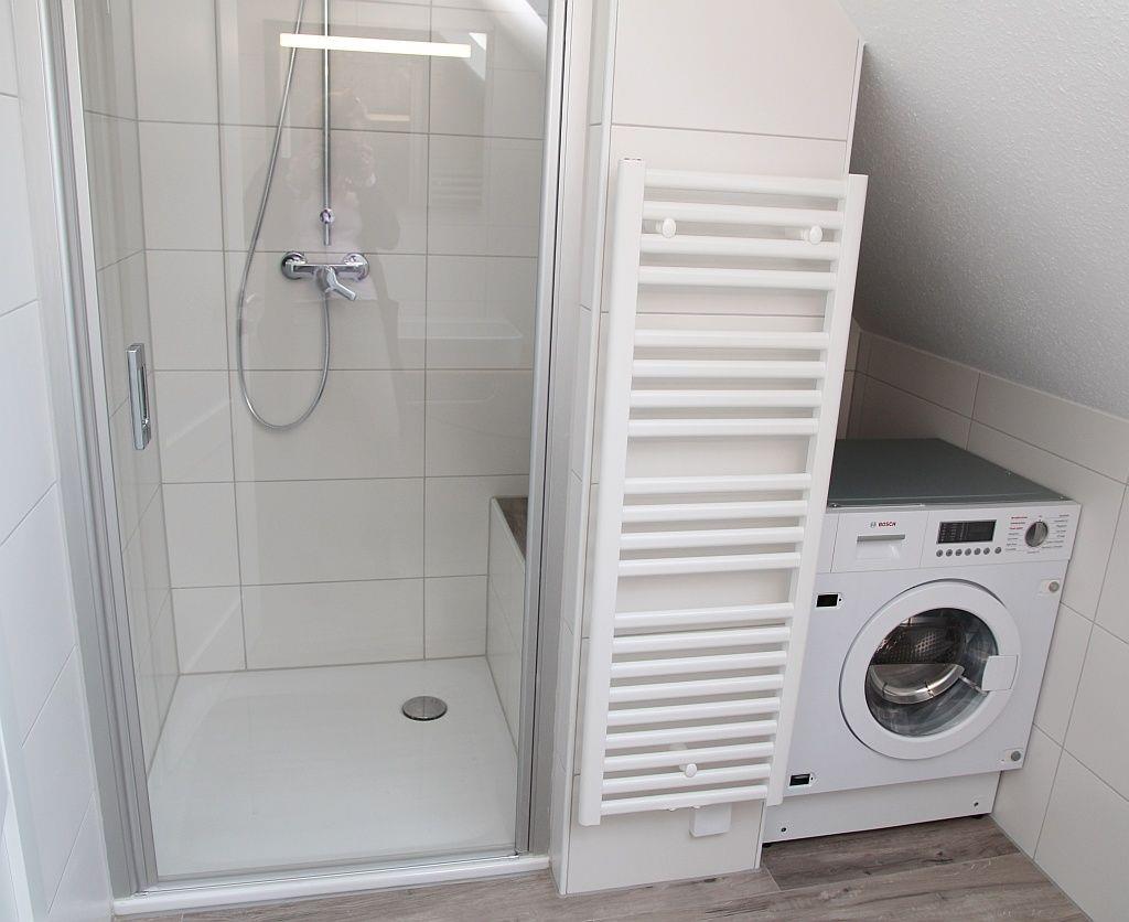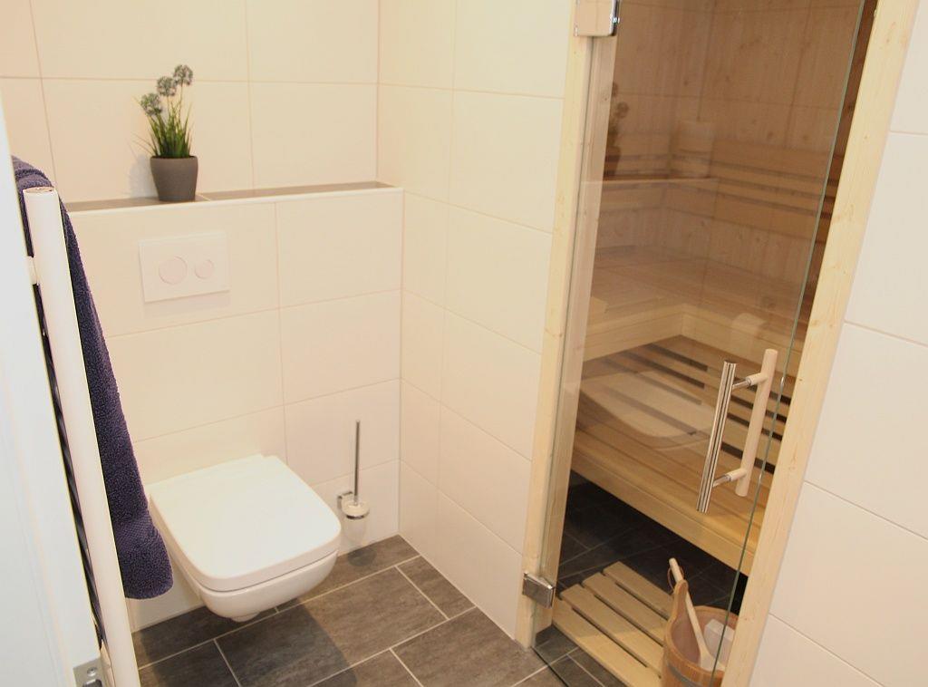 Das Bad im EG verfügt über eine ebenerdige Dusche, Sauna, Handtuchtrockner und Föhn. Auch im oberen Bad finden Sie eine Dusche, einen Handtuchtrockner und einen Föhn.