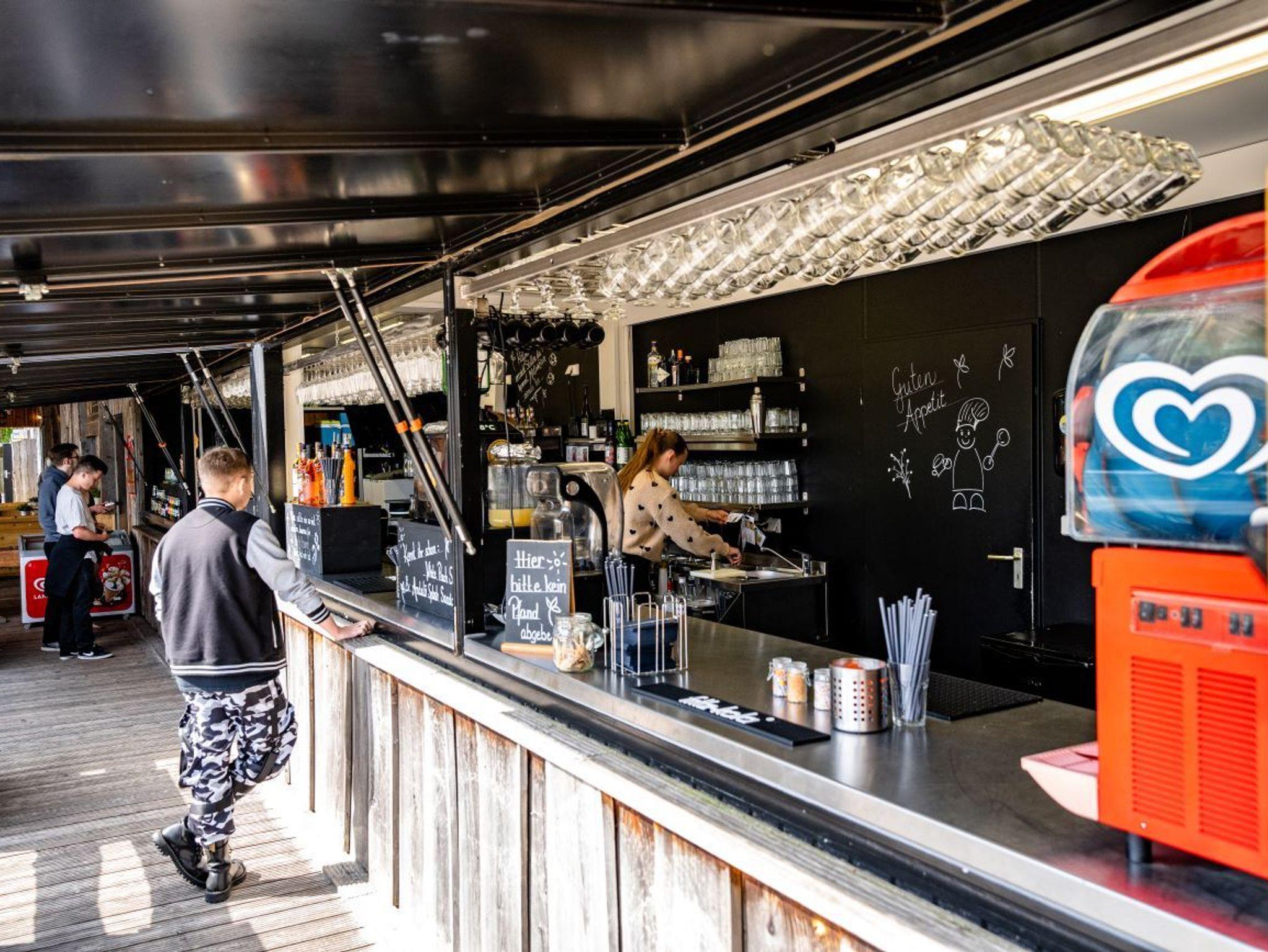 • sep. gut ausgestattete Einbauküche mit Essplatz: Ceranfeldherd, Geschirrspüler, großer Kühlschrank mit TK-Fach, Backofen, Mikrowelle, Toaster, Wasserkocher, Kaffeemaschine, ausreichend Geschirr, Besteck, Töpfe etc.