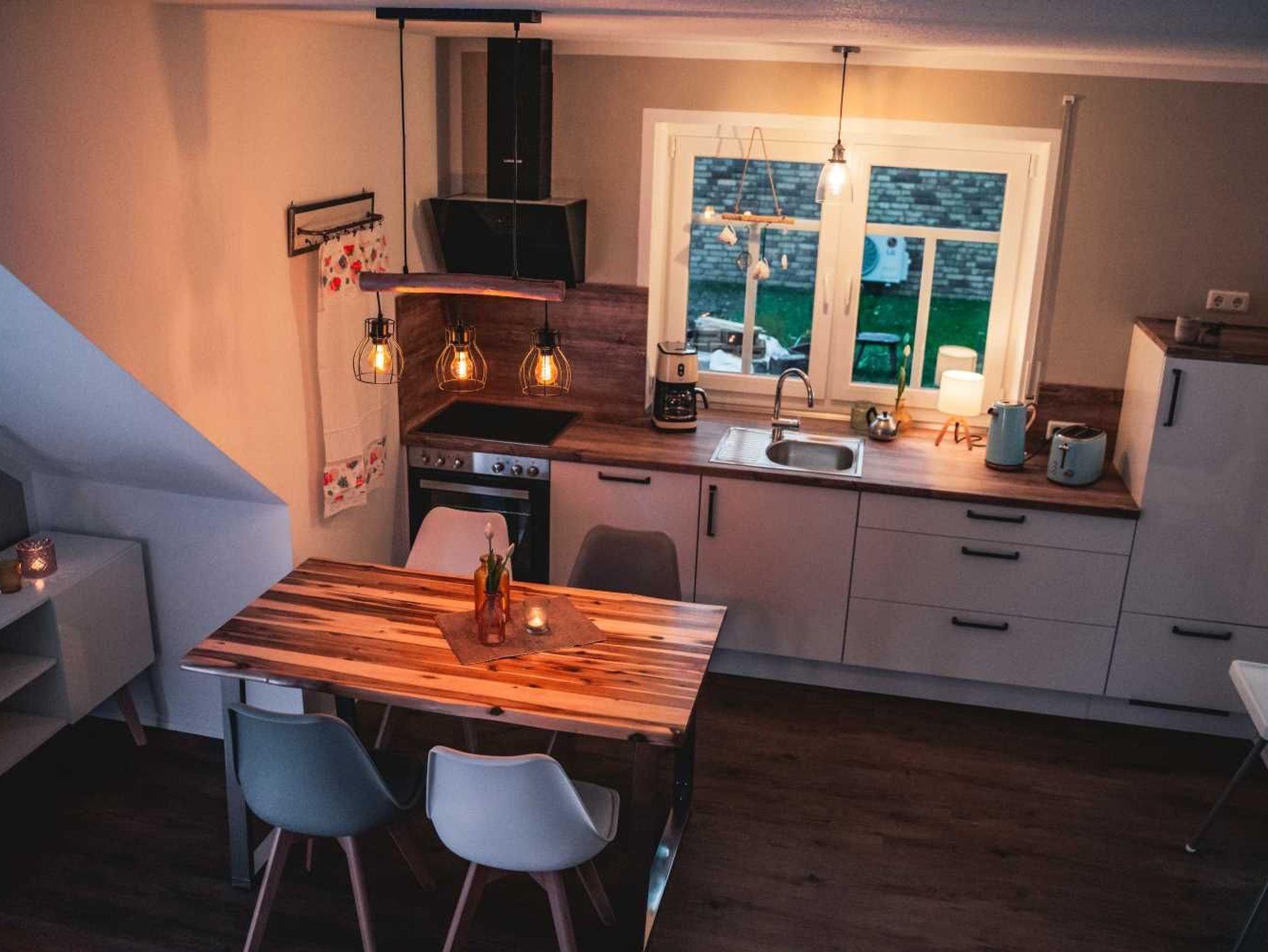 Inklusive Fernseher, Waschmaschine, Fön, W-Lan, Geschirrtücher, komplette Küchenausstattung wie Gewürze, Reinigung